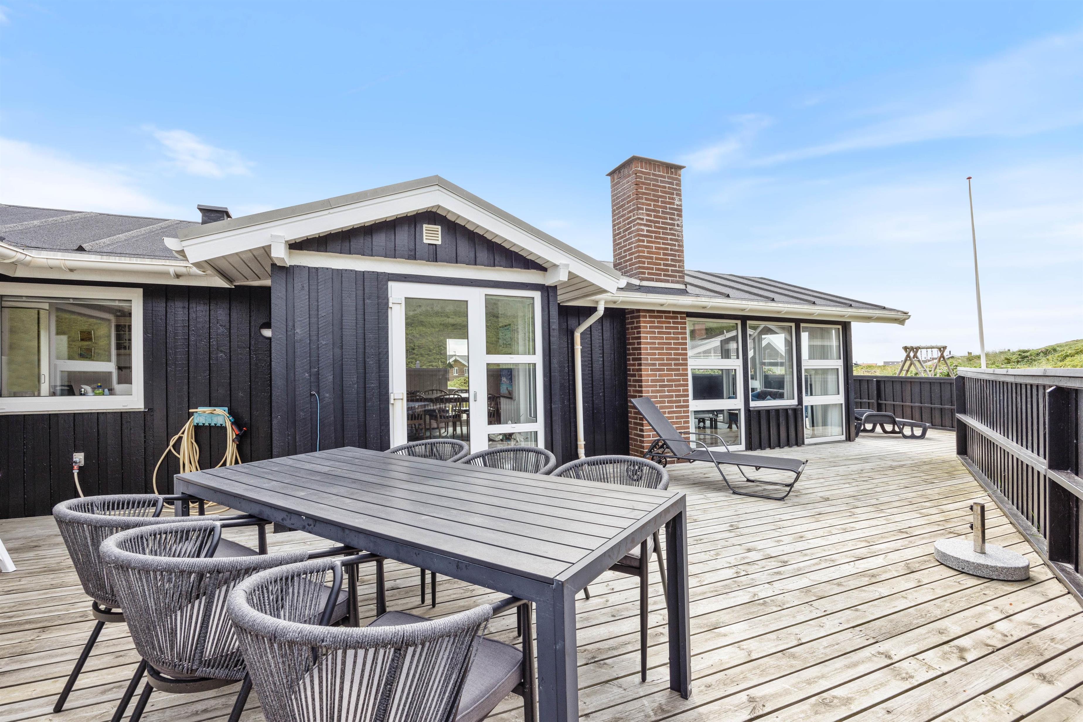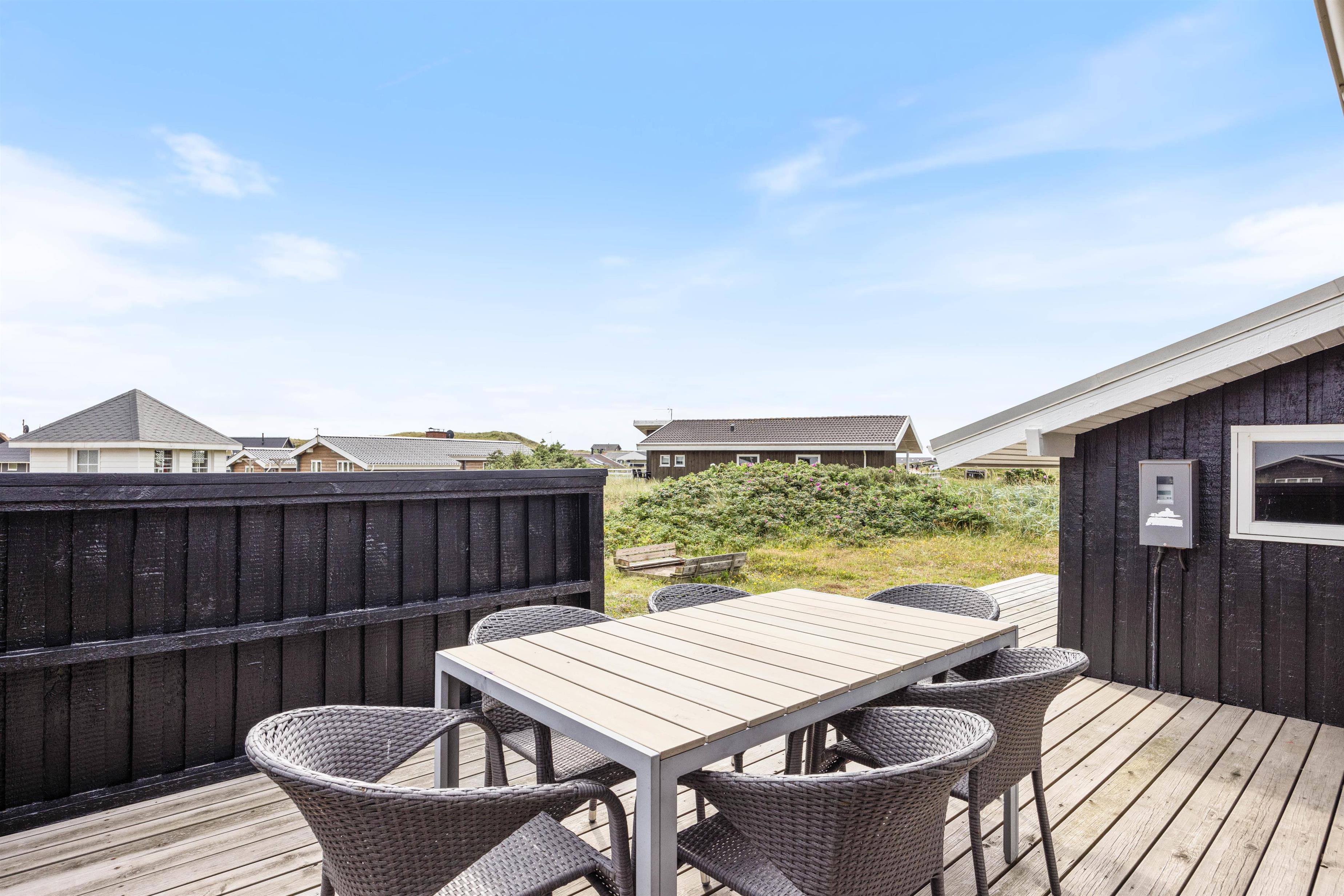 Den enestående beliggenhed meget tæt på klitterne i den storslåede vestjyske natur på Holmsland Klit, nær fiskerbyen Hvide Sande og Nymindegab, gør dette sommerhus til noget helt særligt. På den store velmøblerede og afskærmede terrasse kan man hele tiden høre bølgerne og mærke den salte luft fra det imponerende Vesterhav. Samtidig finder man her på terrassen altid en lækrog, hvor man kan nyde solen og naturen.