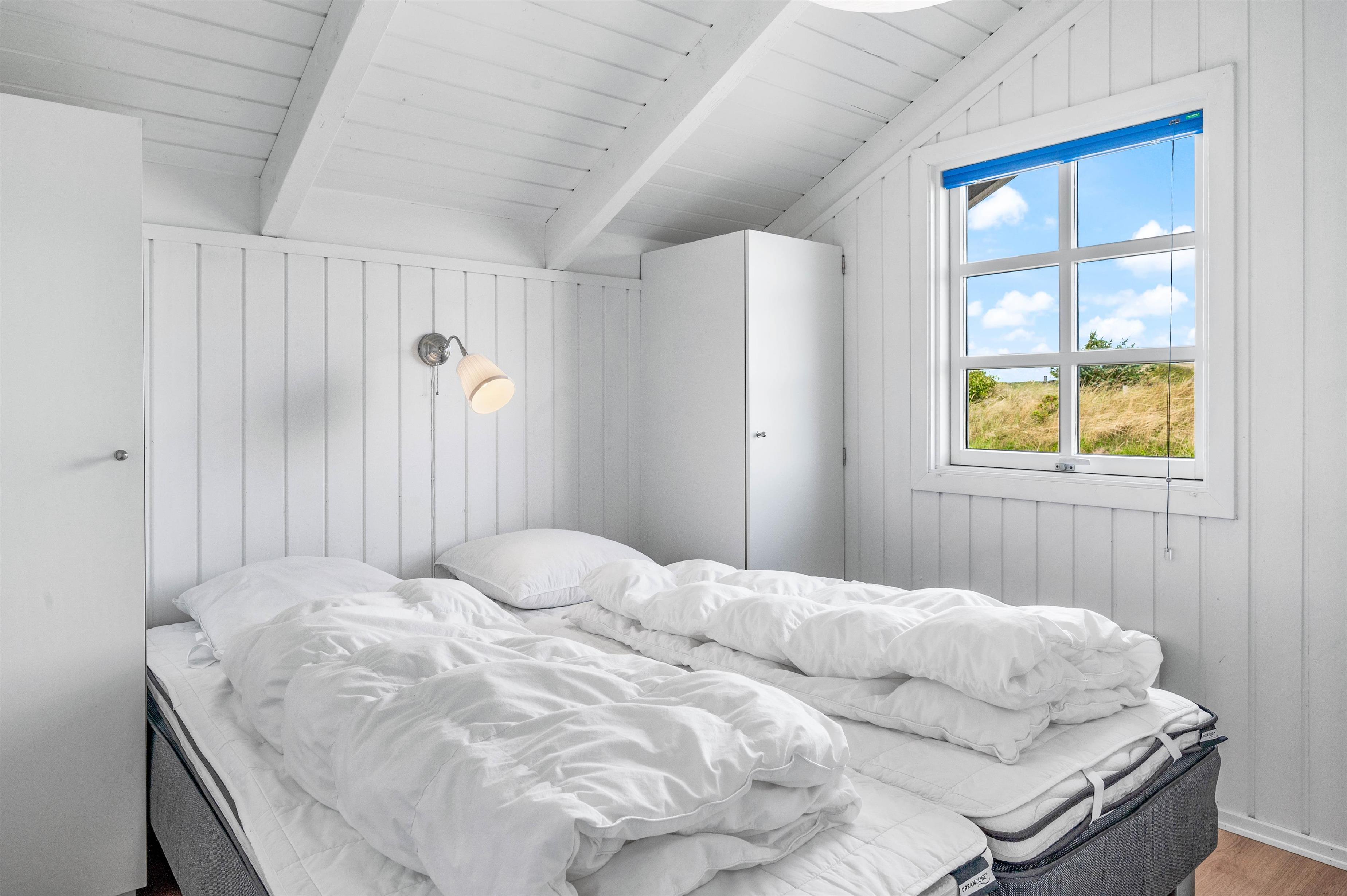 På Bjerregårdsvej 263 giver den lyse og venlige indretning i sommerhuset straks den klassiske feriestemning. Tænd op i brændeovnen og lad roen falde over jer til en frisk kop kaffe. I stuen er et fint lysindfald igennem det brede vinduesparti, og de hvidmalede vægge og lofter op i kip bidrager også til indtrykket. Har I brug for at trække jer tilbage for en stund, er der en hyggelig alkove i forbindelse med stuen. Spisekøkkenet indeholder alt, hvad I behøver til at forkæle hinanden med lækre hjemmelavede måltider.