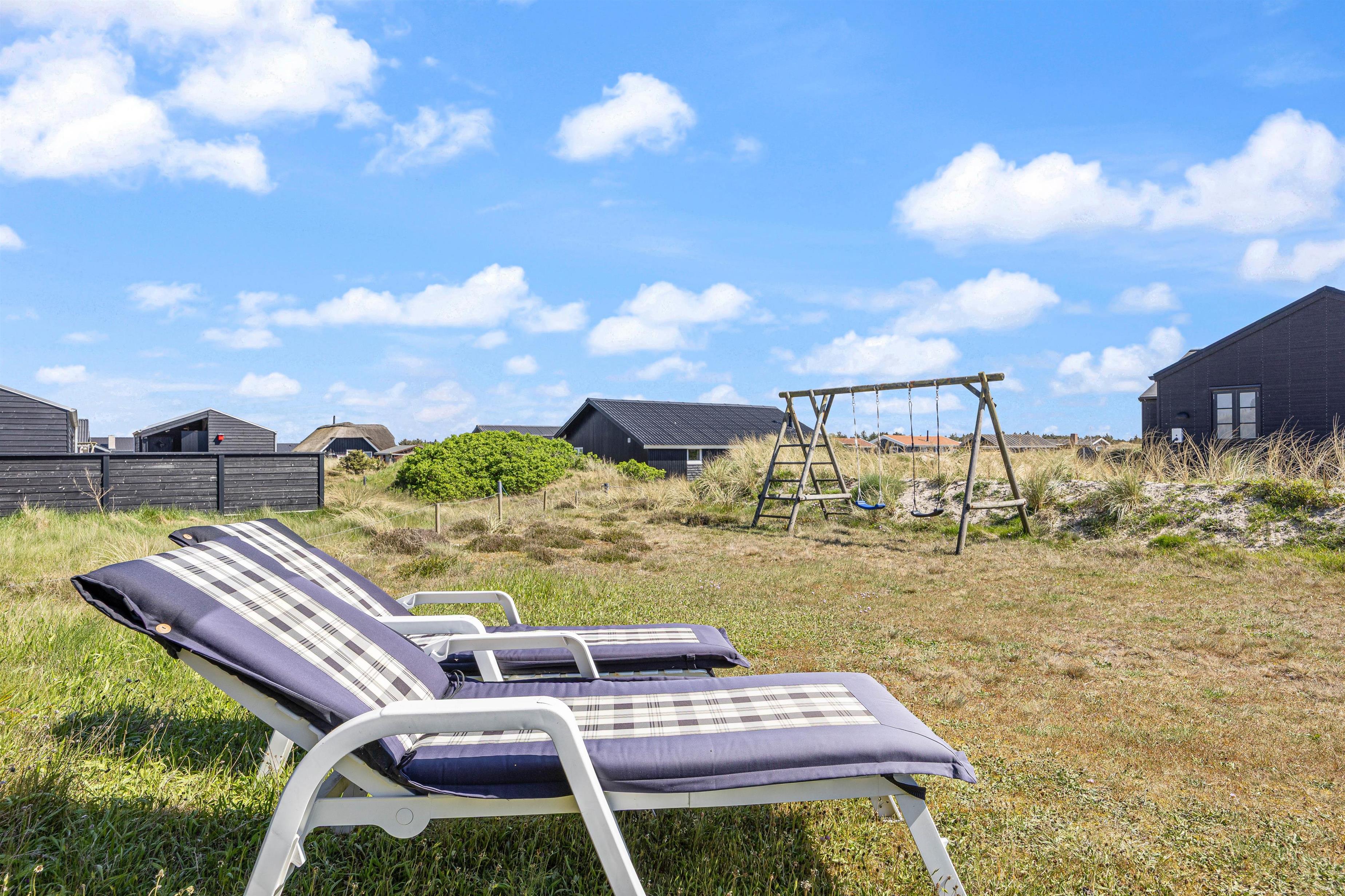 Den friske luft på vestkysten kan nydes fra den let afskærmede, lukkede og delvis overdækkede terrasse, som har havemøbler og liggestole. Her er desuden en grill, så I kan stege et lækkert stykke kød på grillen, eller måske friskfanget fisk, som I selv har fanget i fjorden, skal smides på til aftensmaden?