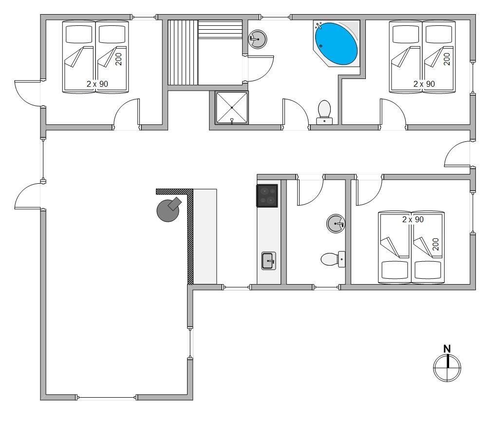 Sommerhuset er indrettet til 6 personer, som har dobbeltværelser til rådighed. Spabadet og saunaen på badeværelset giver mulighed for afslapning efter en lang gåtur ved Vesterhavet. Som et ekstra plus har sommerhuset et gæstetoilet, så der ikke opstår kø. Der er gulvvarme på både badeværelse og gæstetoilet, så I ikke fryser fødderne. En energibesparende varmepumpe hjælper til med opvarmning af sommerhuset.