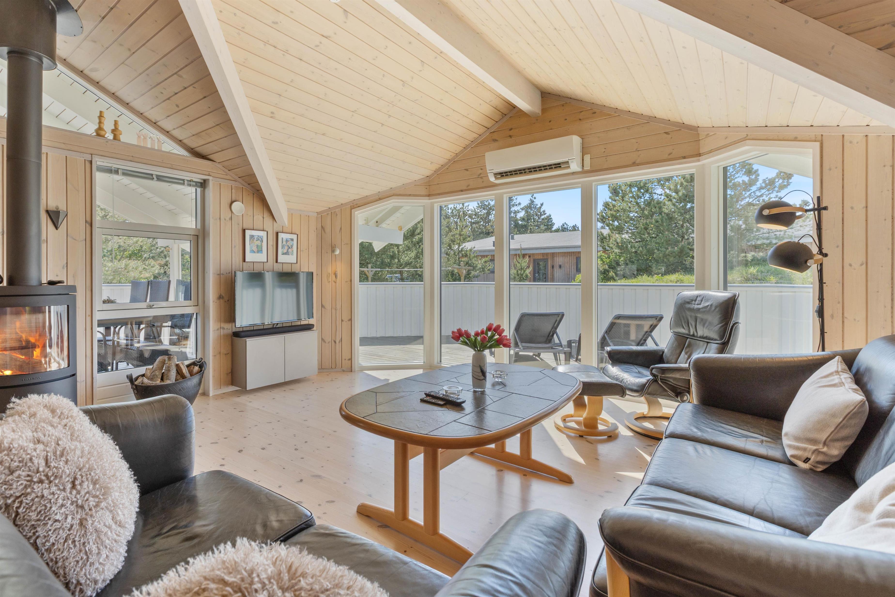 Feriehusets dejlige badeværelse er med gulvvarme, bruseniche, hjørnespa og sauna. Køkkenet er veludstyret med bl.a. opvaskemaskine og 61 l fryser. Der er også gulvvarme i køkkenet. Stuen er rigtig hyggeligt og smagfuldt indrettet. Den dekorative og praktiske brændeovn er godt placeret mellem køkken, spiseafdeling og selve stuen, så den effektivt kan sprede både varme og hygge. Der er desuden fladskærm-TV, DVD og gratis trådløst internet i feriehuset.