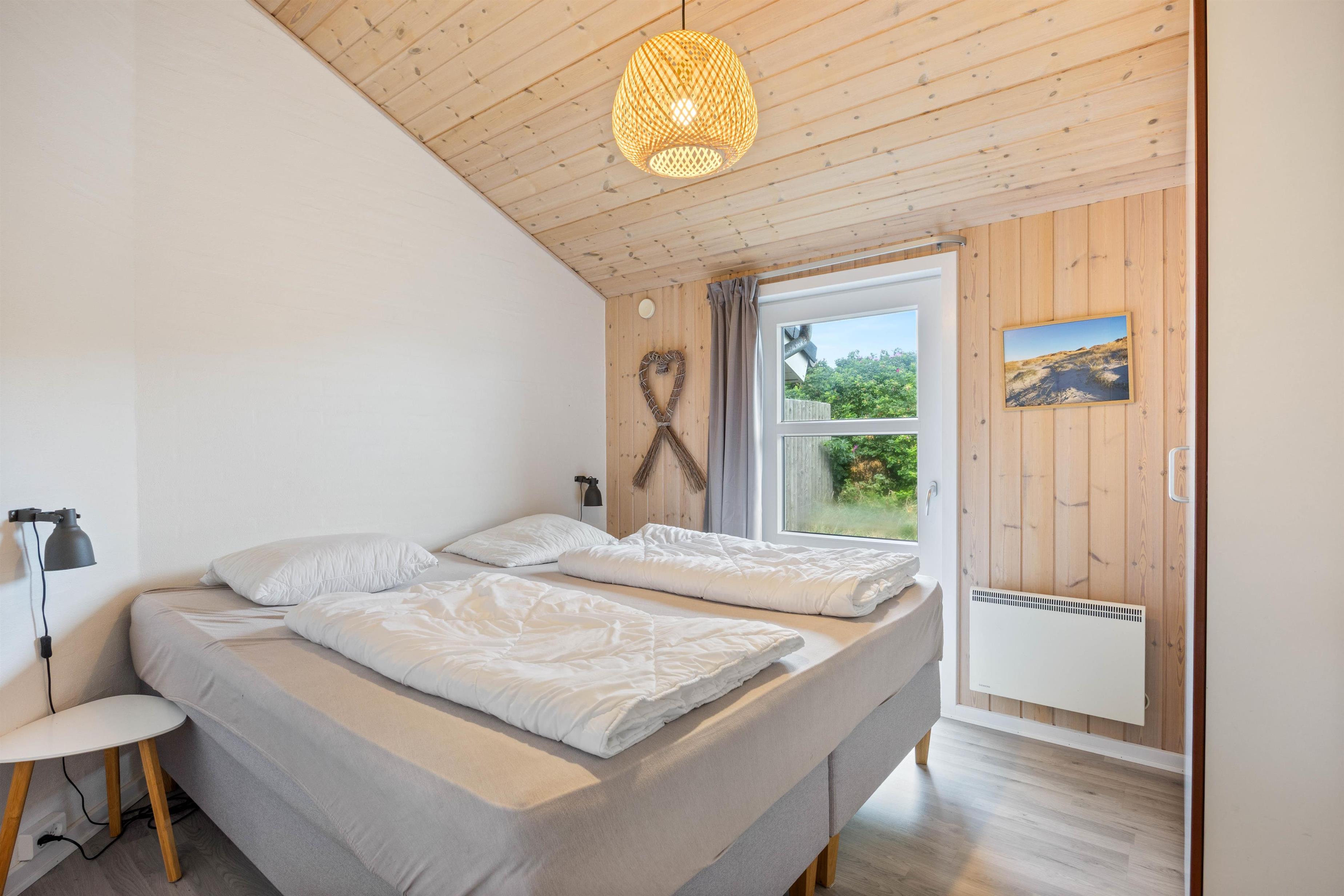 Her får du ikke kun et hyggeligt feriehus, men også en god beliggenhed i Bjerregårds populære sommerhusområde. Kun 500 meter fra feriematriklen ligger den brede sandstrand og venter på dig, og en rask gåtur fra sommerhuset ligger Bjerregårds lokale købmand, som har et stort udvalg af dagligvarer og ferieproviant – inklusiv en bagerafdeling, hvor du hver morgen kan købe nybagte rundstykker og andre godter til morgenkaffen.