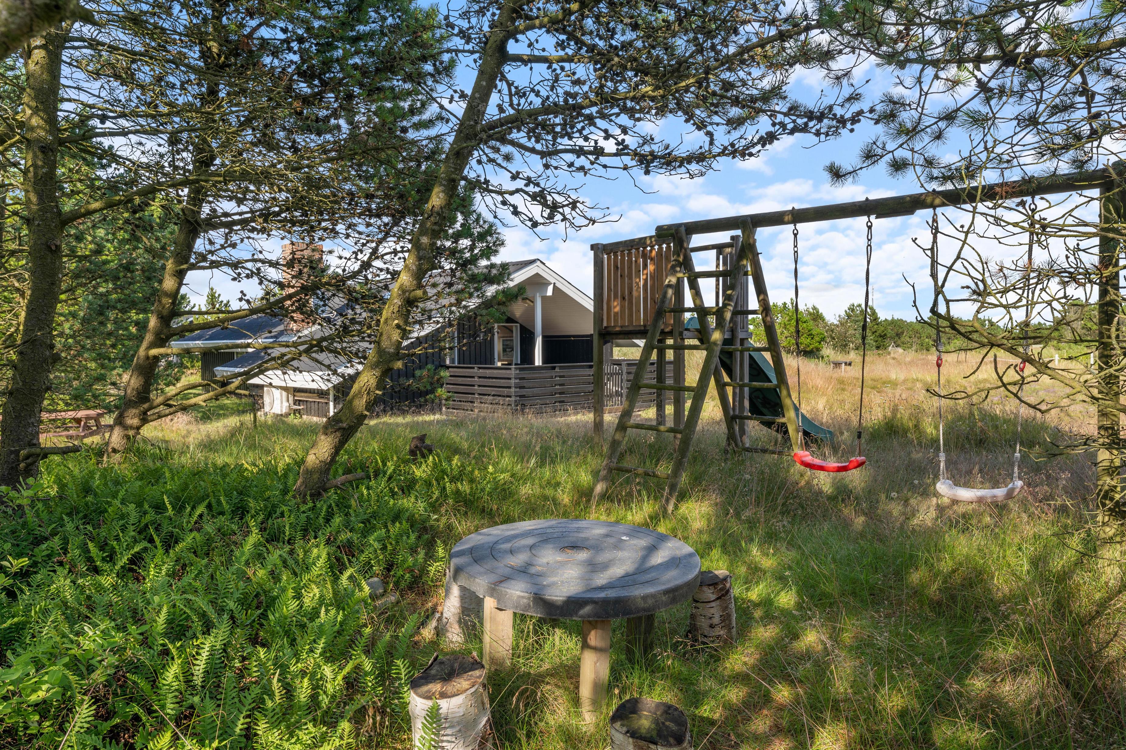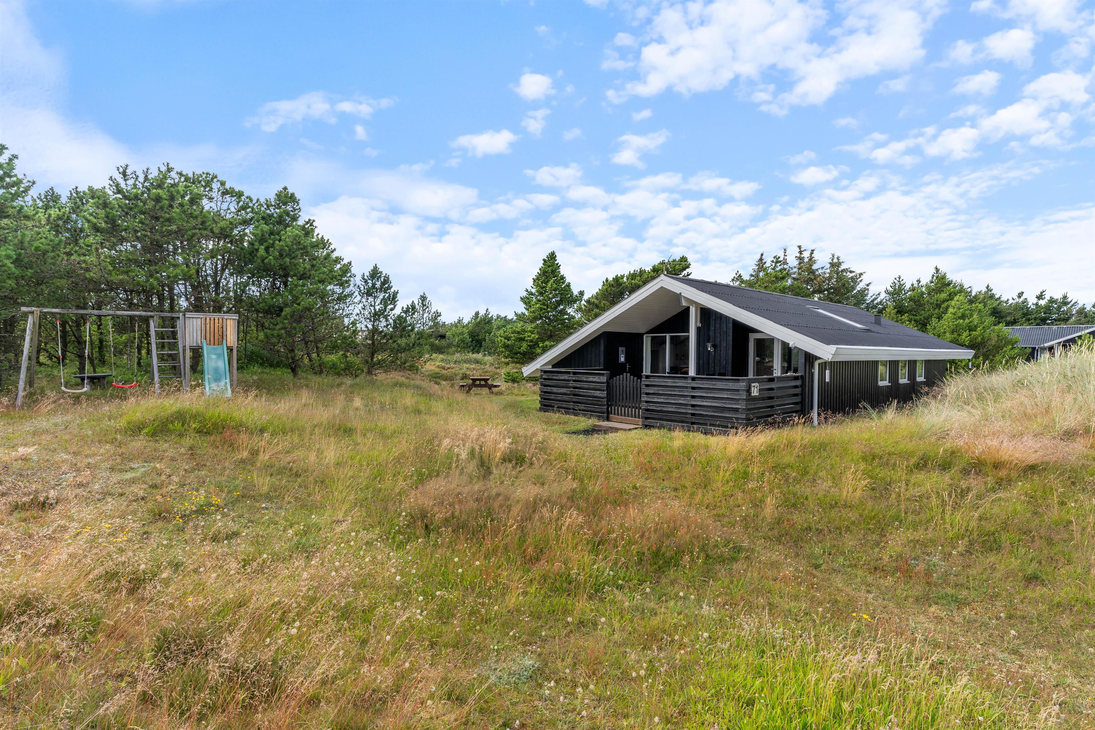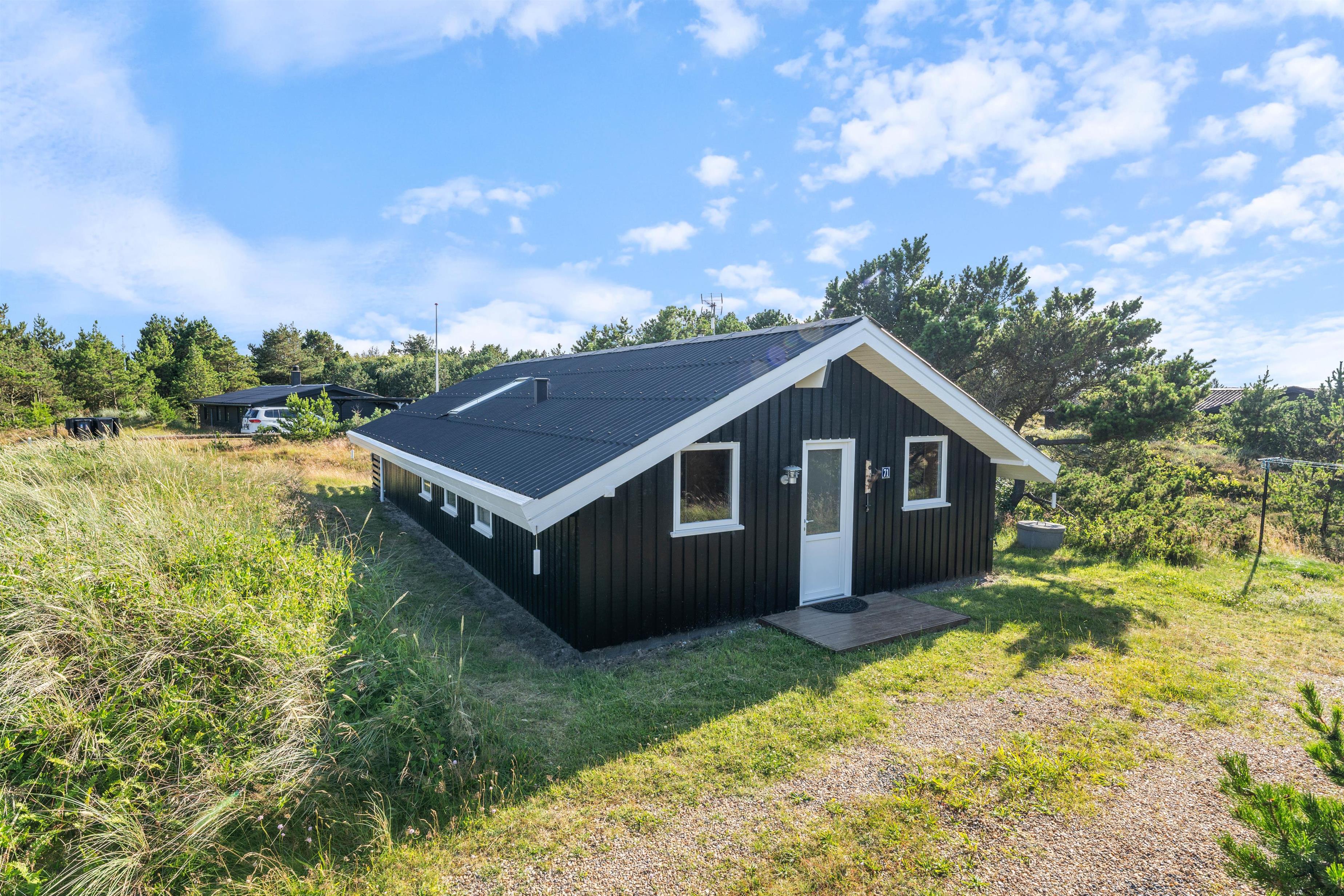 Sommerhuset er dejligt beliggende på en stor naturgrund for enden af en lille sidevej i rolige omgivelser midt i hjertet af Vestjylland. Herfra er der kort afstand til badestrand (ca. 850m) og indkøbsmuligheder (ca. 500m). På grunden er der sandkasse og gyngestativ, hvor børnene kan få dagen til at gå. På den lukkede og delvist overdækkede terrasse indbyder havemøbler og liggestole til afstresning og afslapning midt i den skønne vestjyske natur.
