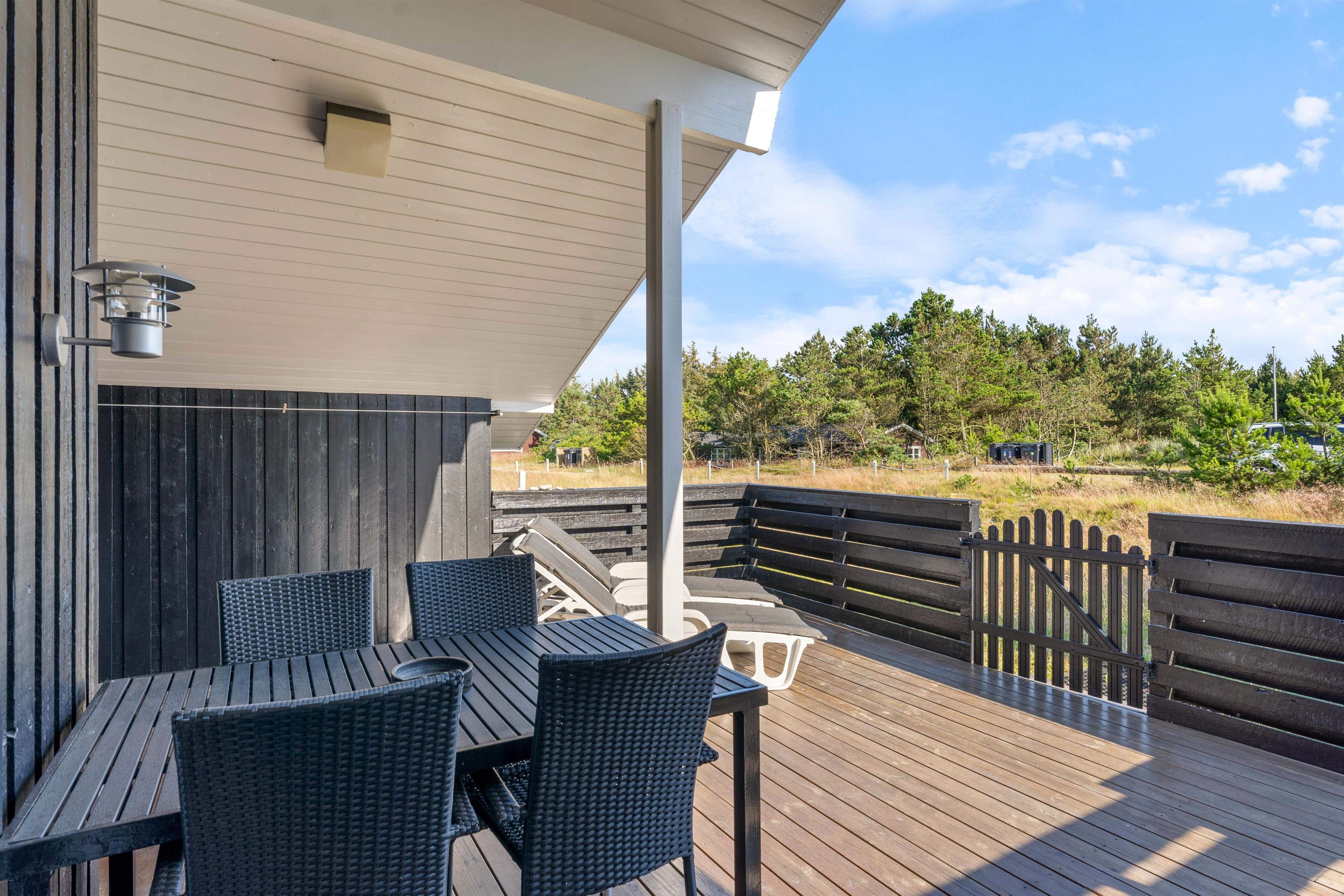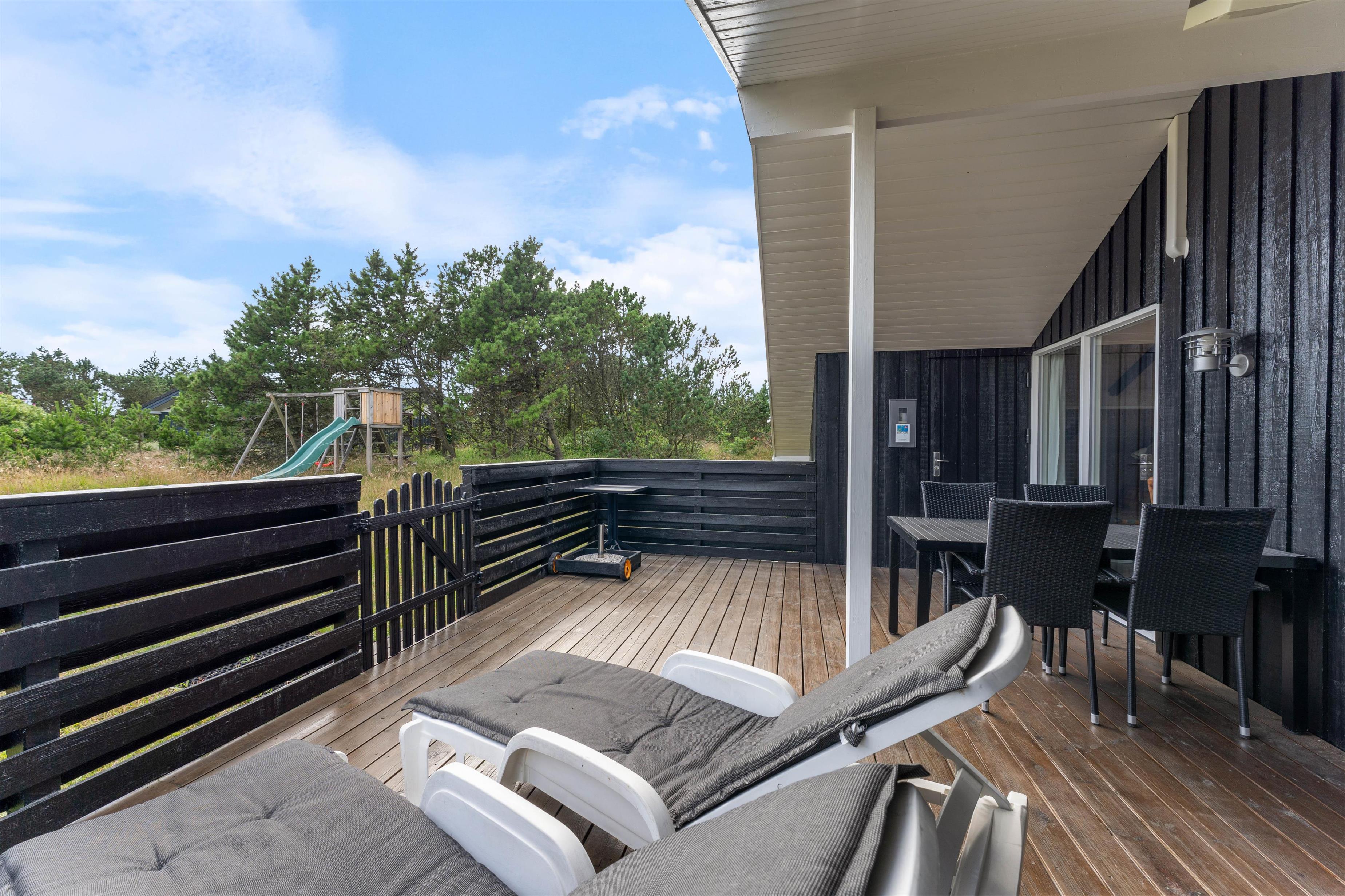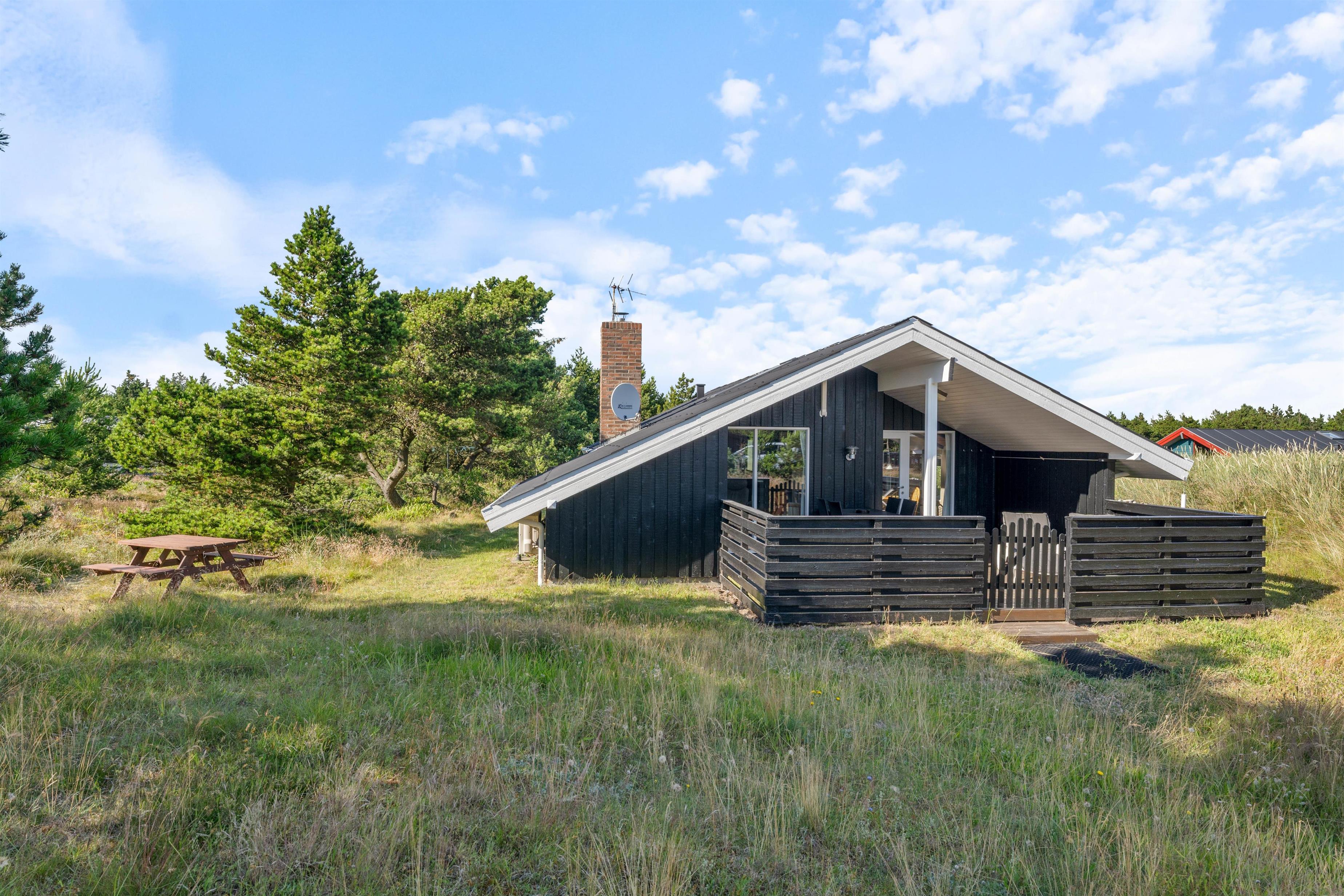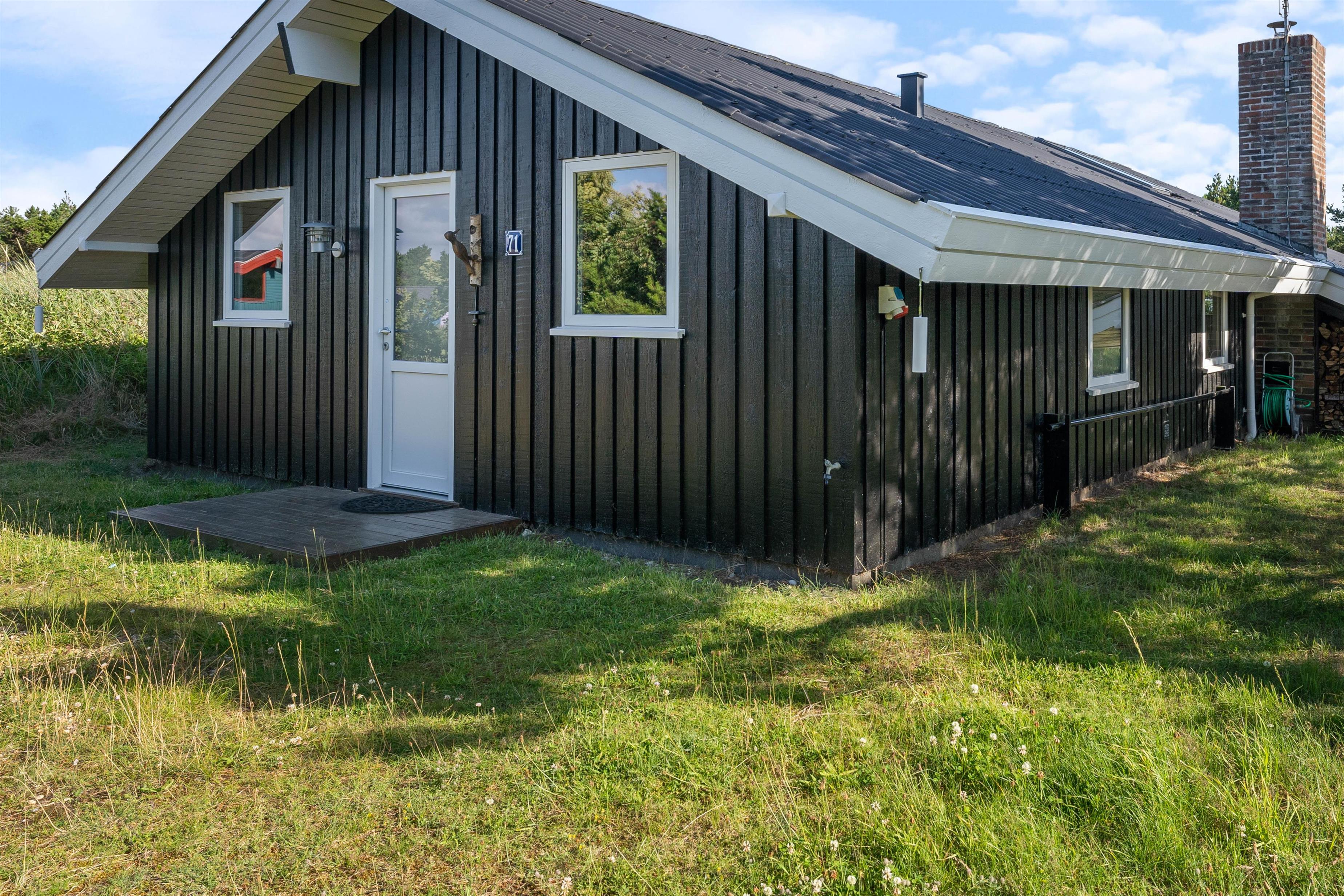 Sommerhuset er dejligt beliggende på en stor naturgrund for enden af en lille sidevej i rolige omgivelser midt i hjertet af Vestjylland. Herfra er der kort afstand til badestrand (ca. 850m) og indkøbsmuligheder (ca. 500m). På grunden er der sandkasse og gyngestativ, hvor børnene kan få dagen til at gå. På den lukkede og delvist overdækkede terrasse indbyder havemøbler og liggestole til afstresning og afslapning midt i den skønne vestjyske natur.