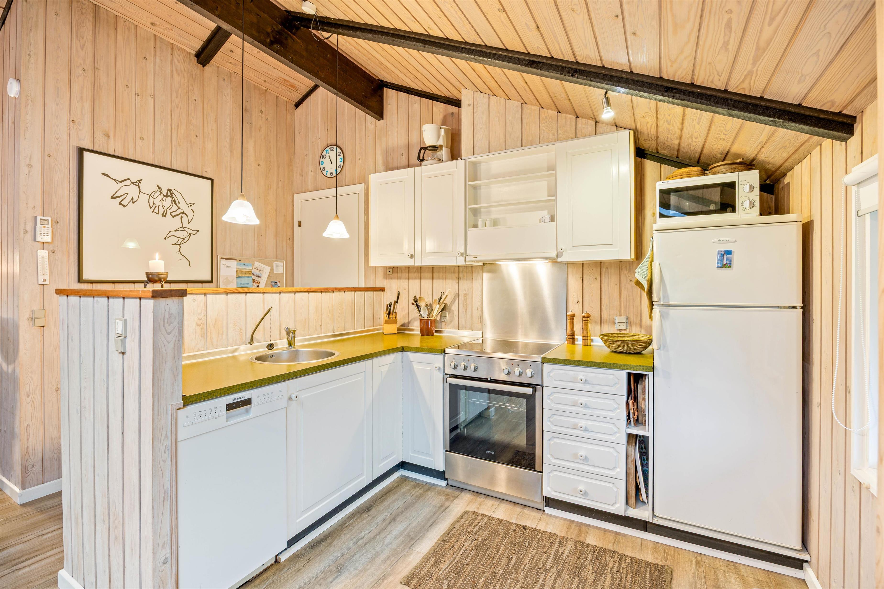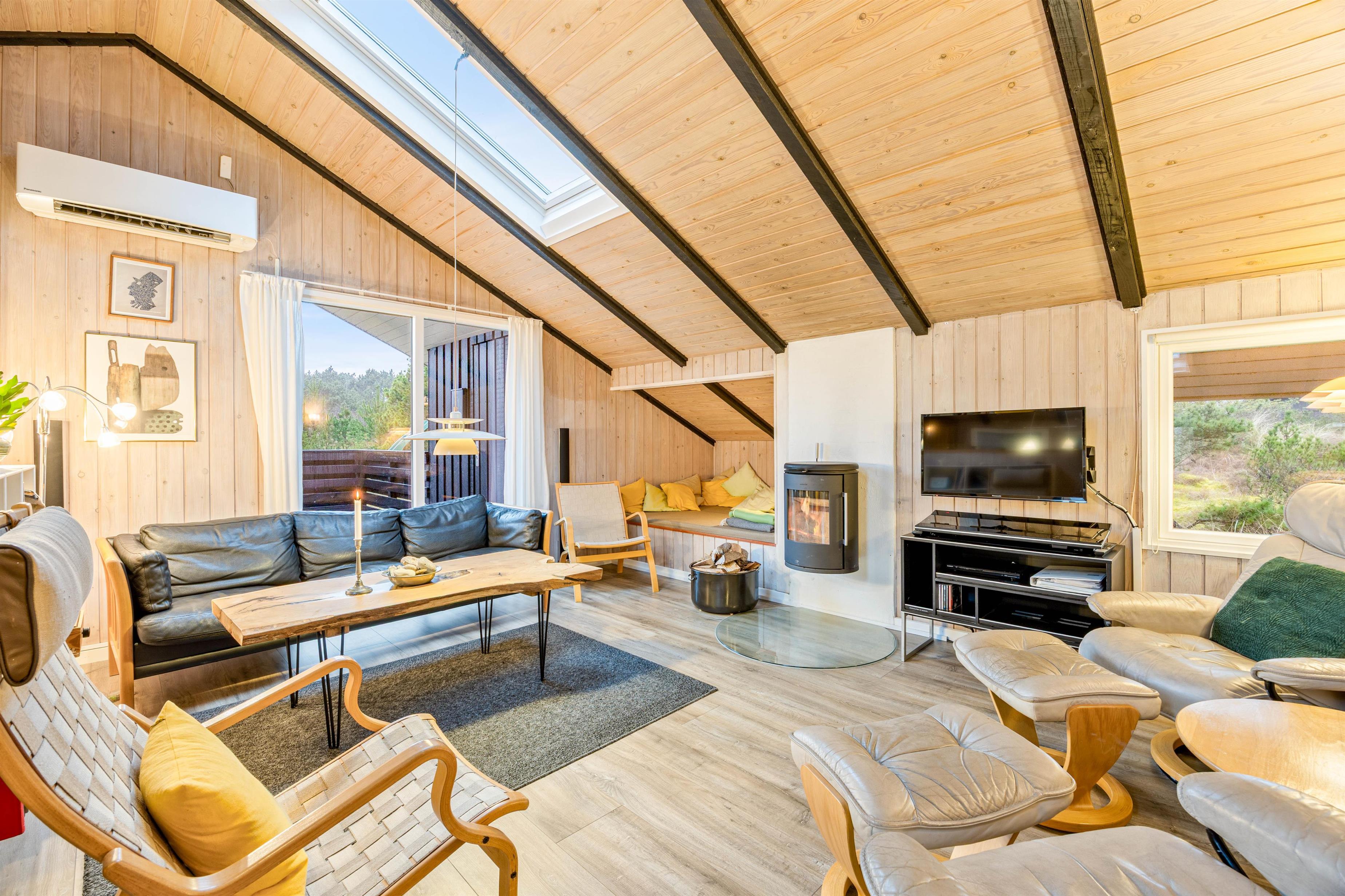 Dette sommerhus til 5 personer er renoveret i 2018 og har loft til kip og lyse trævægge, som gør feriehuset meget indbydende.