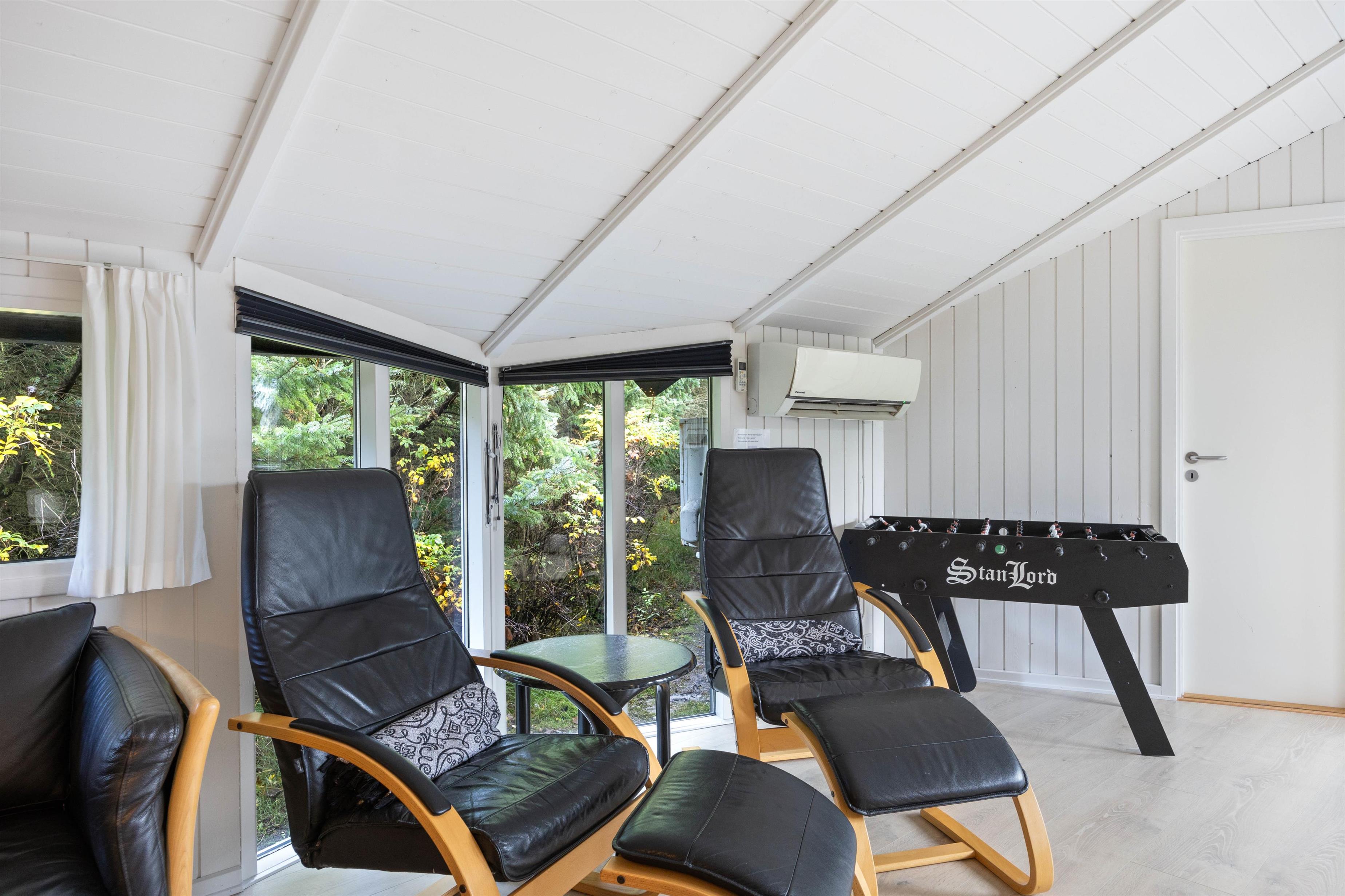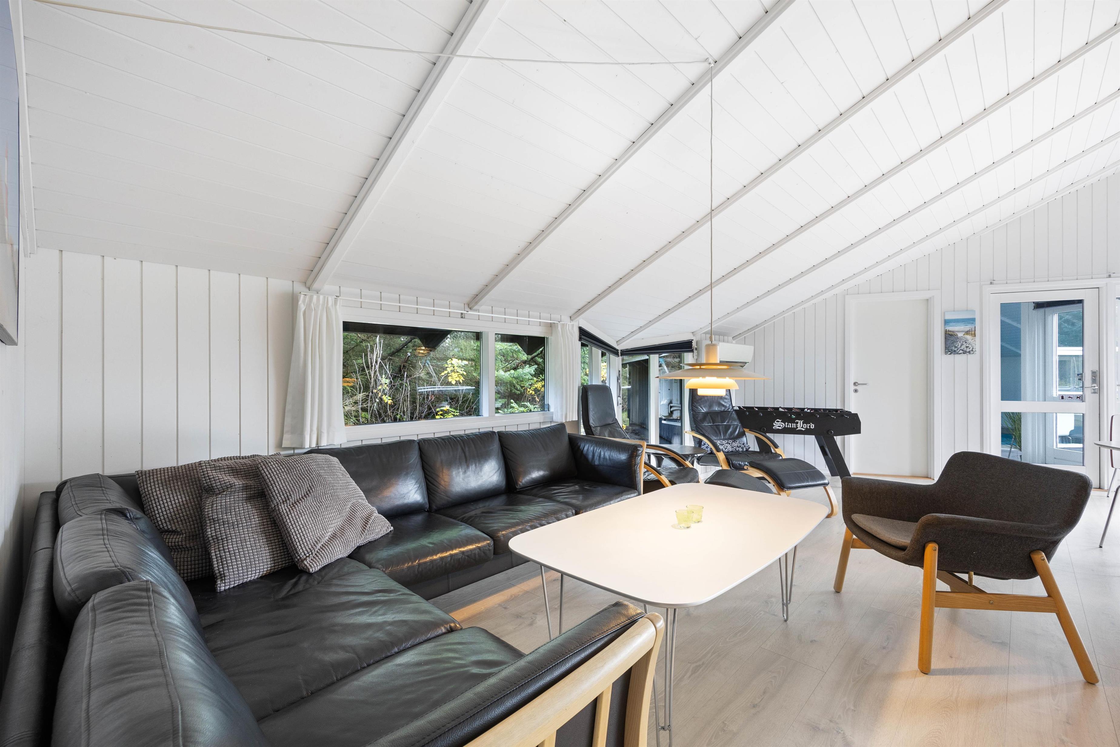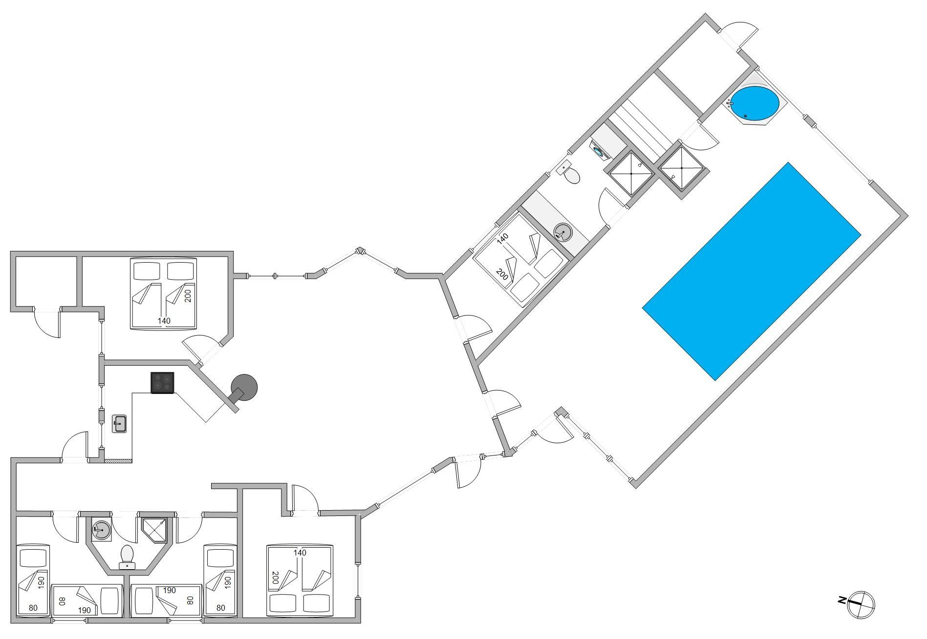 Fereihuset byder plads til 10 personer og har fem soveværelser. Tre af værelserne har hver en dobbeltseng, og på de to andre står der to enkeltsenge. Soveværelset ved poolrummet er mindre og dermed perfekt til børnene. En varmepumpe hjælper til med opvarmningen af ferieboligen.