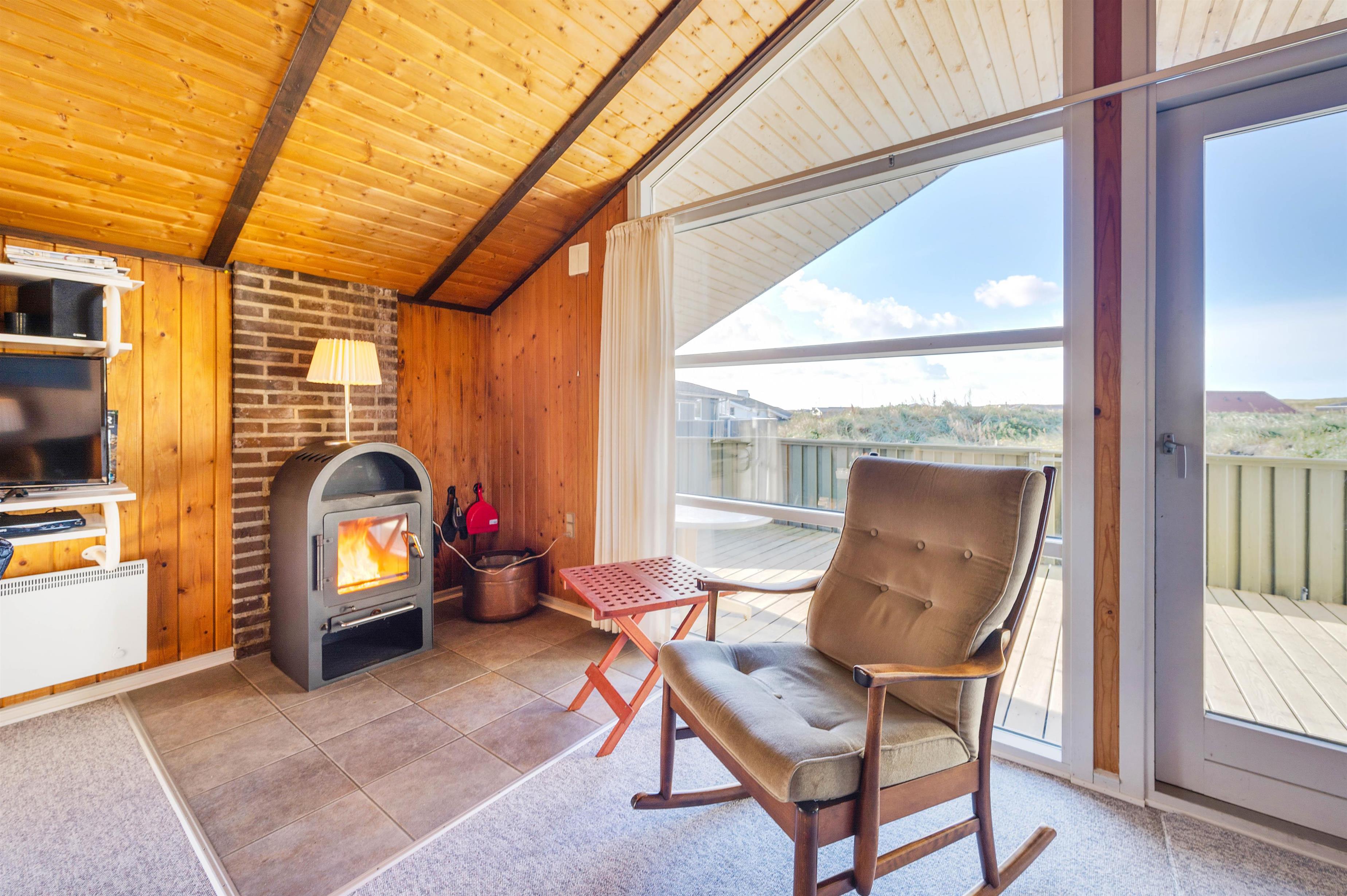 I stuen kan I sætte jer godt til rette i sofaen efter en oplevelsesrig feriedag i naturen. Her kan I nyde varmen fra den knitrende brændeovn, mens hele familien er samlet til en hyggelig stund i godt selskab.