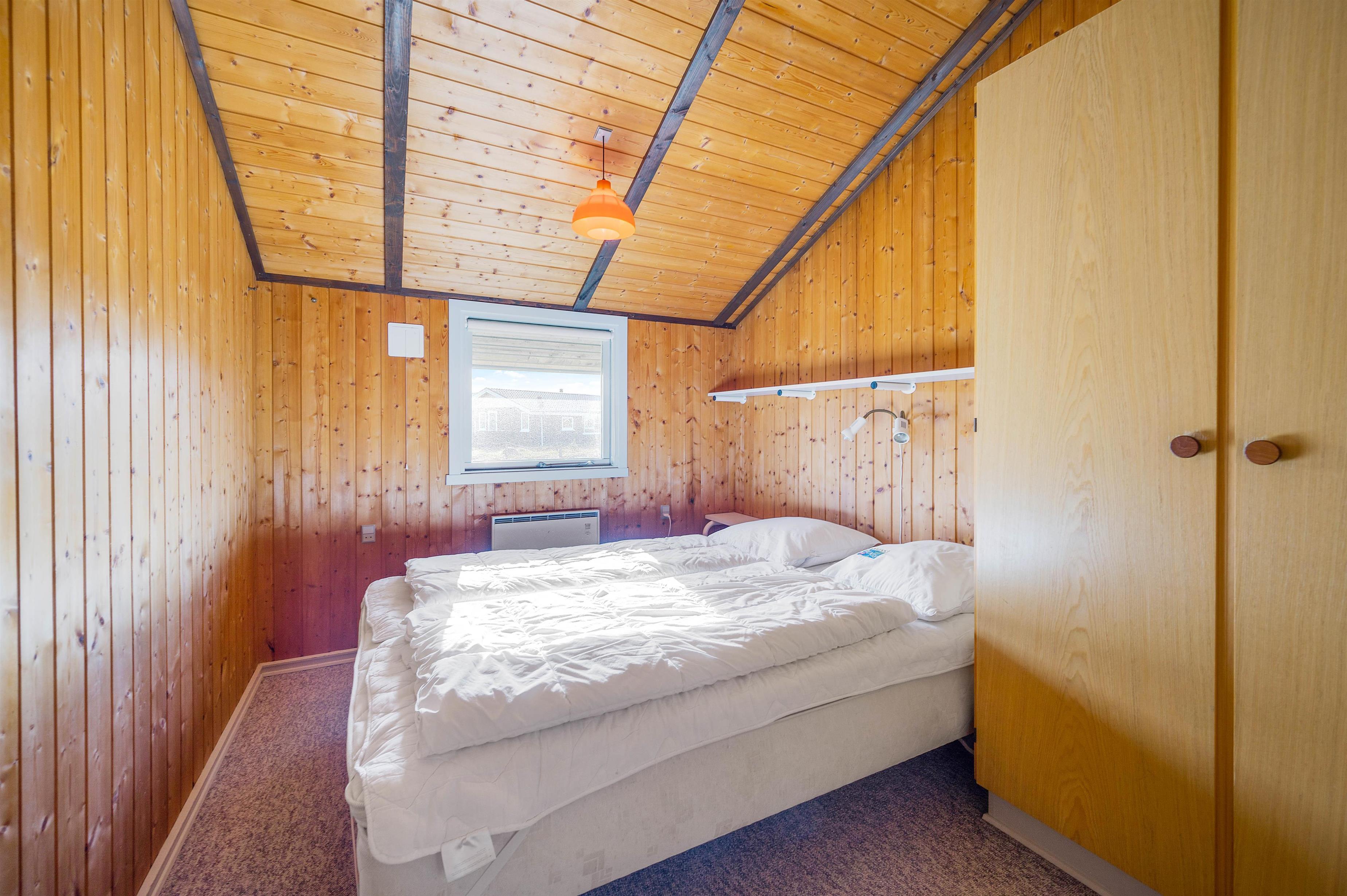 Alle 3 soveværelser i sommerhuset har gulvtæppe, og 2 af værelserne er indrettet med dobbeltsenge. På det sidste værelse finder I 2 enkeltsenge.