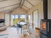 Samlingspunktet, feriehusets hjerterum, er den komfortable stue, som er i åben forbindelse med spiseområdet og køkkenet. Her er loft til kip, en alkove og en hyggelig indretning i rolige nuancer. Her kan I spille brætspil, nyde skønne måltider omkring bordet eller samles til en god film, der kan streames vha. feriehusets Chromecast. På de køligere dage kan I tænde op i brændeovnen, der spreder hygge og varme. En energibesparende varmepumpe er her også, og den sørger for et behageligt indeklima.