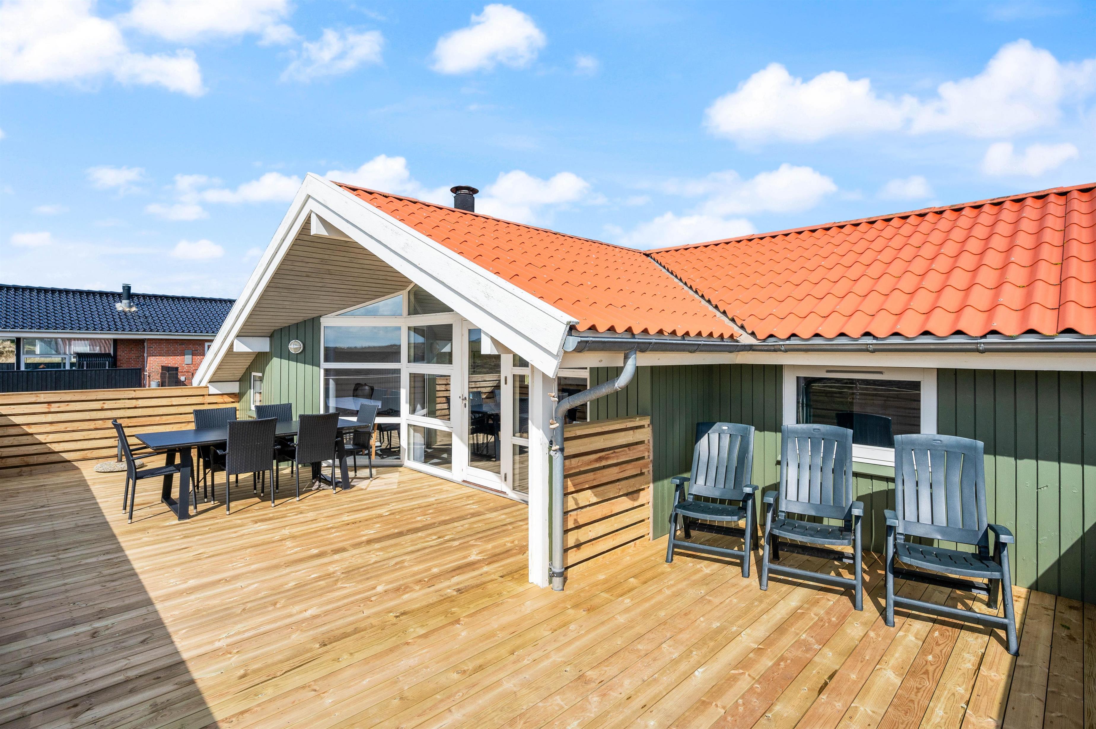 Til den lukkede terrrasse hører havemøbler og grill, og for de mindste er der på grunden indrettet sandkasse og gynge. Udsigten herfra er desuden utrolig smuk. Derfor vil terrassen helt sikkert komme til at danne rammen for mange hyggelige stunder i løbet af ferien på Vestkysten.