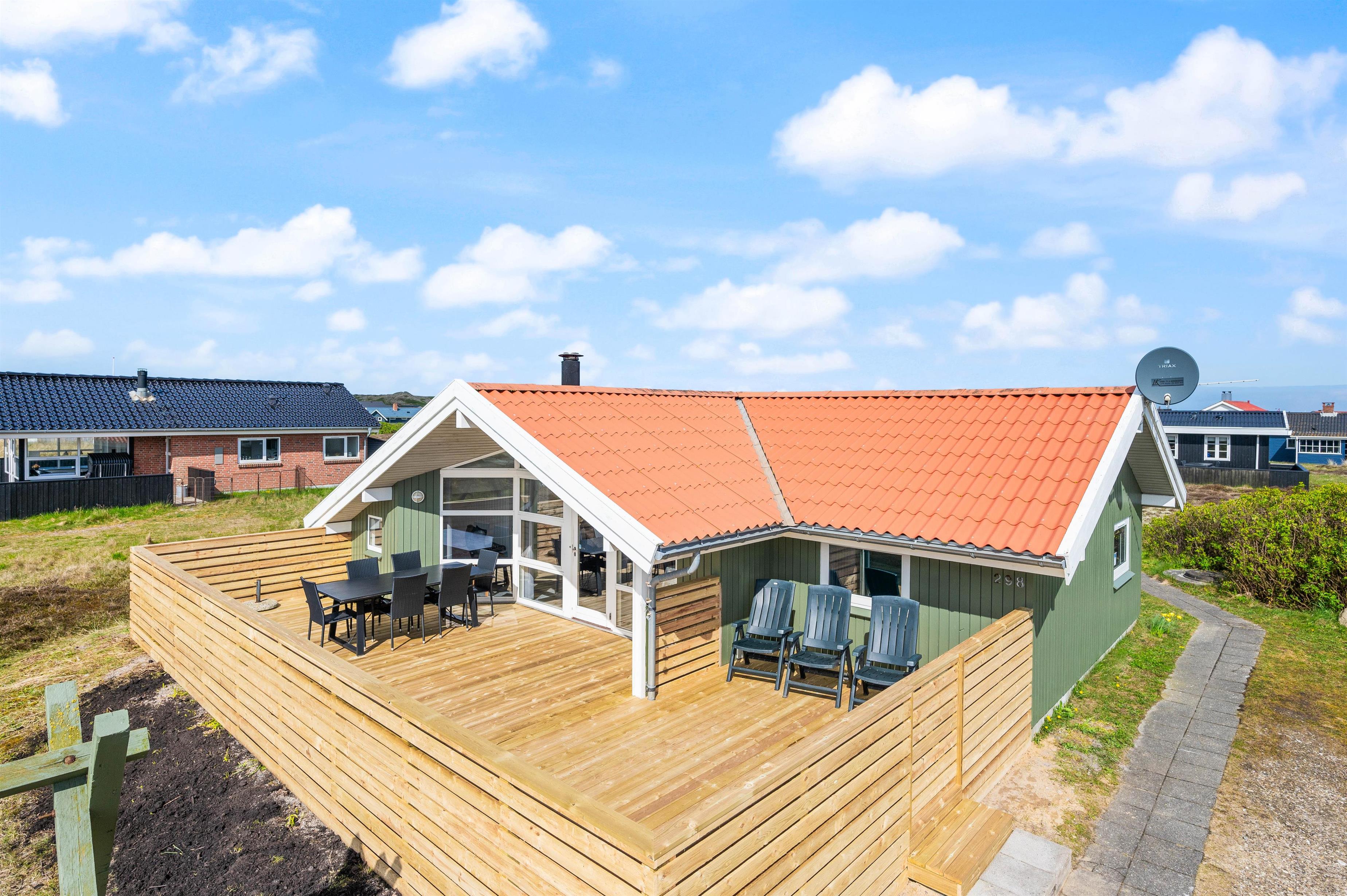 På Sønder Klitvej 298 ligger dette hyggelige sommerhus med pragtfuld udsigt til et stort hedeområde og klitter. Fra terrassen har du ikke bare udsigt til noget af den smukkeste natur i Vestjylland, den er er også helt lukket, og det er ideelt, når du har din hund med på ferie.