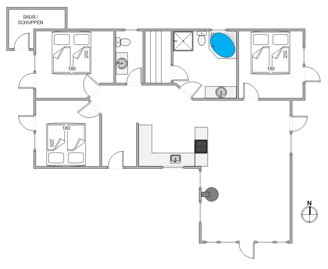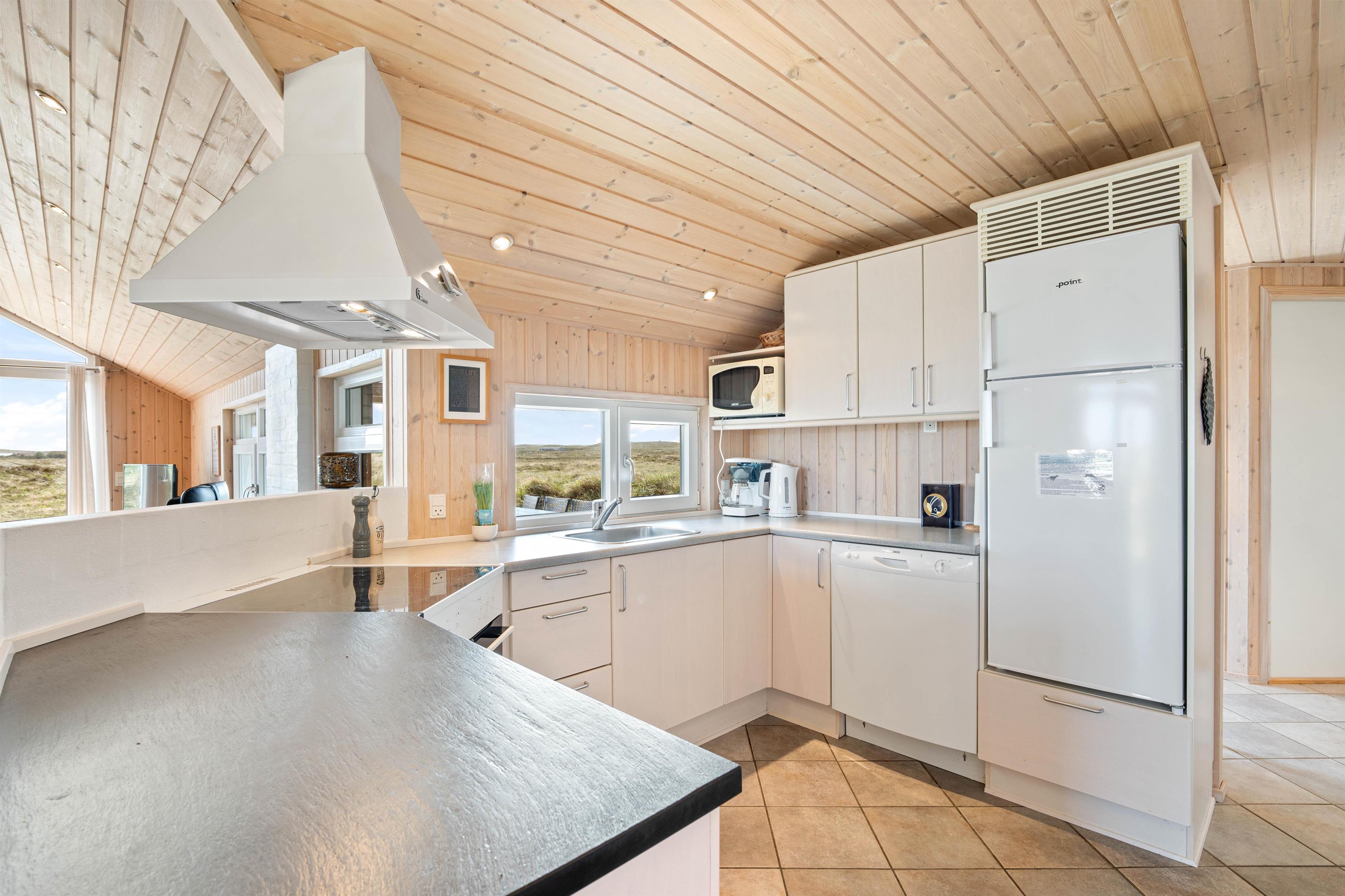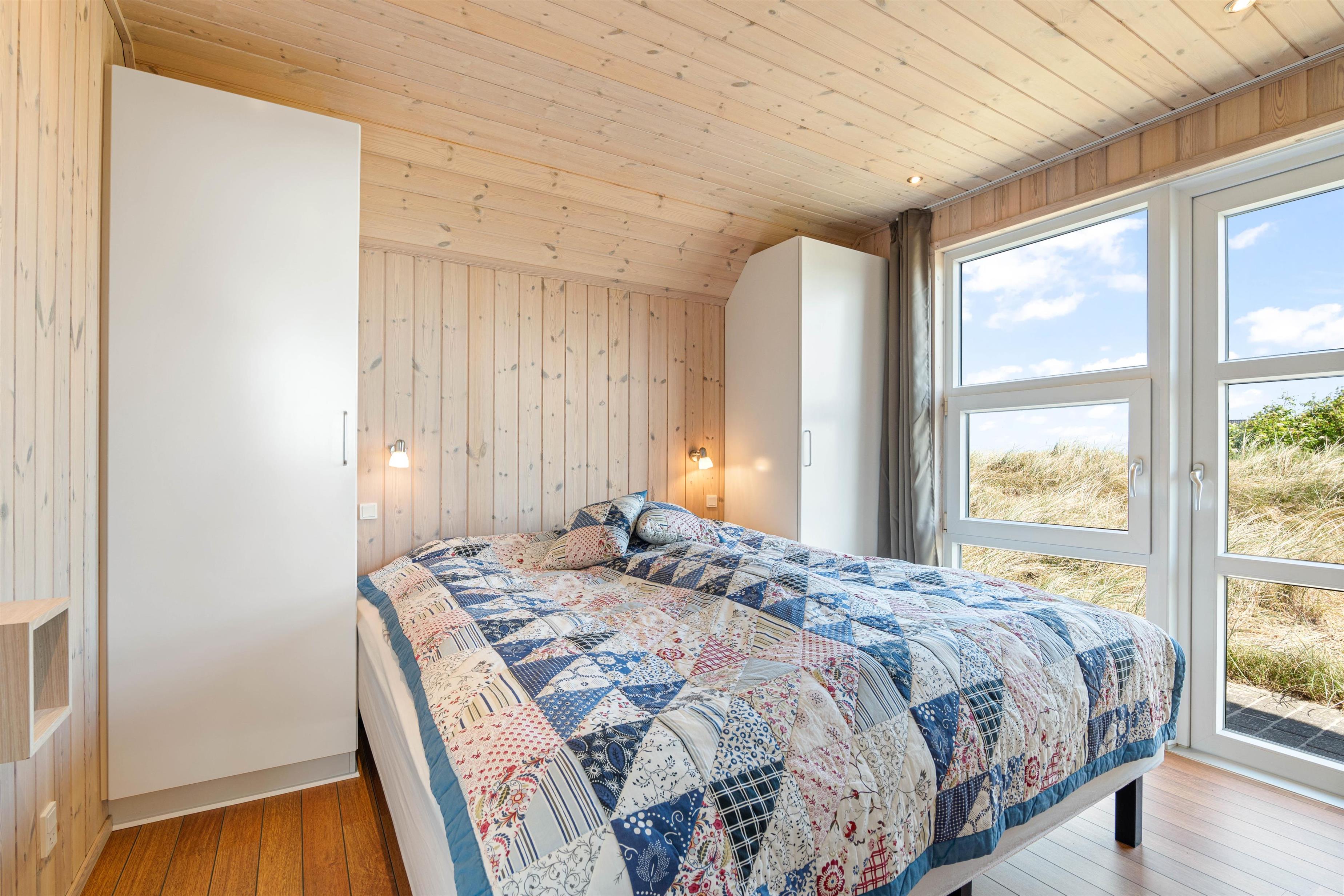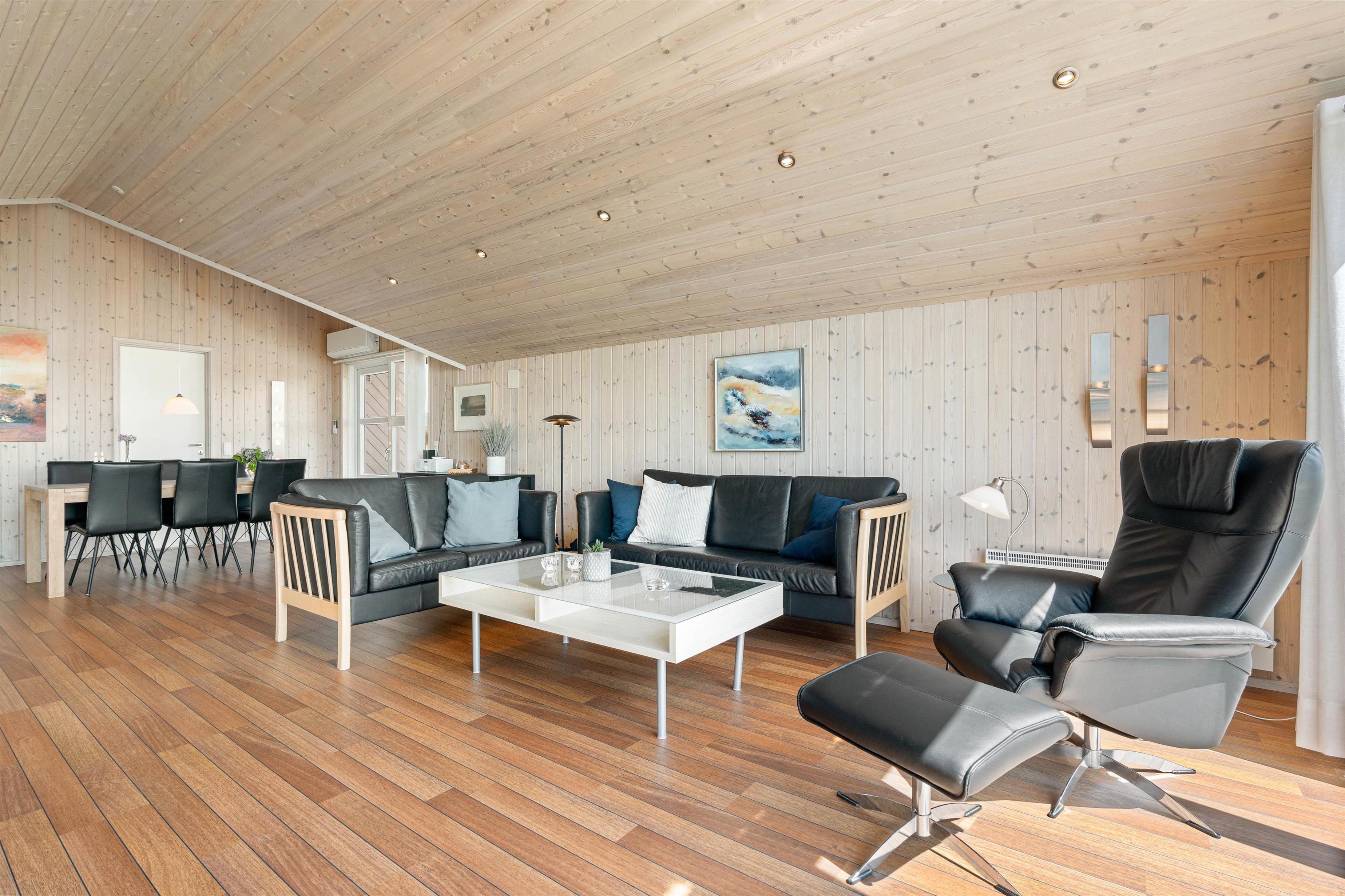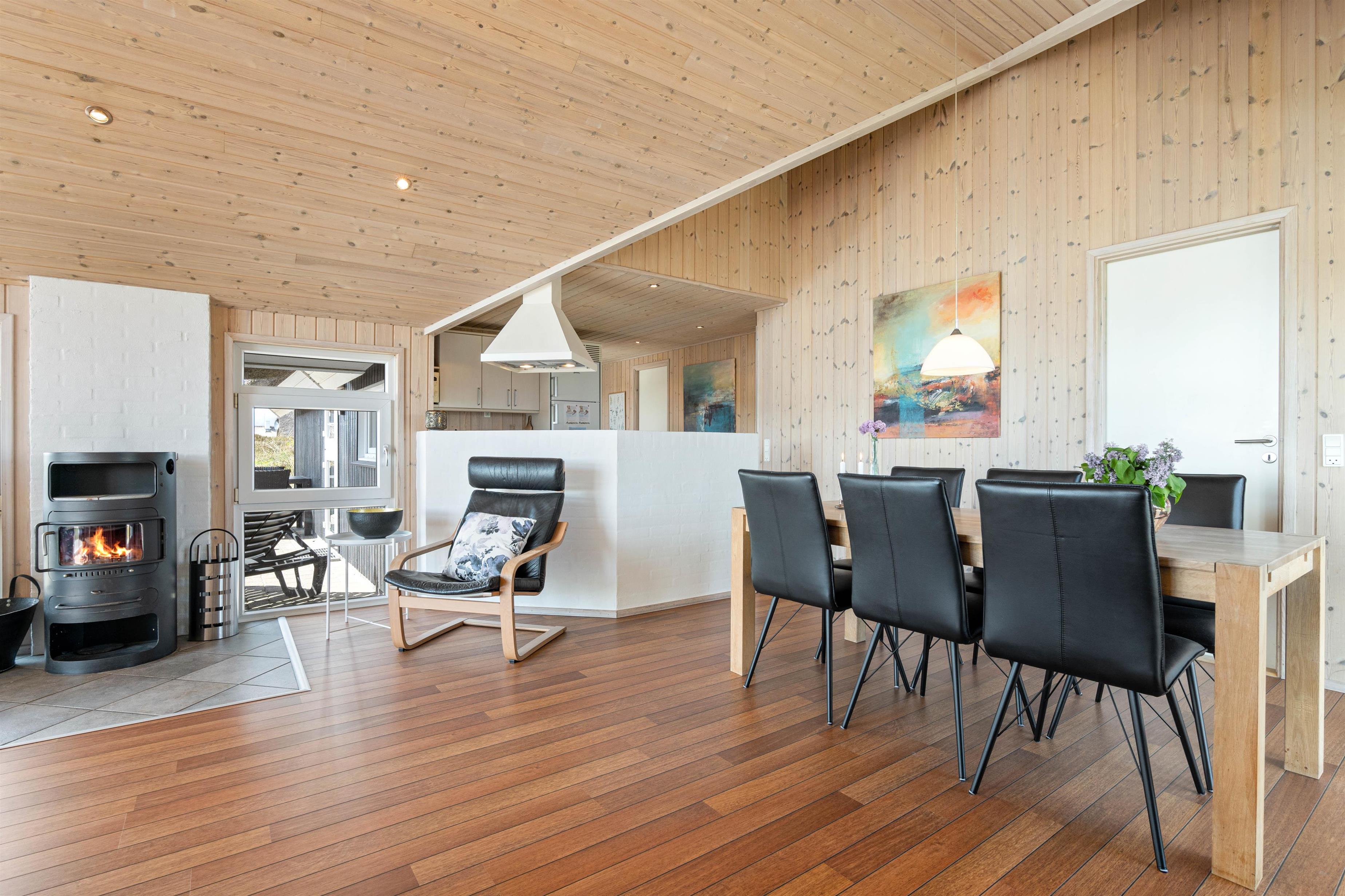 De store vinduespartier i stuen giver et naturligt lysindfald og en fantastiske udsigt ud over heden. Huset er bygget af kvalitetsmaterialer og smagfuldt indrettet med gedigne møbler. Som varmekilde er der både varmepumpe, brændeovn og el. De 3 store soveværelser er udstyret med kvalitets dobbeltsenge og klædeskabe. Alle 3 værelser har direkte udgang til terrasserne. Gratis wi-fi, dvd afspiller, Chromecast, parabol og DAB-radio.