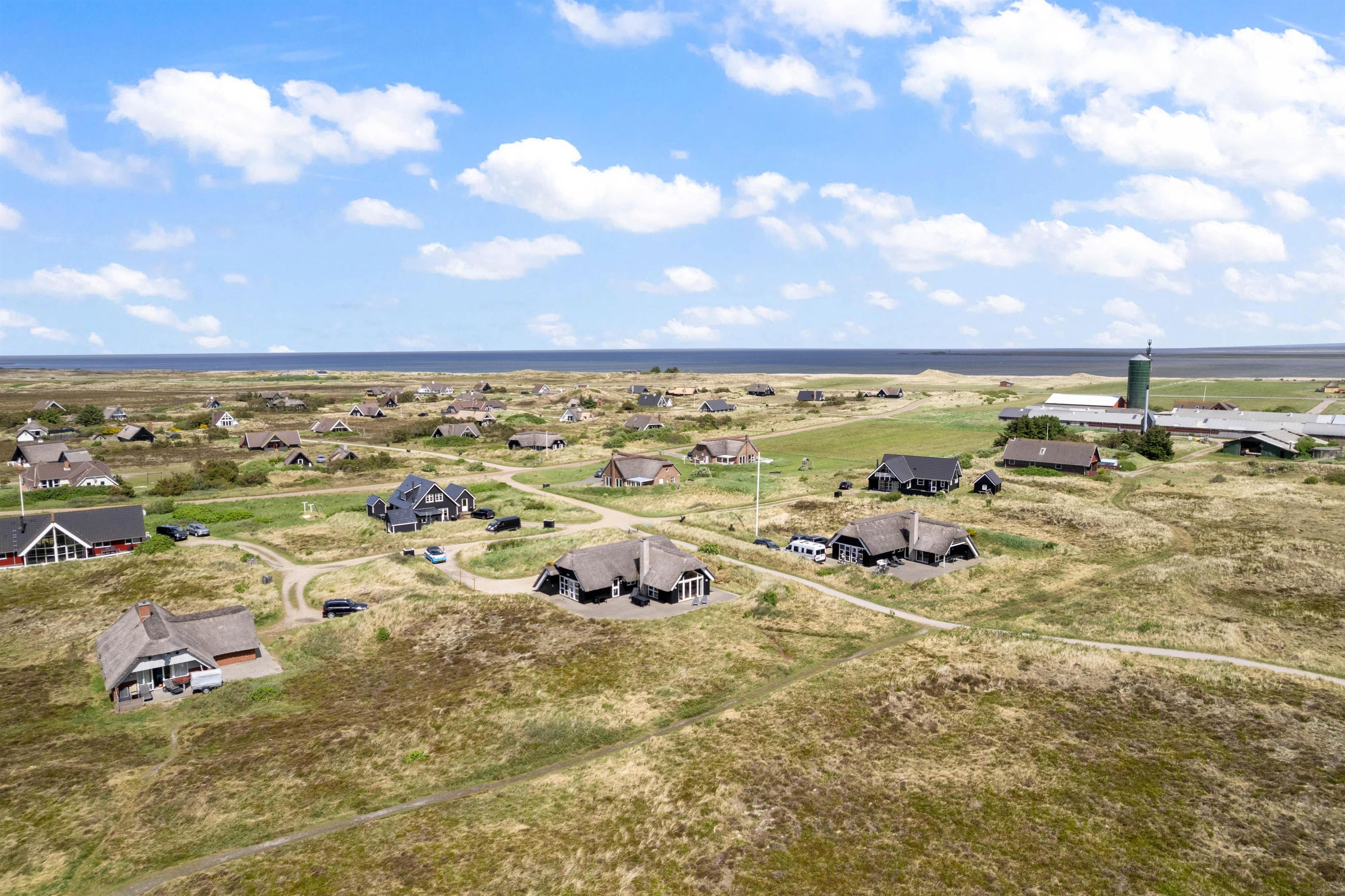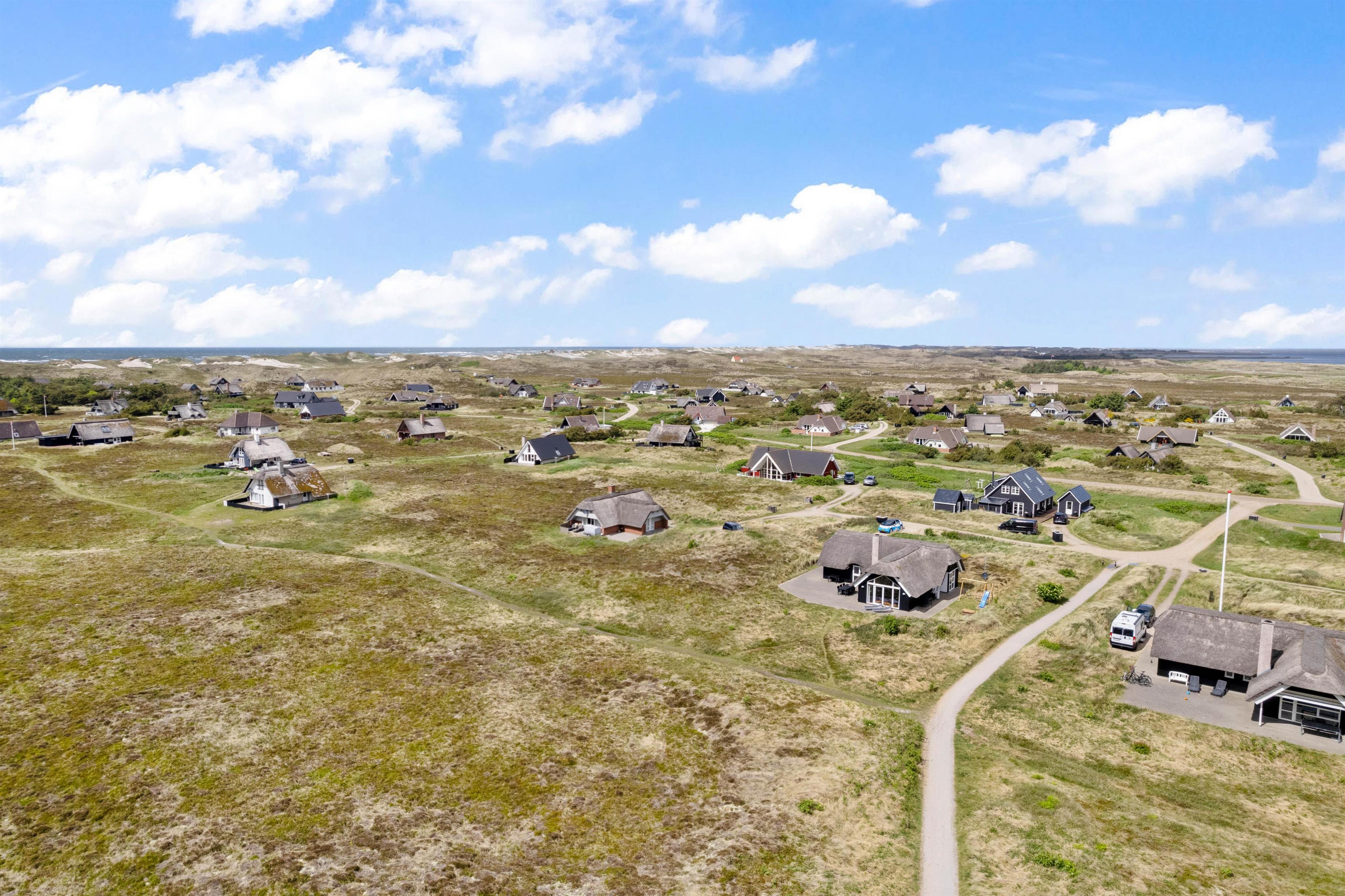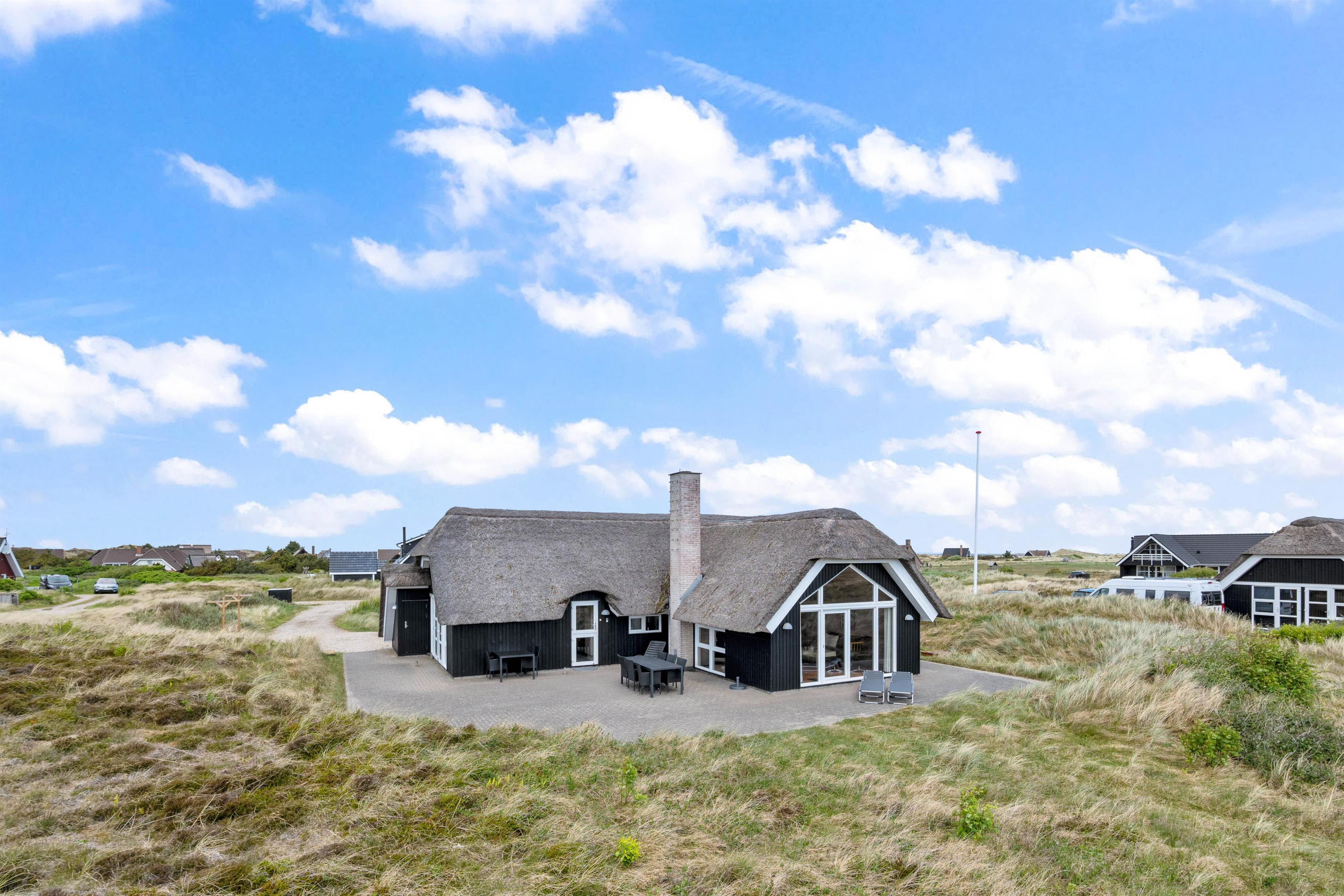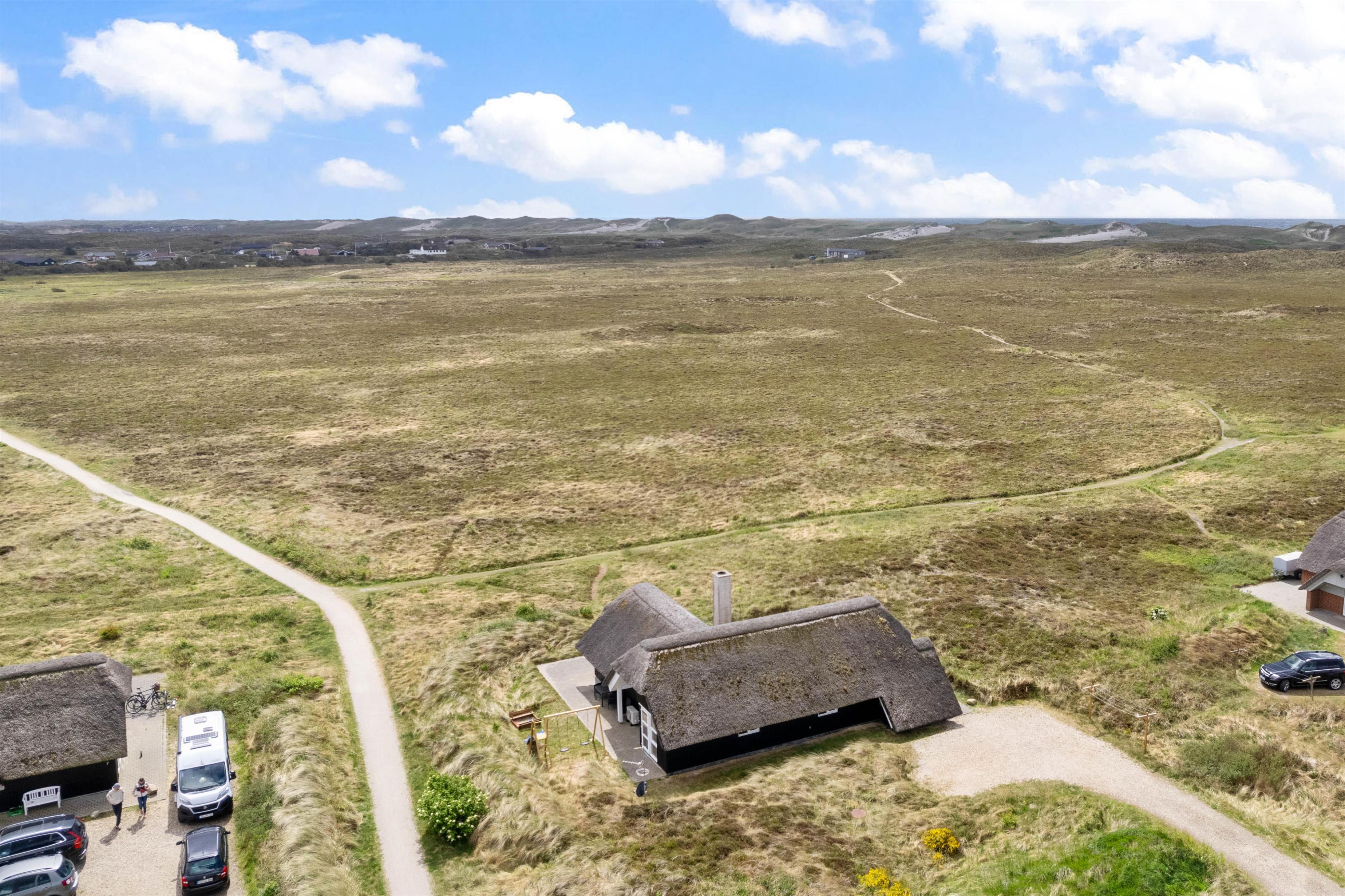 Dette flotte stråtækte sommerhus har en enestående beliggenhed med unik panoramaudsigt ud over det storslåede hede- og klitlandskab. Stedet er ideelt for jer, der elsker naturen og den friske vesterhavsluft.