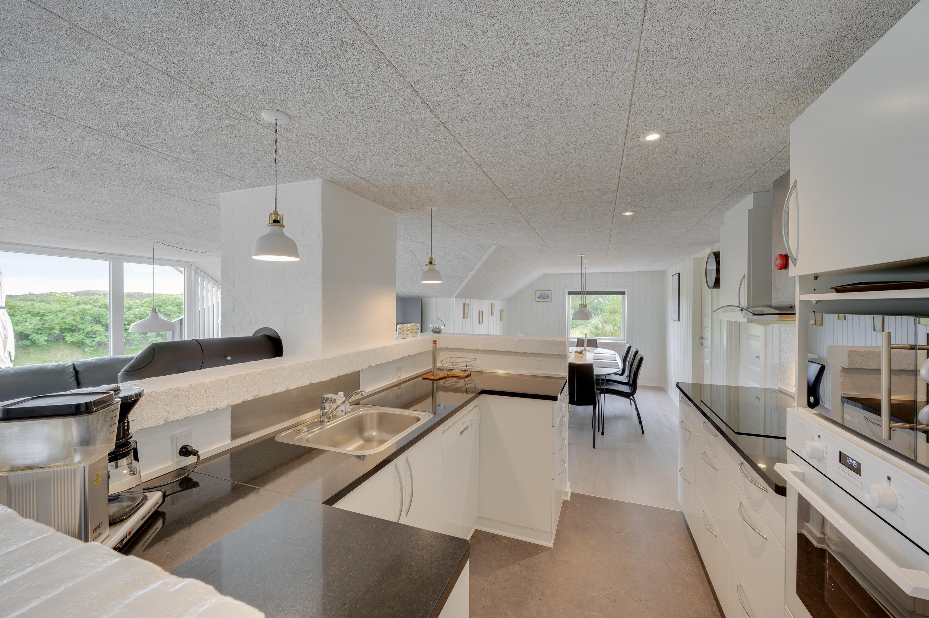 Sommerhuset er renoveret i 2021. Køkkenet med blandt andet opvaskemaskine og mikroovn ligger i sammenhæng med spiseafdelingen, der er i åben tilgang til opholdsstuen. De flotte gulve, trævægge og -lofter er gennemgående og sætter en hyggelig ramme for samvær og kvalitetstid.