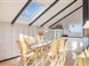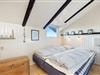 Fra indgangen mod venstre finder I soveafdelingen samt endnu et hyggeligt opholdsrum med varmepumpe. Sæt dig godt til rette med en god bog i lænestolen, mens børnene leger på gulvet. Alle soveværelser er alle indrettet med behagelige senge. De to store værelser er indrettet med en stor dobbeltseng, 180x200cm, og her er god mulighed for opbevaring, mens I på det sidste værelse finder en 140x200cm seng.