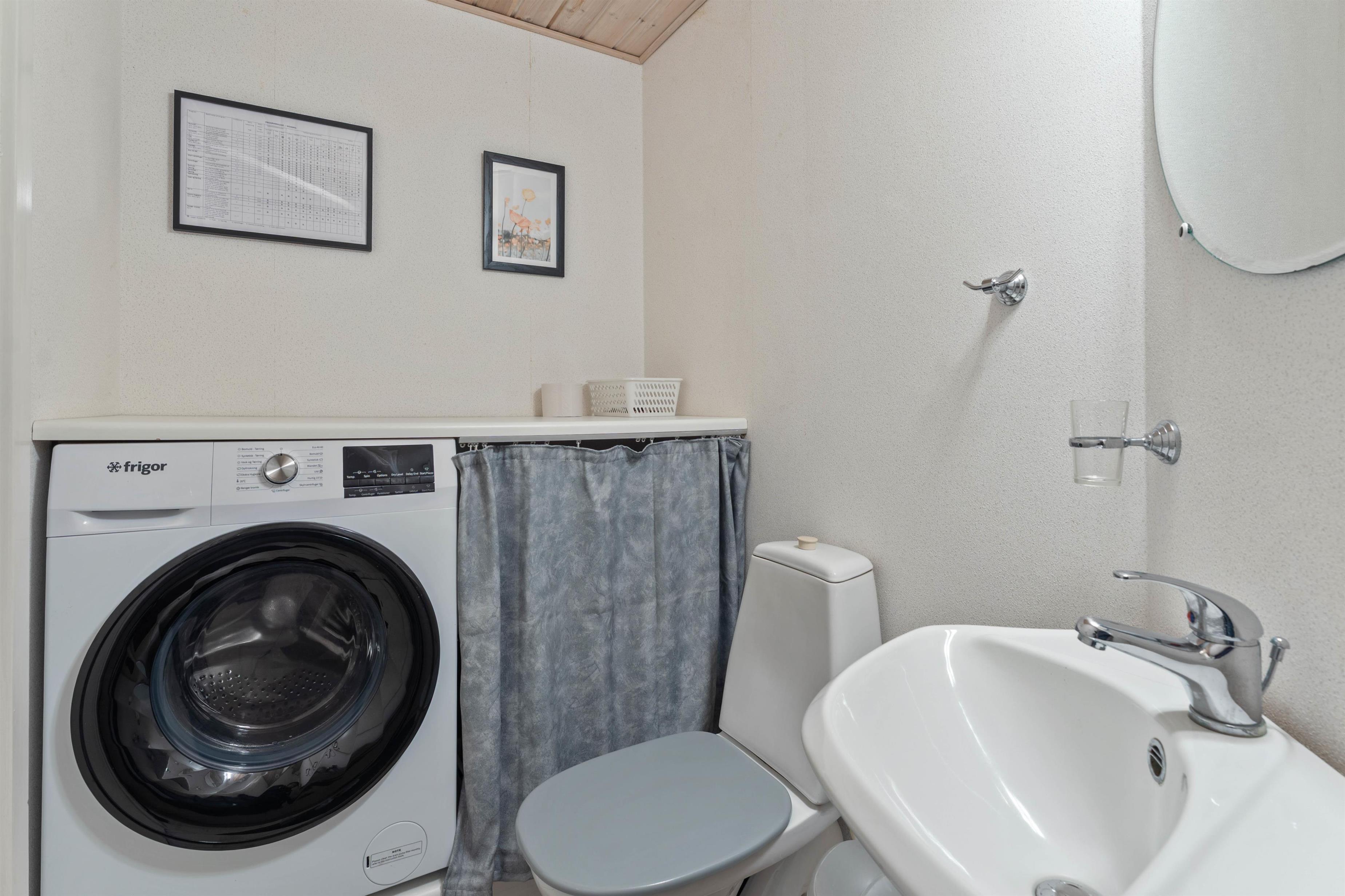 Det store badeværelse er udstyret med sauna og spa, som sørger for afslappende wellness-øjeblikke. Det ekstra gæstetoilet er særligt praktisk, så der ikke er ventetid.