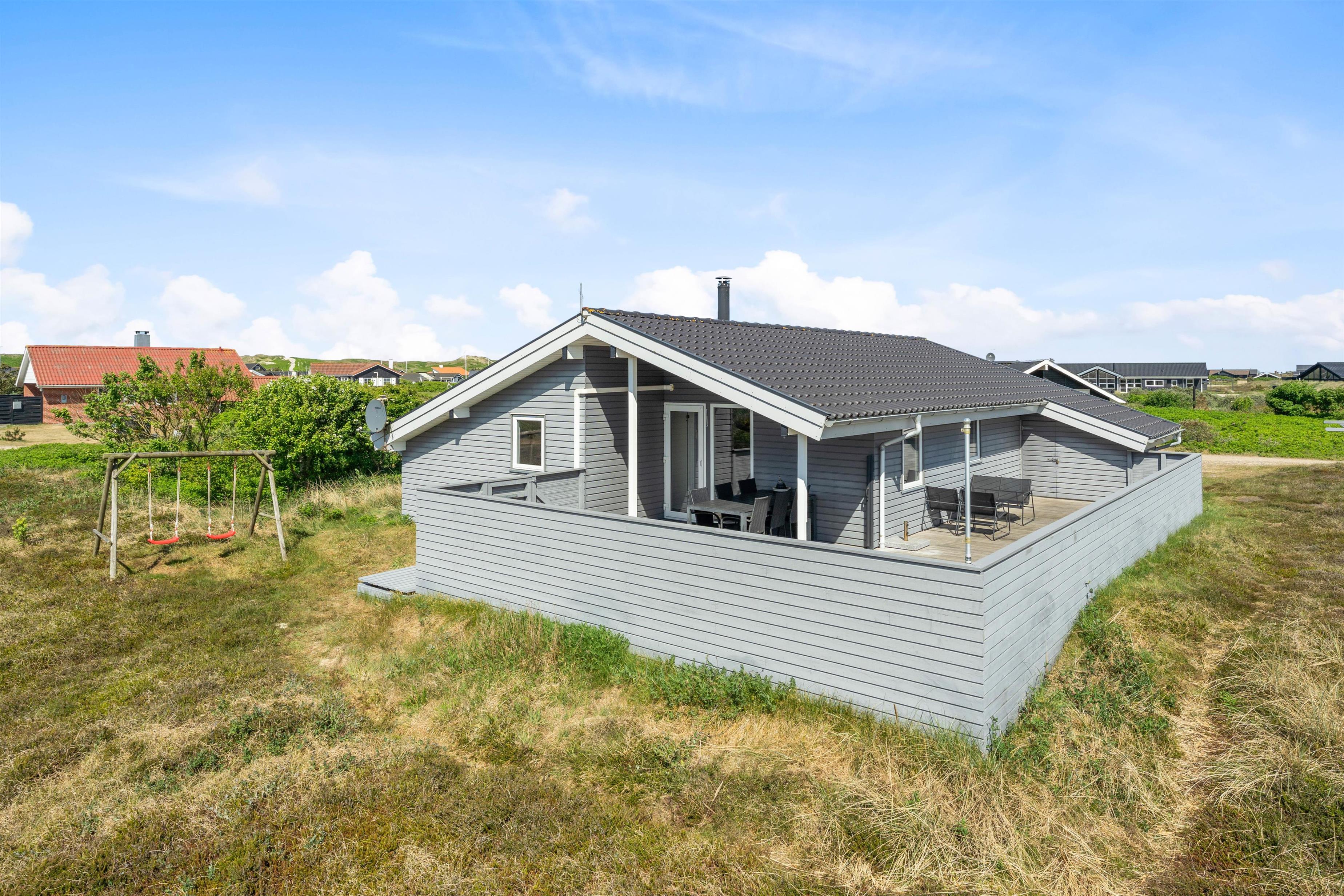 Feriehuset er beliggende i det sydlige Bjerregård, tæt på det naturbeskyttede hedeområde mellem Nymindegab og Bjerregård. Der er en smuk, lukket terrasse, som er udstyret med komfortable havemøbler og liggestole. Da terrassen er øst- og sydvendt, er den velegnet til både at nyde morgensolen og beundre de farverige solnedgange.