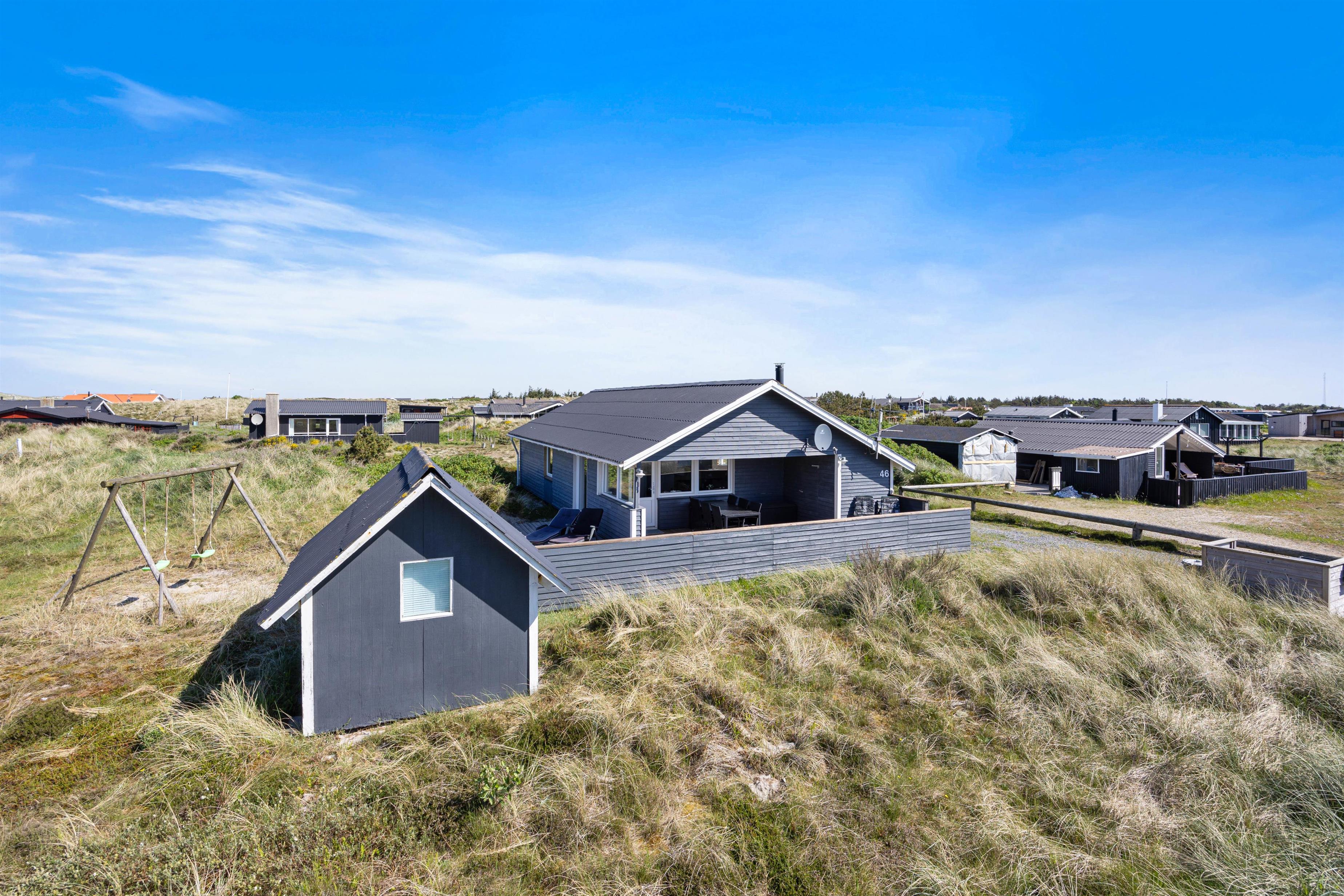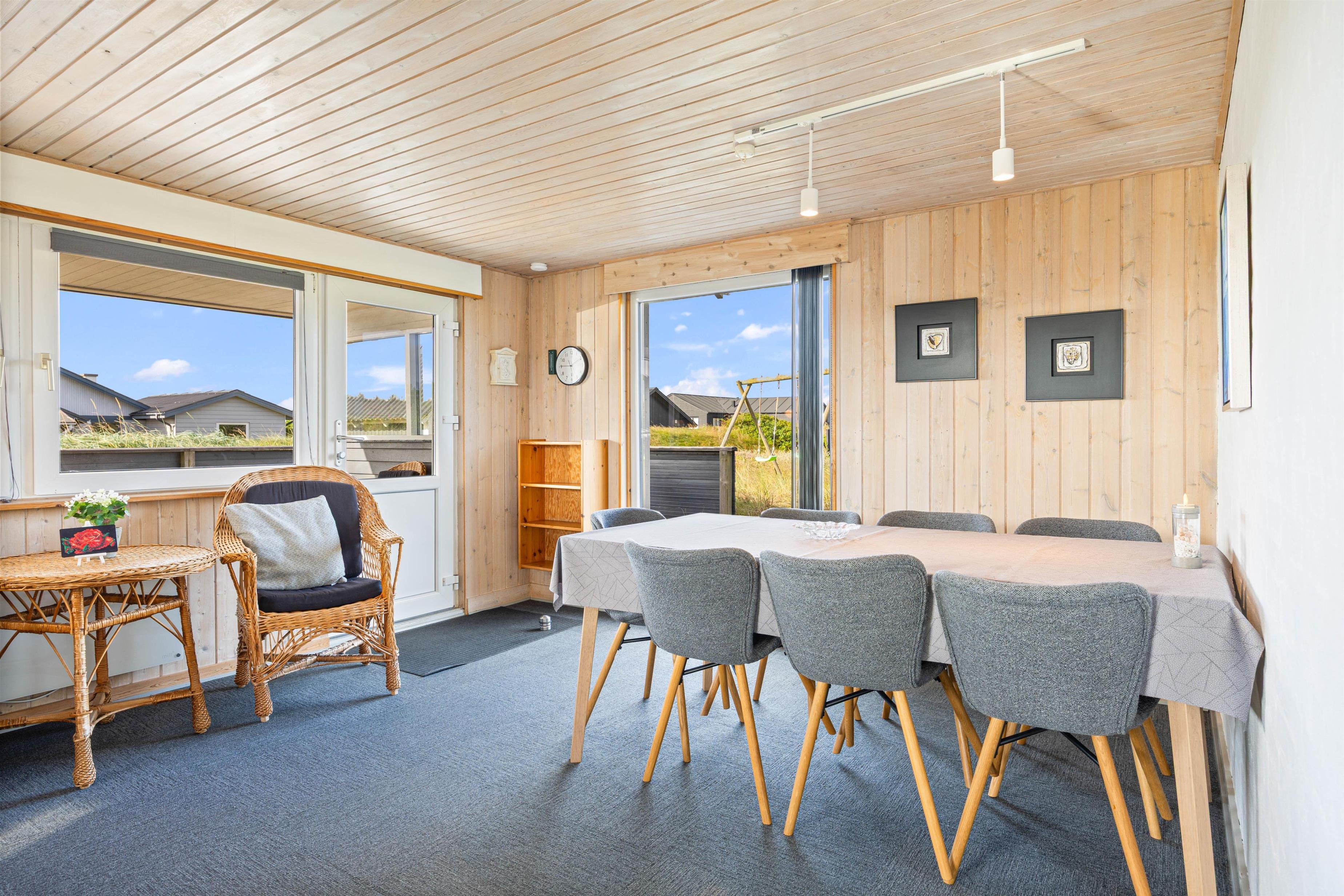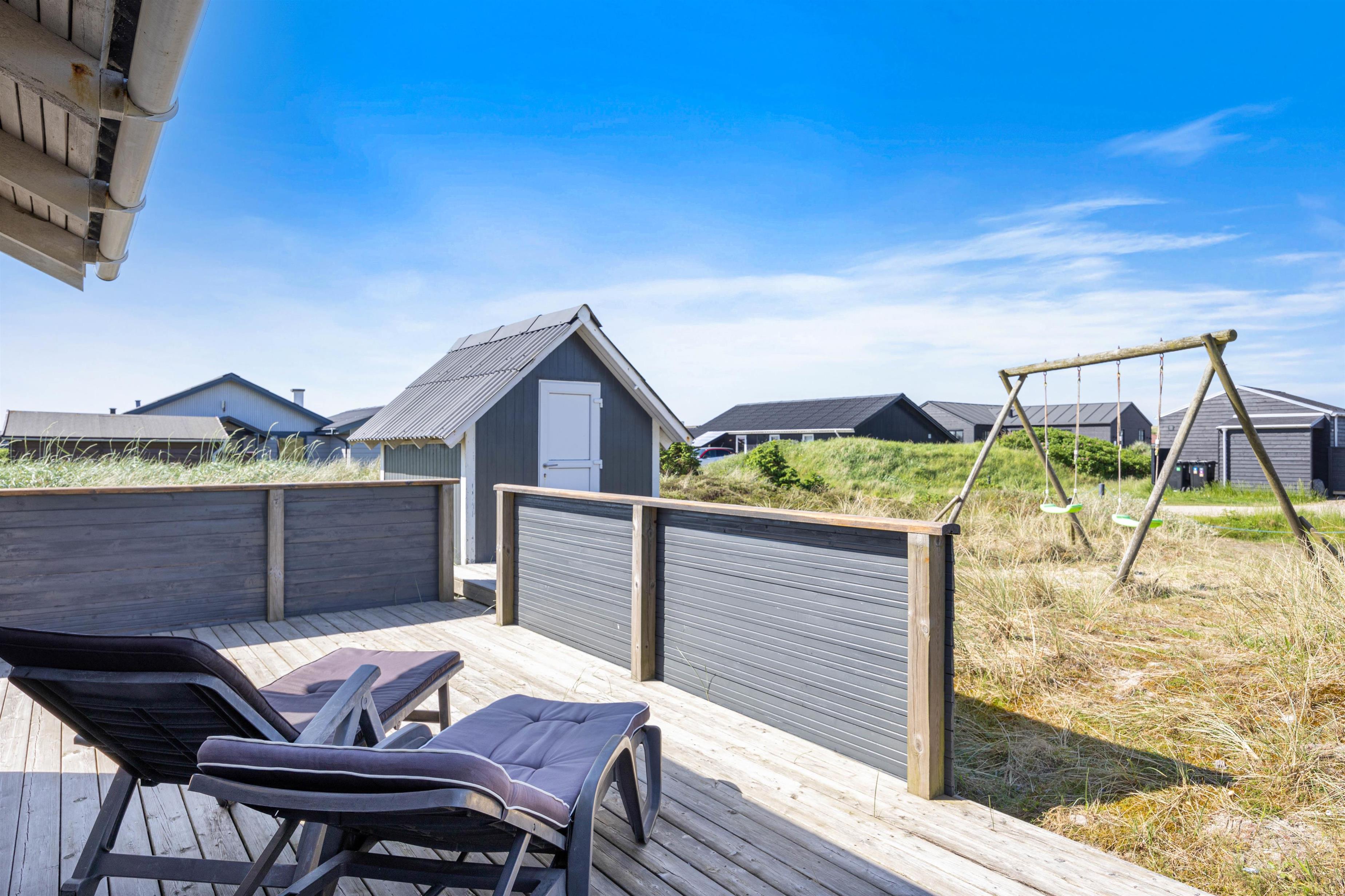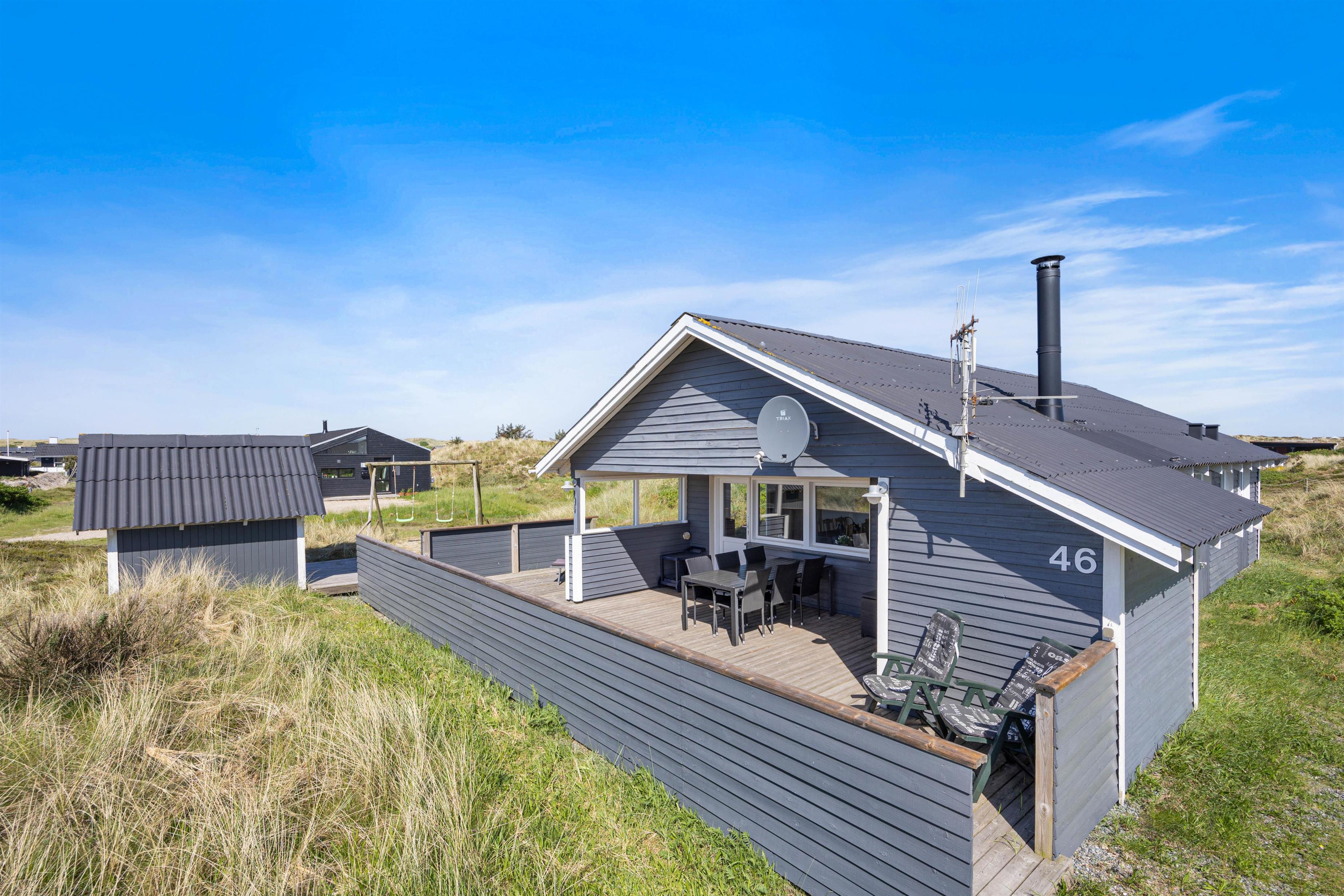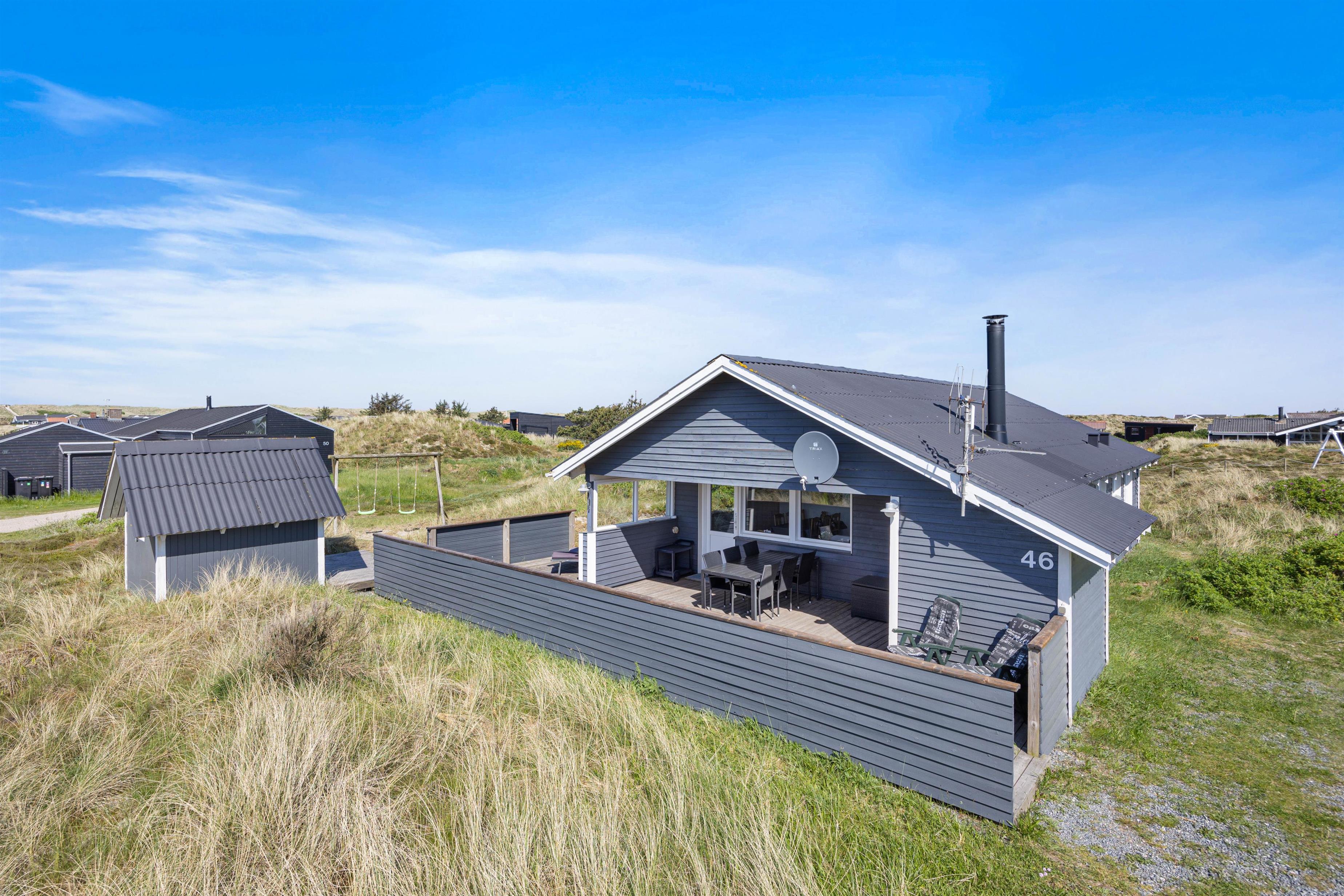 Dette dejlige sommerhus byder på en lys, venlig og funktionel indretning med plads til op til 6 personer. Det er særligt velegnet til børnefamilier, da der både er gyngestativ og sandkasse i haven, ligesom den store terrasse giver mulighed for masser af leg og afslapning. Sommerhuset er beliggende på en skøn naturgrund midt i den vestjyske natur, hvor klitter og sandstrand kun ligger få hundrede meter væk. Det betyder, at I altid har kort vej til en frisk dukkert, en gåtur langs Vesterhavet eller leg i det bløde sand – uanset om I er til afslapning eller aktivitet i det fri.