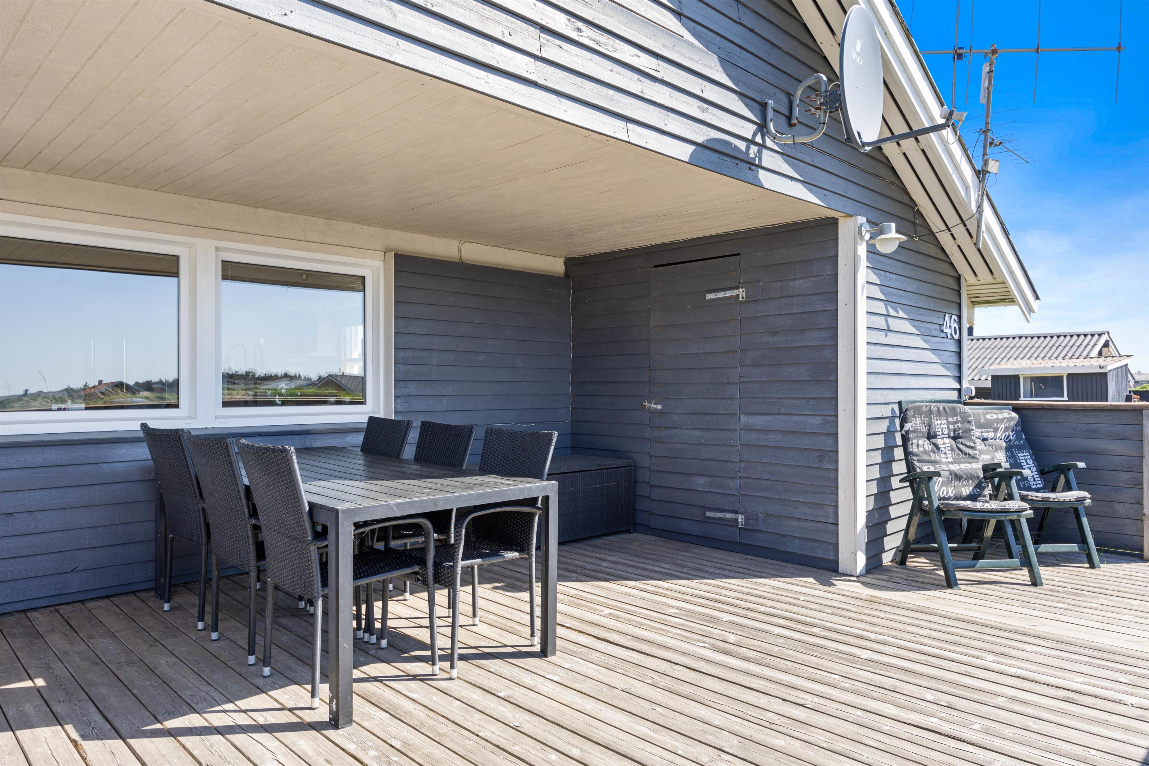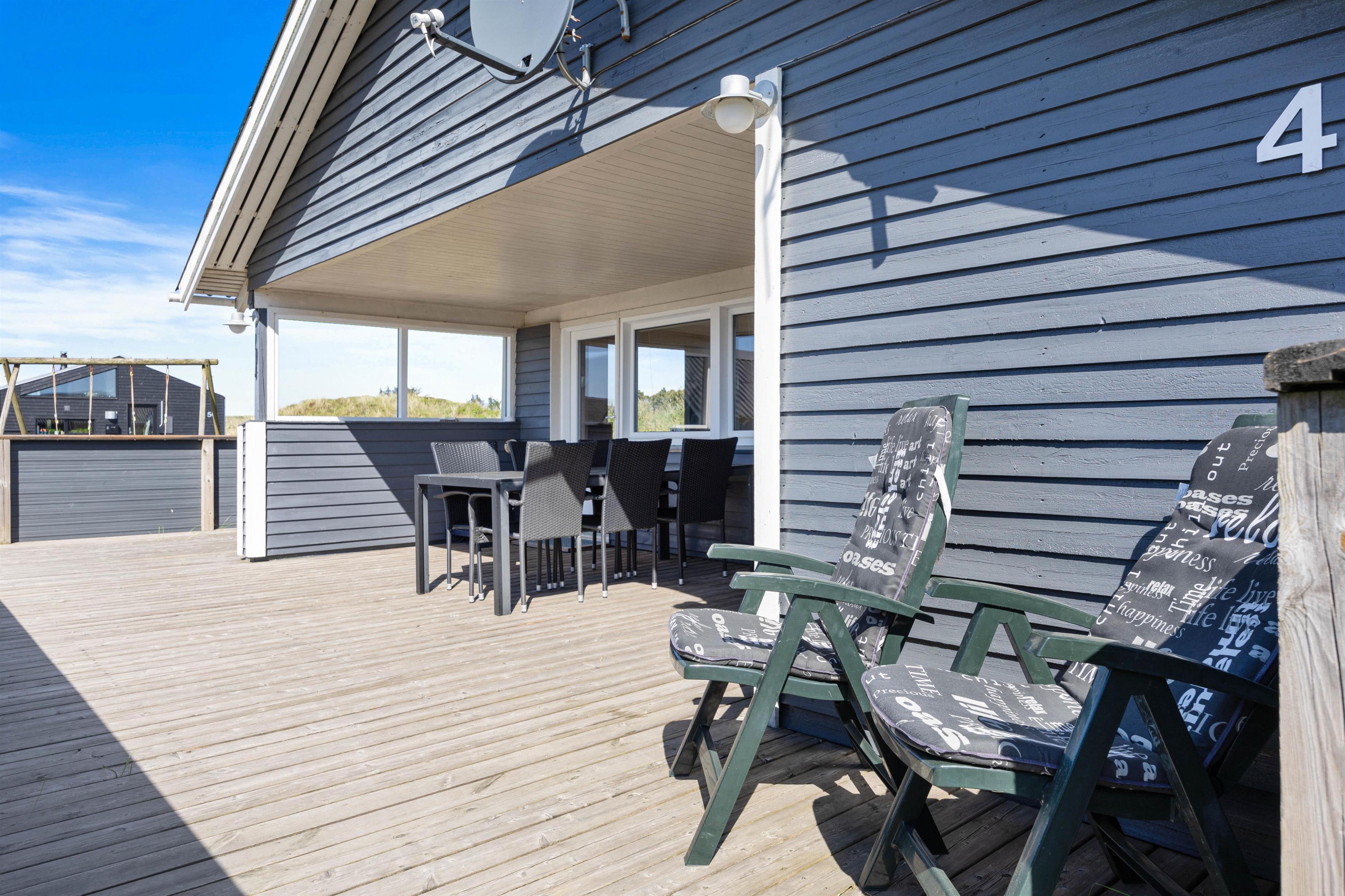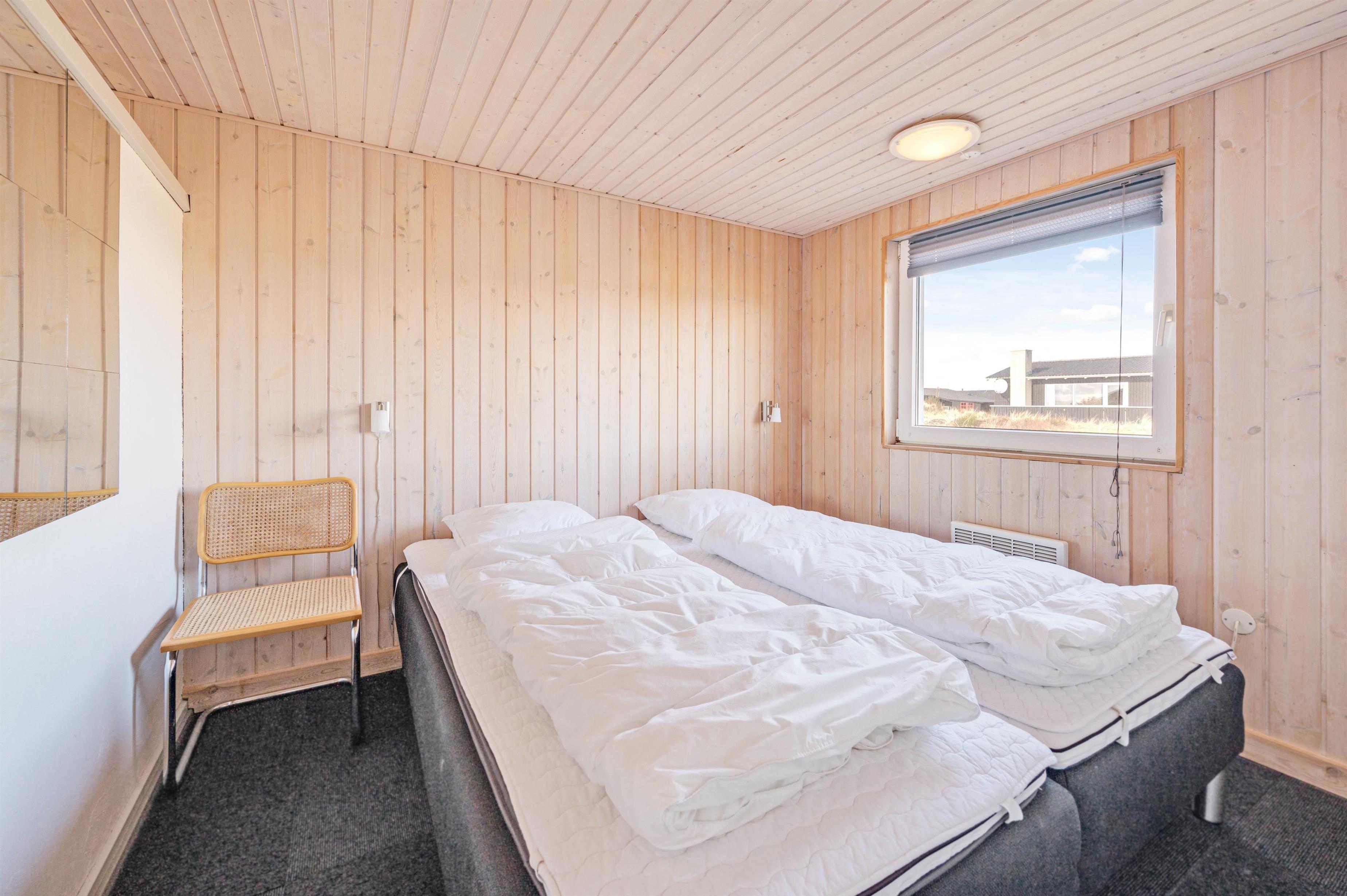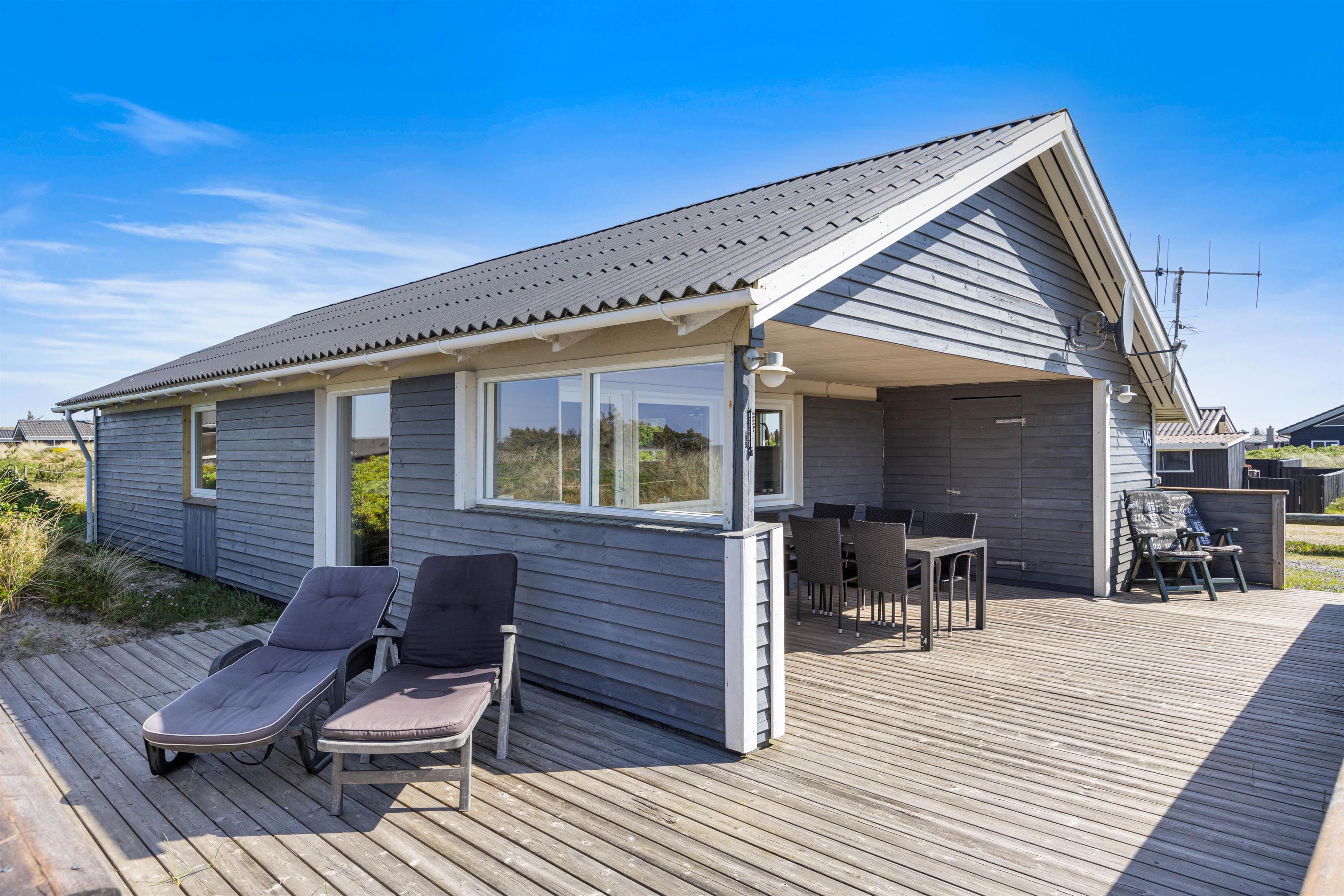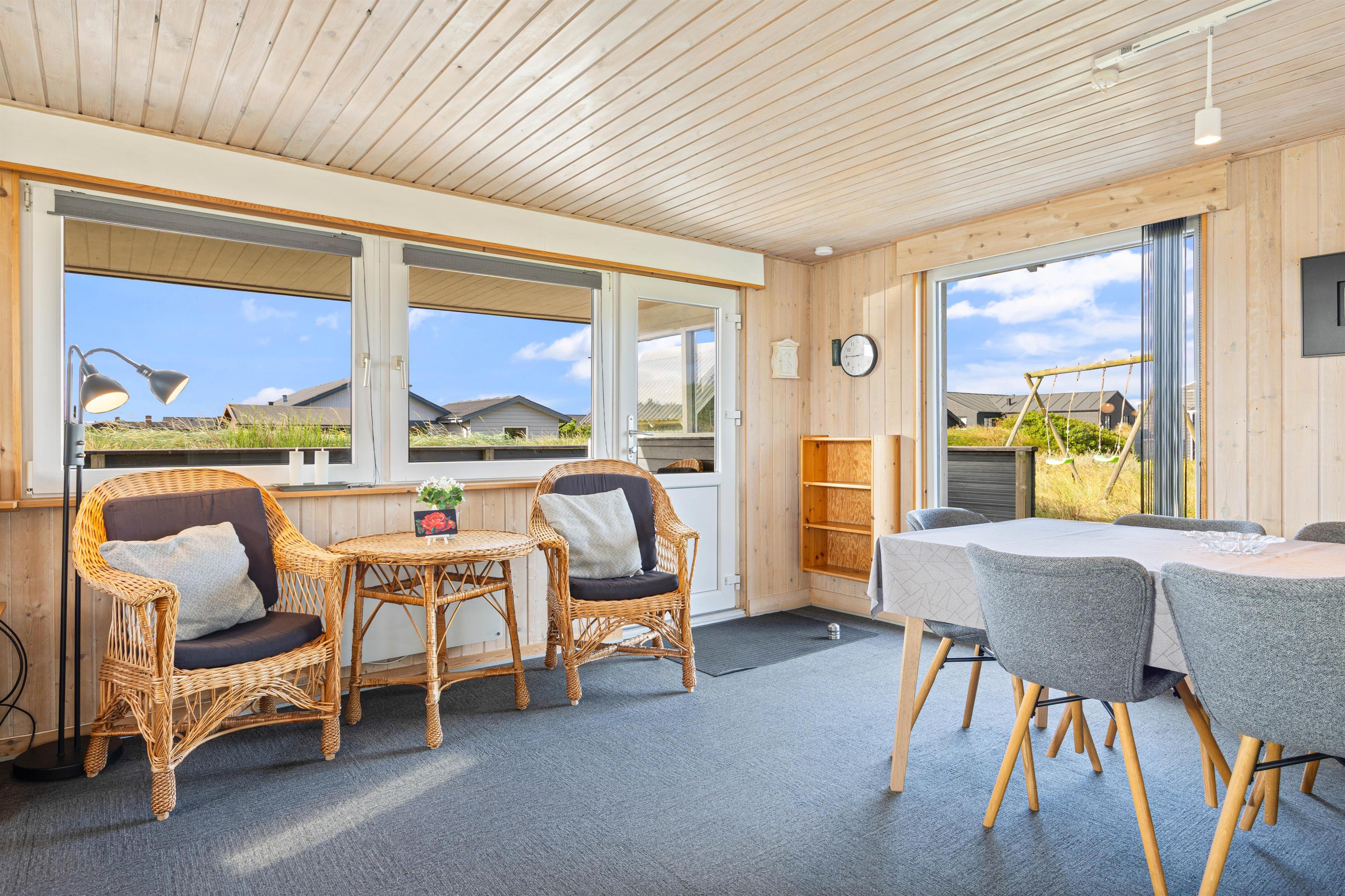 Dette dejlige sommerhus byder på en lys, venlig og funktionel indretning med plads til op til 6 personer. Det er særligt velegnet til børnefamilier, da der både er gyngestativ og sandkasse i haven, ligesom den store terrasse giver mulighed for masser af leg og afslapning. Sommerhuset er beliggende på en skøn naturgrund midt i den vestjyske natur, hvor klitter og sandstrand kun ligger få hundrede meter væk. Det betyder, at I altid har kort vej til en frisk dukkert, en gåtur langs Vesterhavet eller leg i det bløde sand – uanset om I er til afslapning eller aktivitet i det fri.