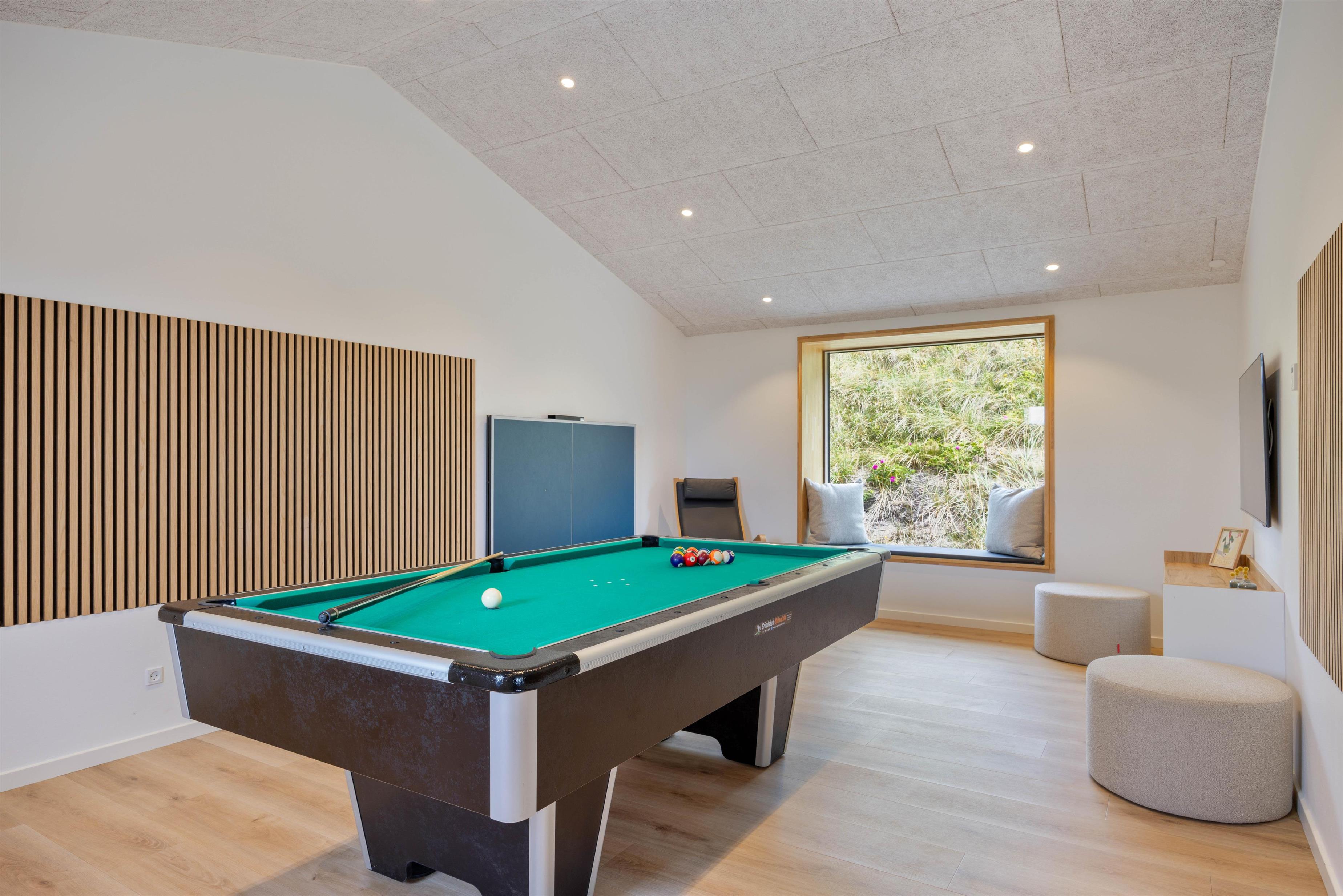 Dette skønne aktivitetssommerhus byder på masser af luksus og aktiviteter. Her bydes både på pool billard og bordtennis, til stor fornøjelse for store og små.