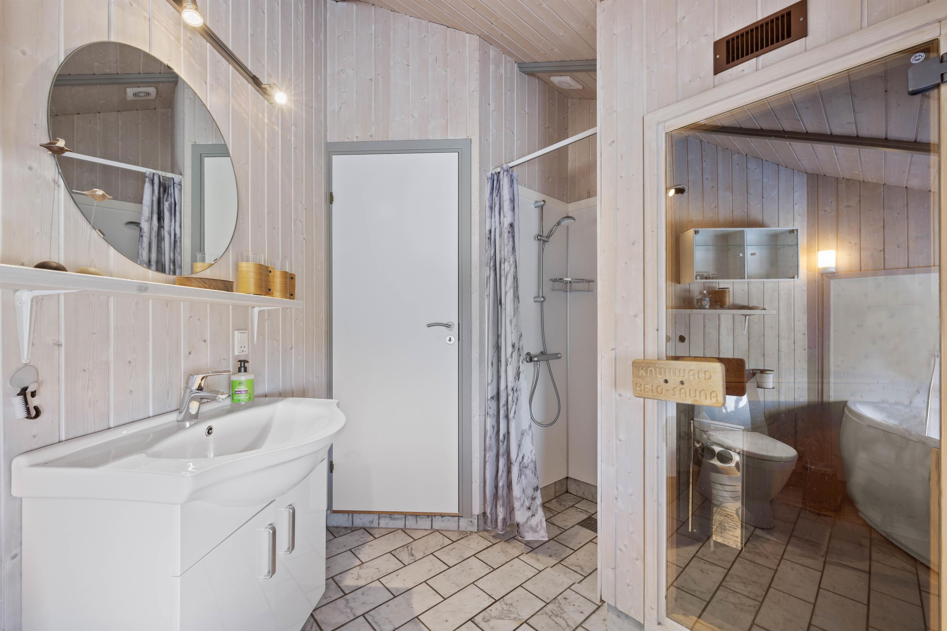 Du kan bekvemt friske tøjet op i sommerhusets vaskemaskine og en tørretumbler. I badeværelset er der gulvvarme, og du finder også en energibesparende varmepumpe i dette feriehus.