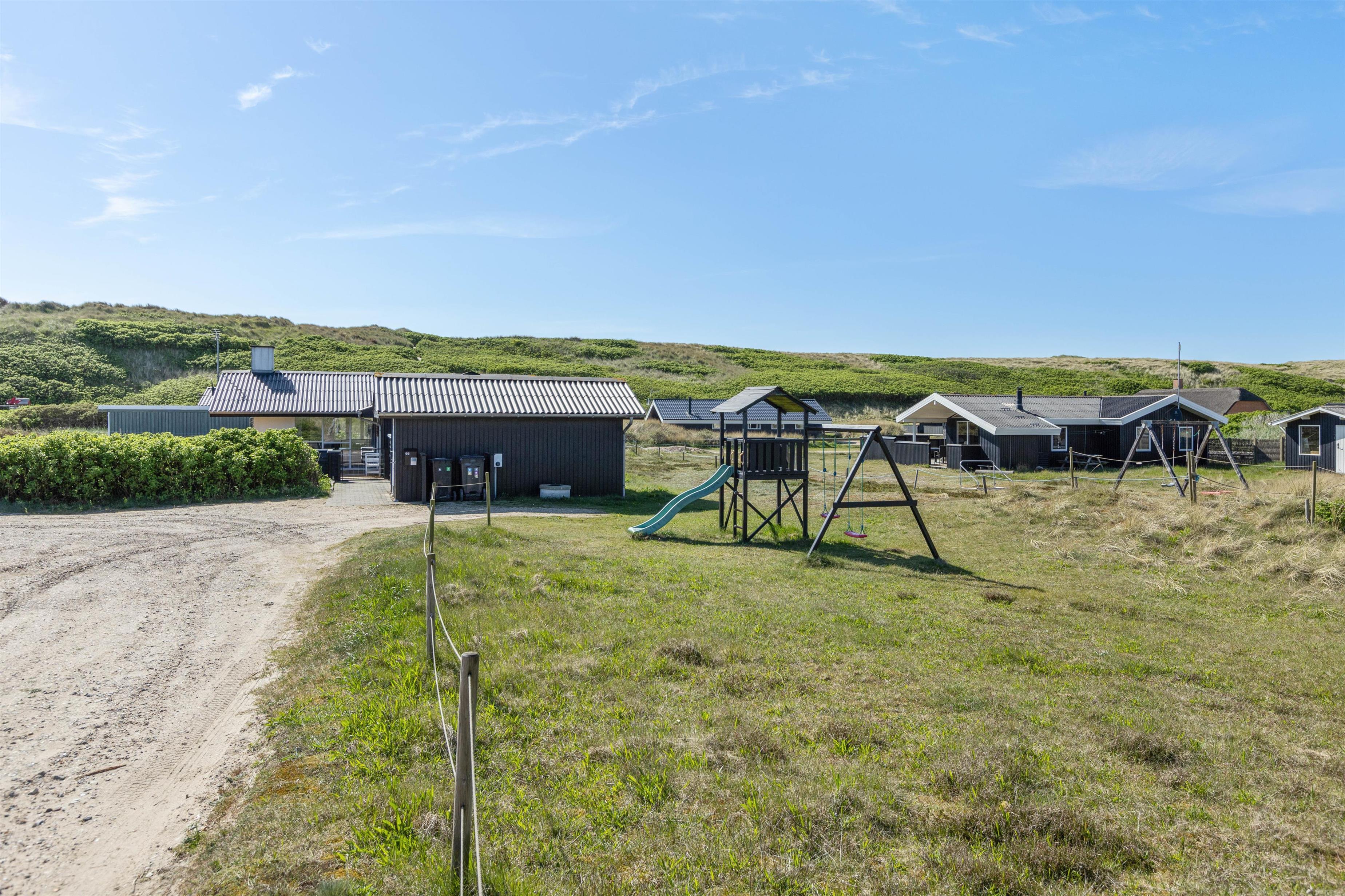 Til børnene er der en sandkasse og et gyngestativ med rutsjebane.