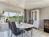 Sommerhusets stue ligger i åben forbindelse med køkkenet, så her er plads til hele familien. Der er blevet opsat et nyt køkken i 2023. Saml jer i det hyggelige sofahjørne til et spil kort, imens brændeovnen knitrer i baggrunden.