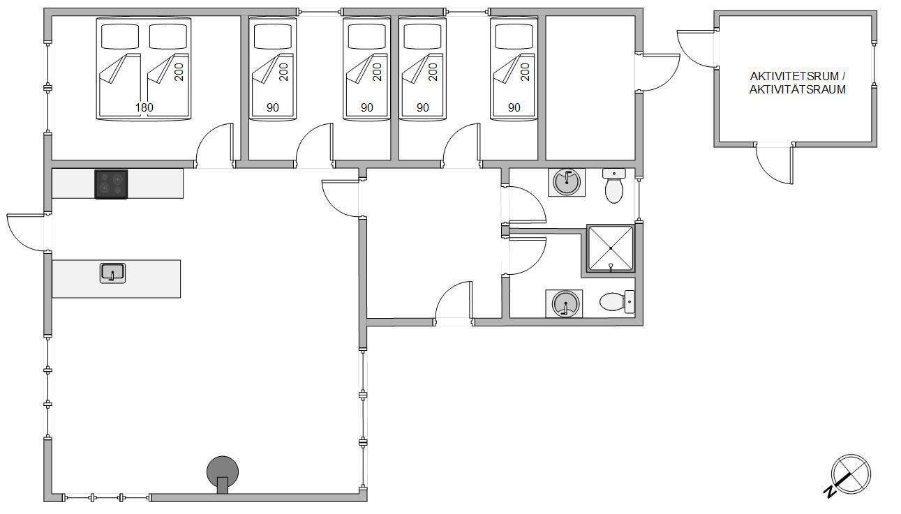 På en regnvejrsdag kan I blive underholdt i sommerhusets aktivitetsrum, som både byder på bordfodbold, air hockey og dart. Her kan hele familien få mange timer til at gå, og måske I kan holde nogle rigtig spændende turneringer.