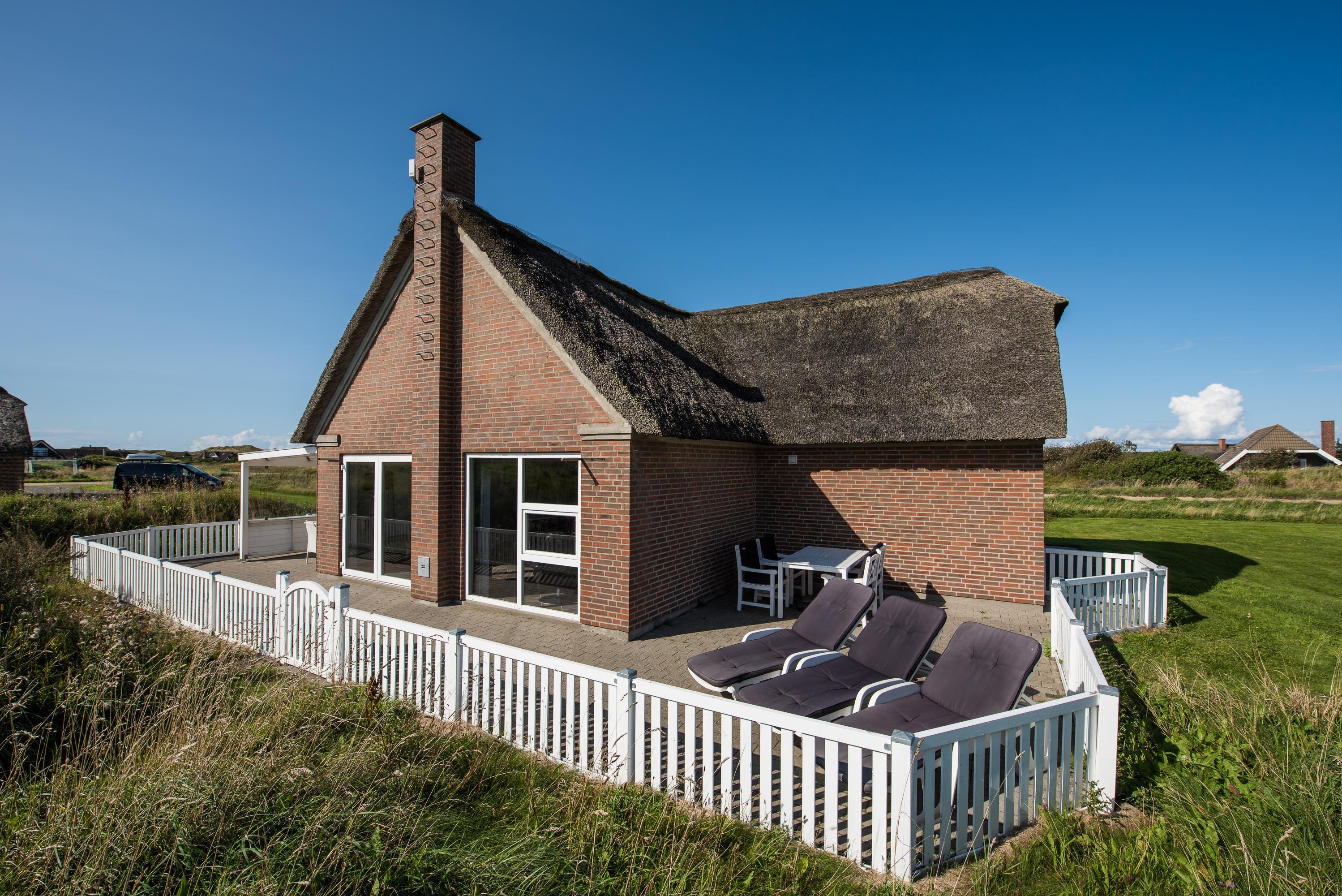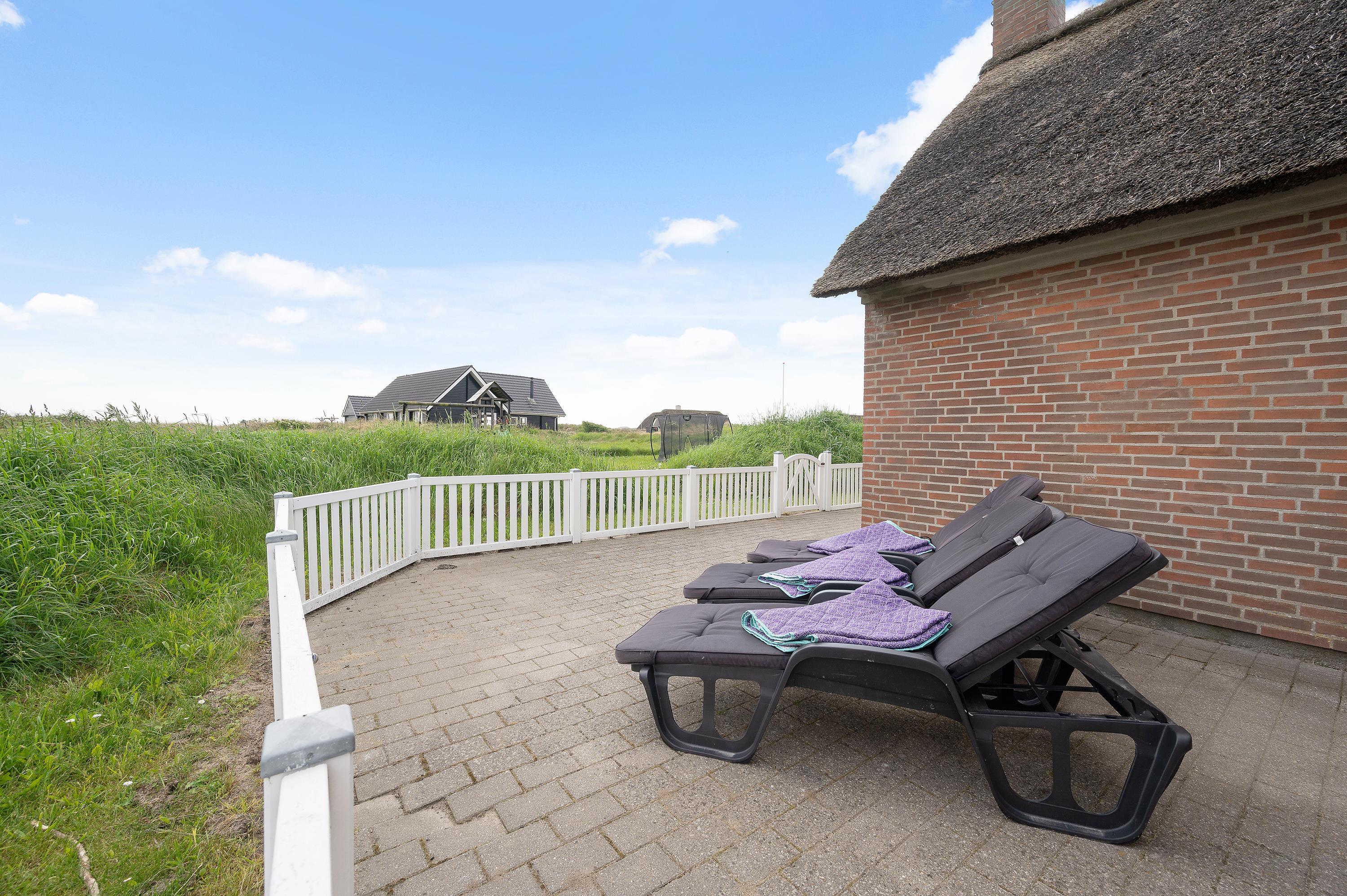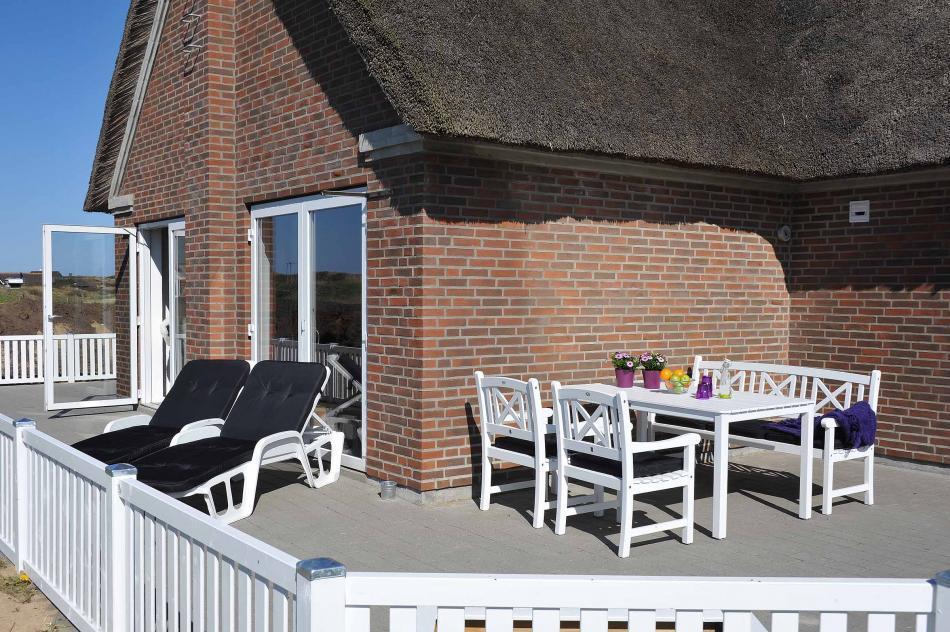 Det danske sommervejr kan være lunefuldt, men også her er der tænkt på disse dage. En super dejlig overdækket og afskærmet terrasse forlænger dine sommerdage og aftener. Her kan mange vidunderlige timer tilbringes med hygge og spisning. Terrassen omkring huset er lukket, så din hund/hunde frit kan gå ind og ud af sommerhuset.