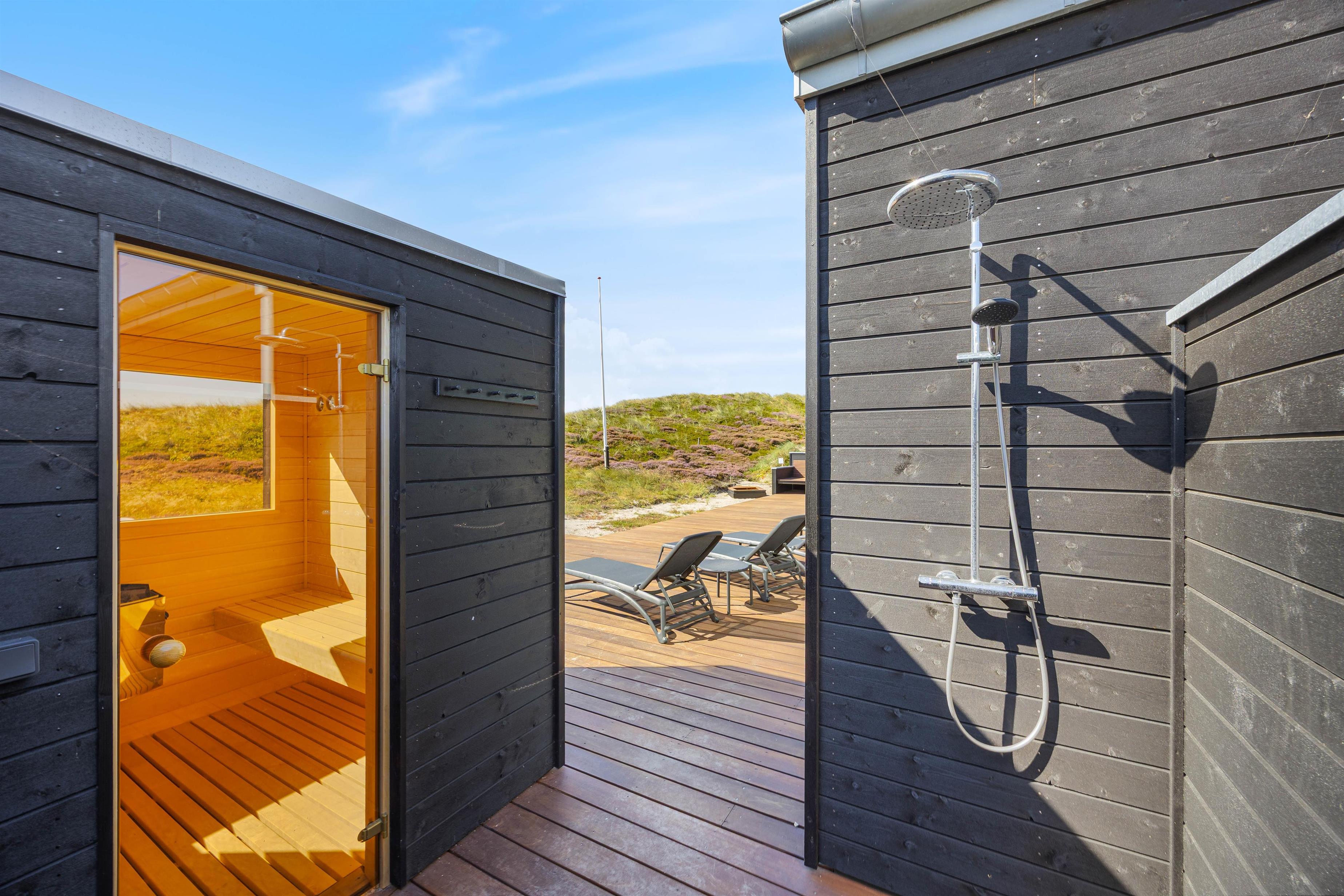 Efter en dag ved stranden, som kun ligger 250 meter fra sommerhuset, kan I skylle sandet af under udendørsbruseren og tænde op i grillen til en hyggelig middag. Udebruseren kan benyttes fra april til november.