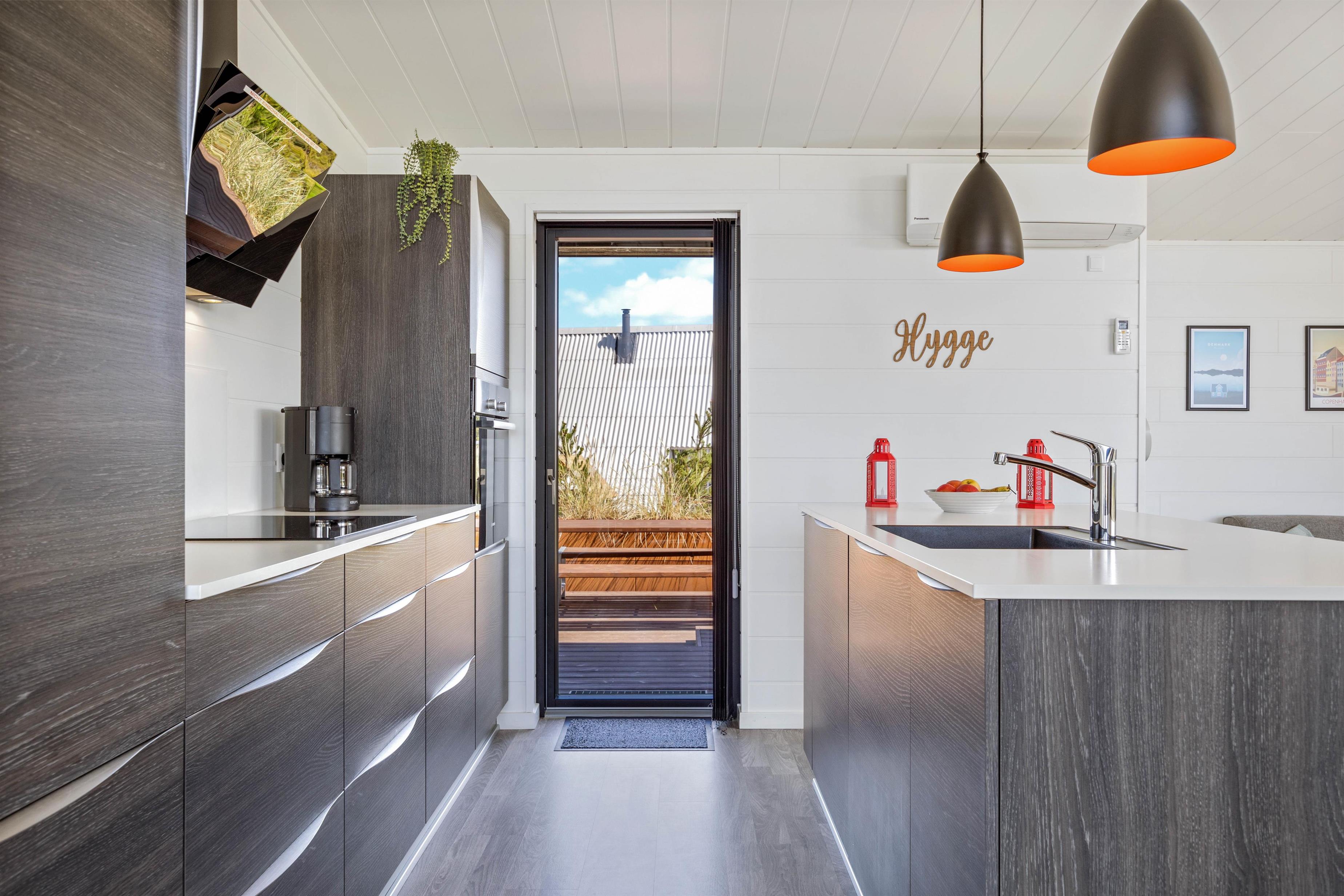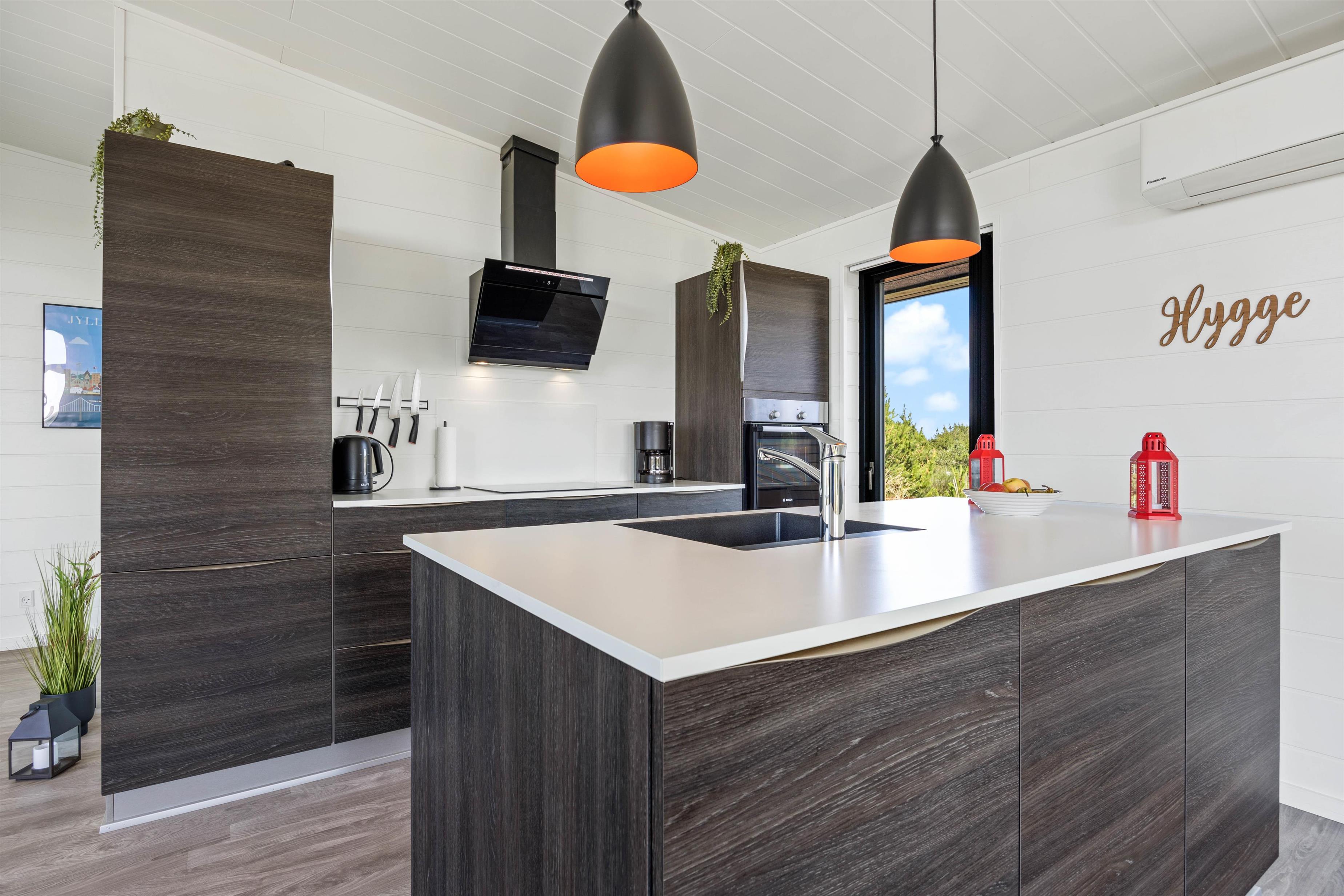 I sommerhuset venter en moderne, gennemført og hyggelige indretning - det bedste grundlag for en afslappende ferie. Nyd aftenen med den omfangende varme fra brændeovnen, hør den knitrende lyd fra træet og få et par hyggelige timer, inden natten falder på.