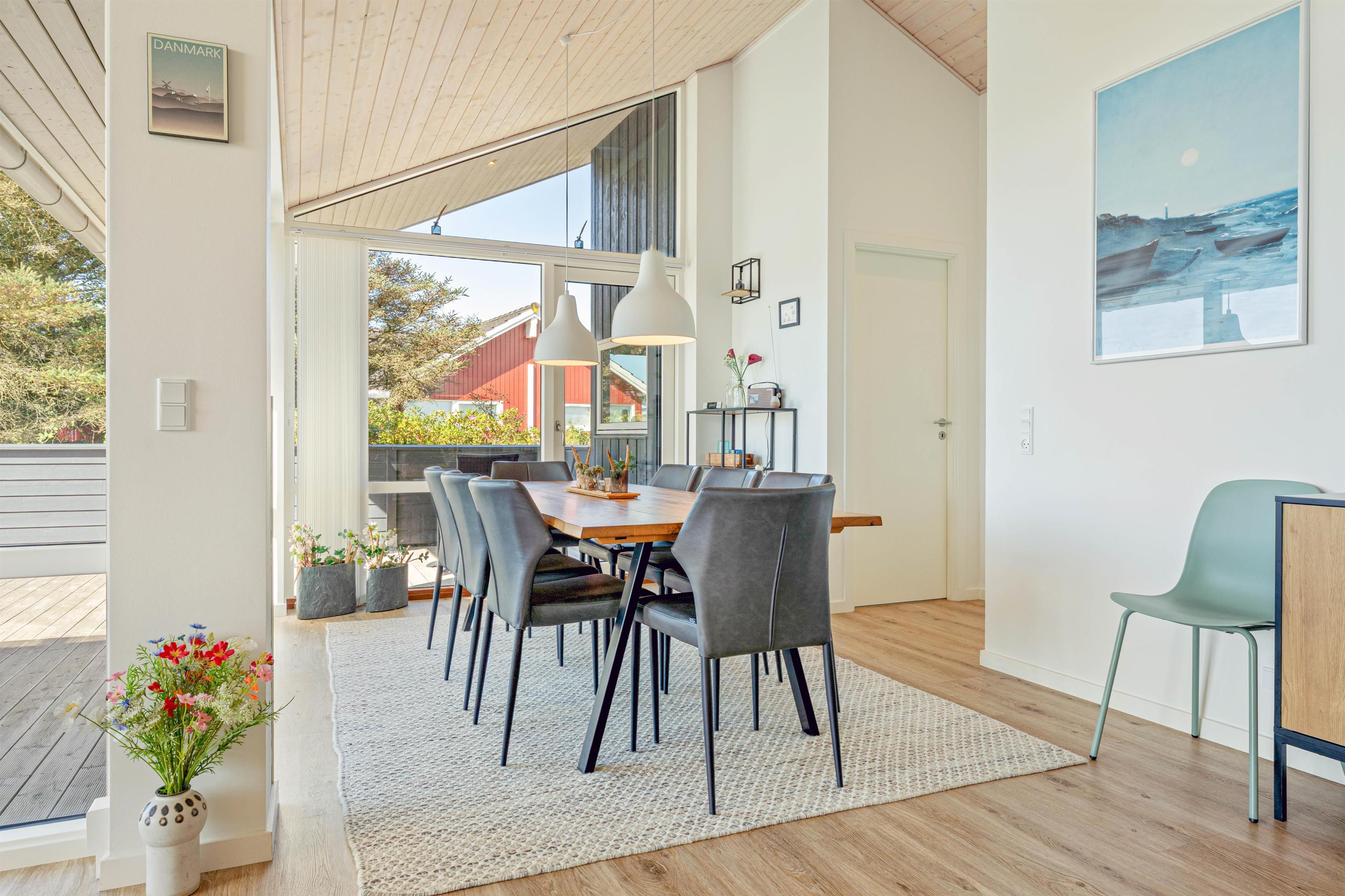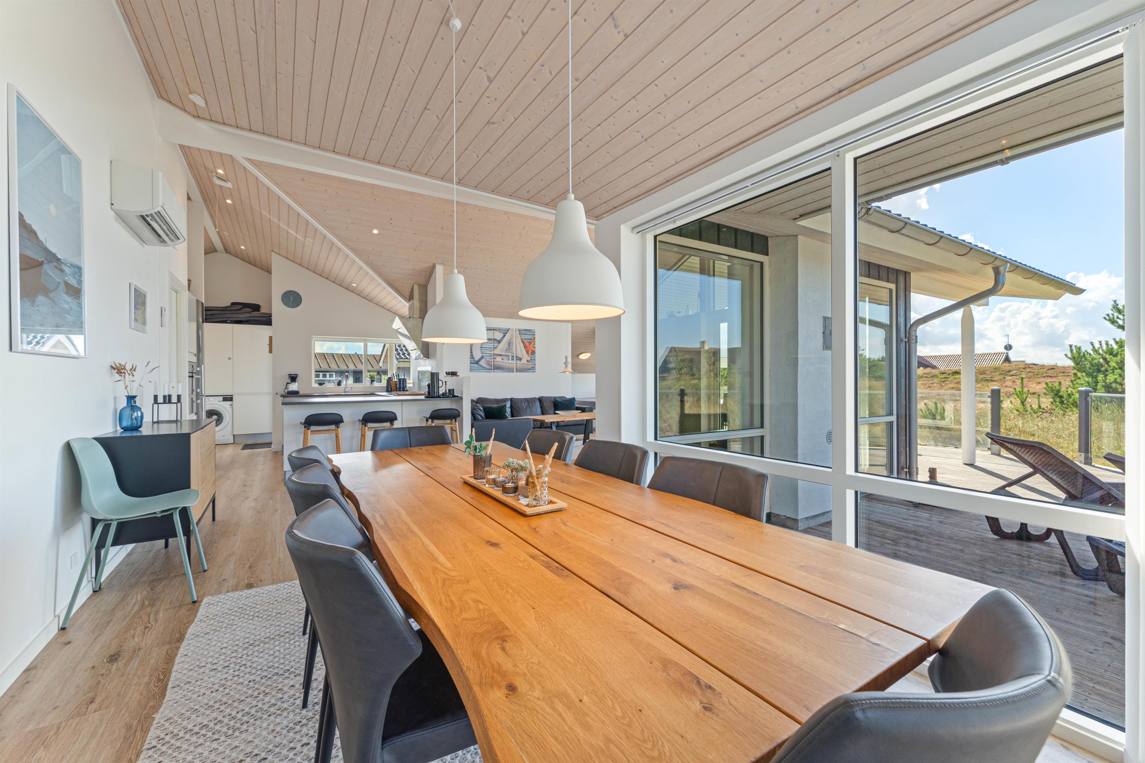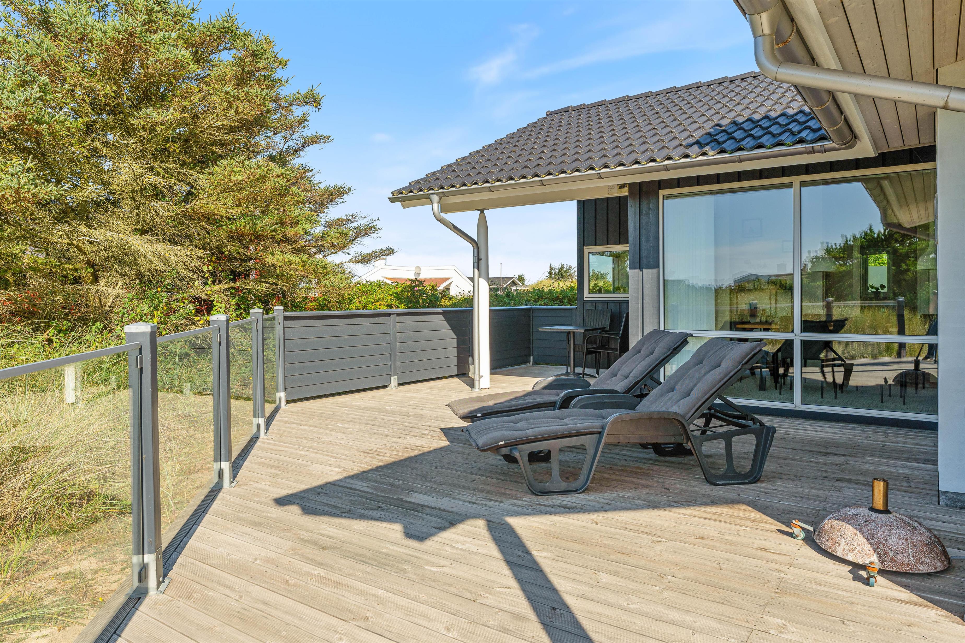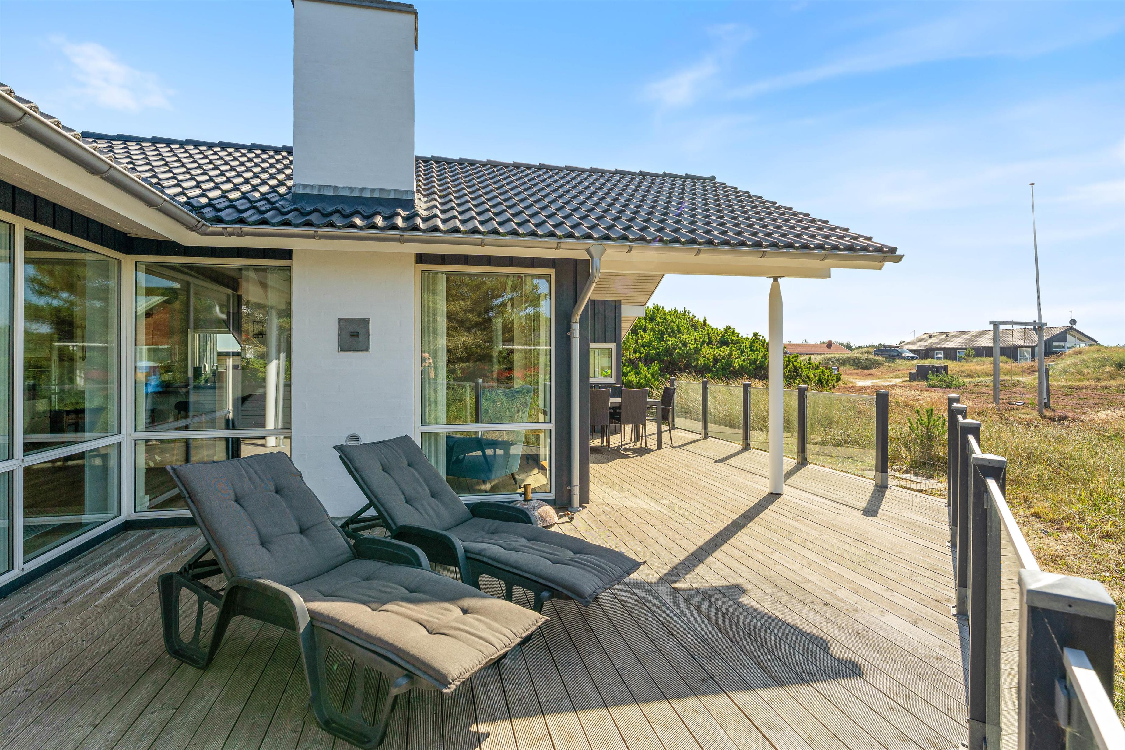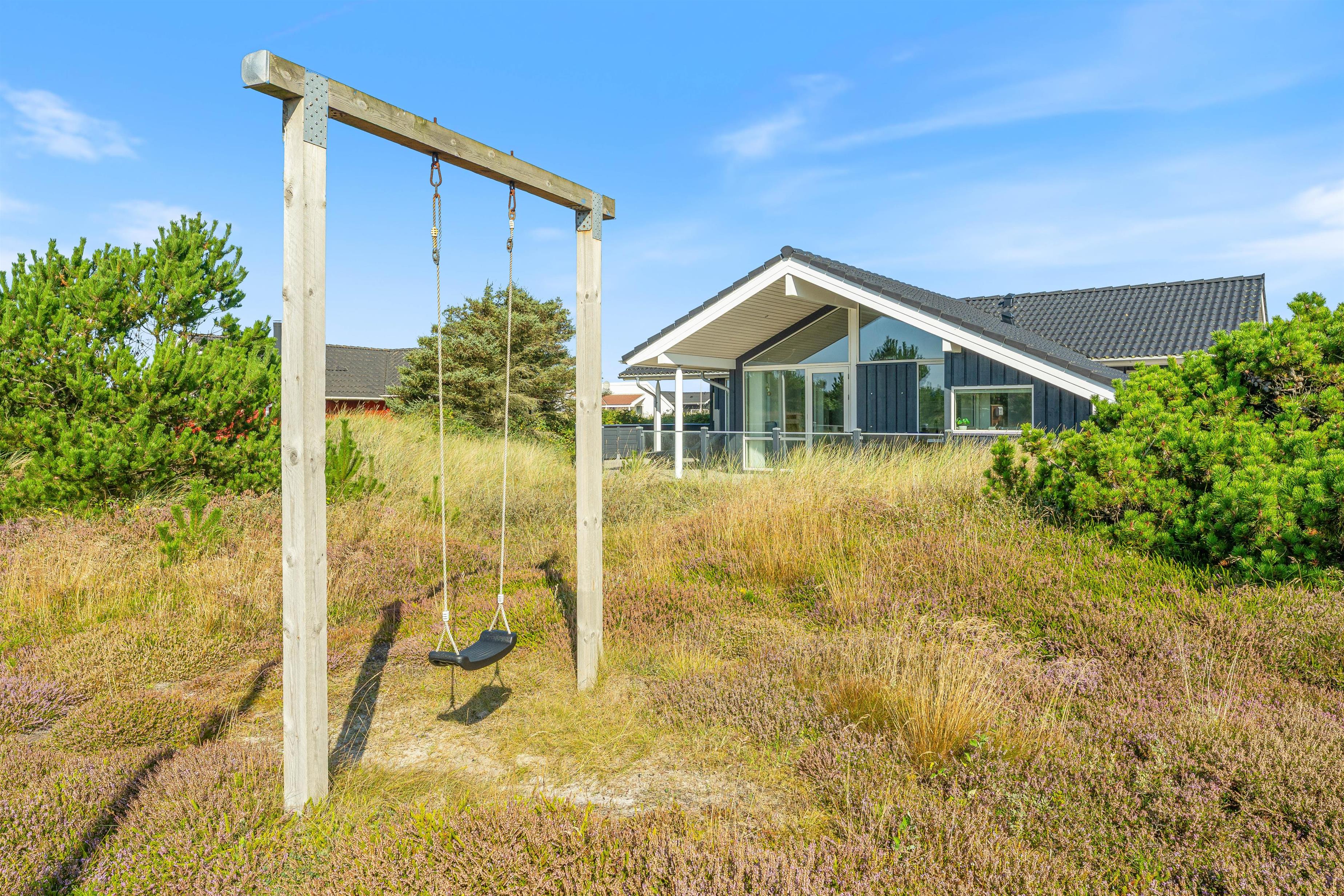 Her er alle muligheder for en hyggelig grillaften på terrassen en lun sommeraften – imens børnene gynger og leger i sandkassen. Ekstra bonus er solnedgangen over klitterne, som kan nydes fra terrassen, hvor den overdækkede del er med til at forlænge ”ude-sæsonen”. Terrassen er næsten lukket - og med mulighed for at lukke helt af, så man roligt kan lade børnene lege frit på terrassen.