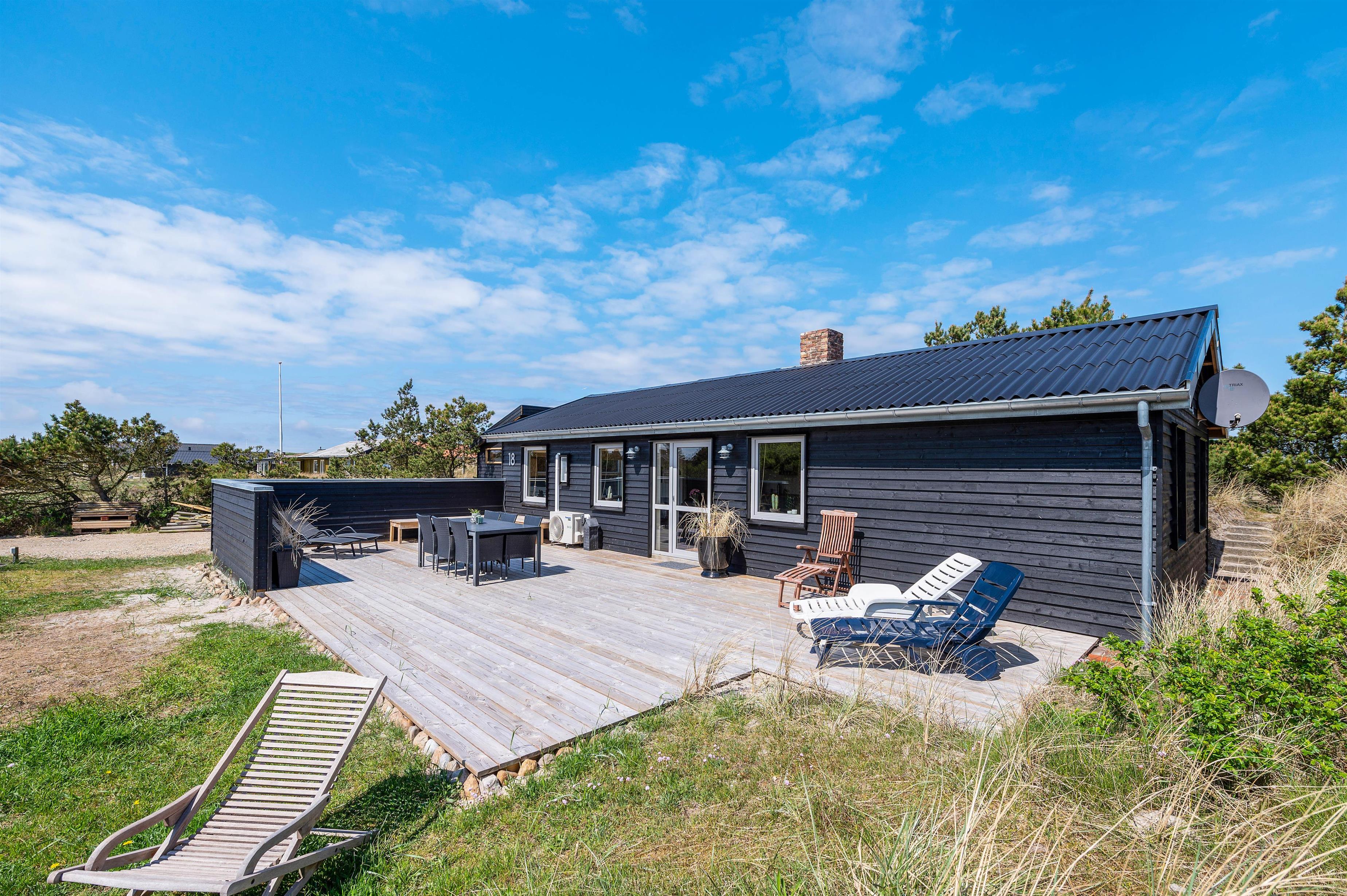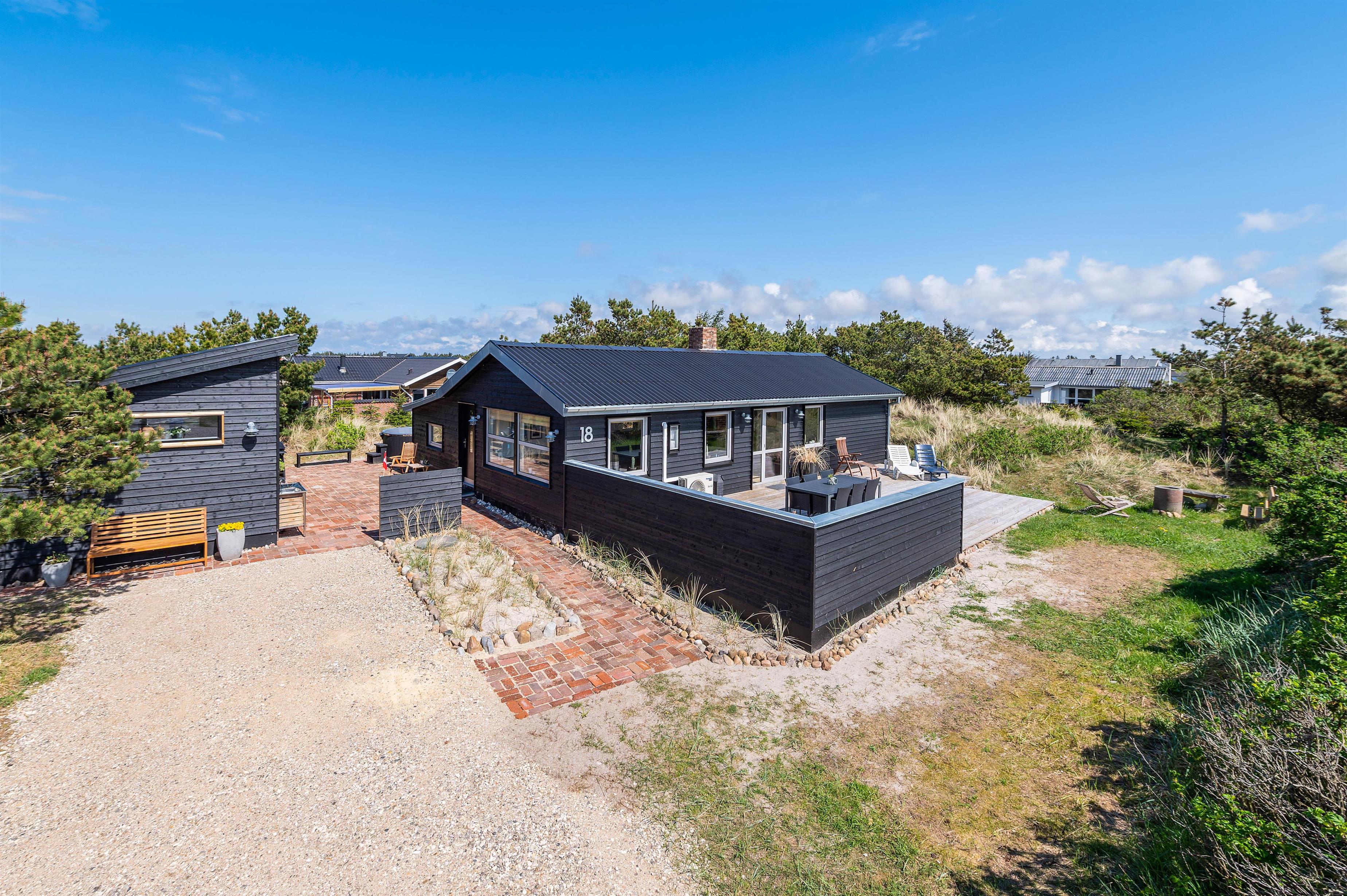 Dette hyggelige sommerhus på Rauhesvej 18 er et oplagt valg til jeres næste familieferie, hvis I ønsker en dejlig afslappende ferie i fantastiske omgivelser. Her er en skøn overdækket og afskærmet terrasse, som indbyder til mange hyggelige stunder med familien. Efter en god dag på stranden kan I hoppe en tur i vildmarksbadet, som er den perfekte afslutning på dagen. Har I hund, så er den også hjertelig velkommen i feriehuset.