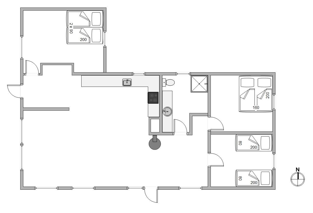I det komfortabelt og moderne indrettede sommerhus ligger køkkenet i åben forbindelse med stuen, hvor hele familien kan samles om brændeovnen til en hyggelig aften. Her er også plads til at læse en god bog eller spille et spil med resten af familien.