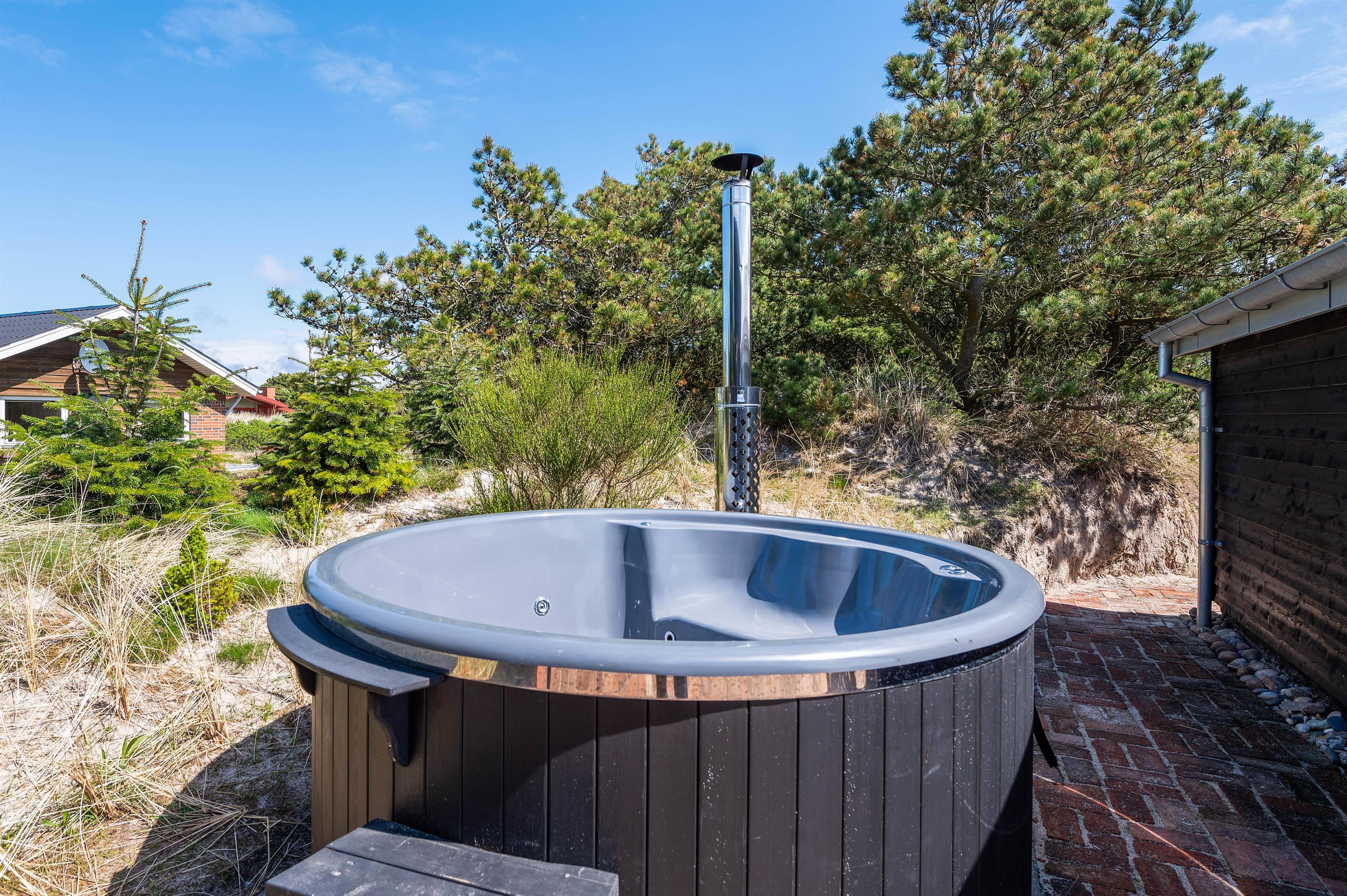 Hvis det danske sommervejr skulle blive for varmt, så har I mulighed for en kølig tur under den udendørs bruser (kan benyttes fra april til november). Til aften kan I tænde op for vildmarksbadet og nyde en afslappende stund med udsigt til den smukke stjernehimmel.