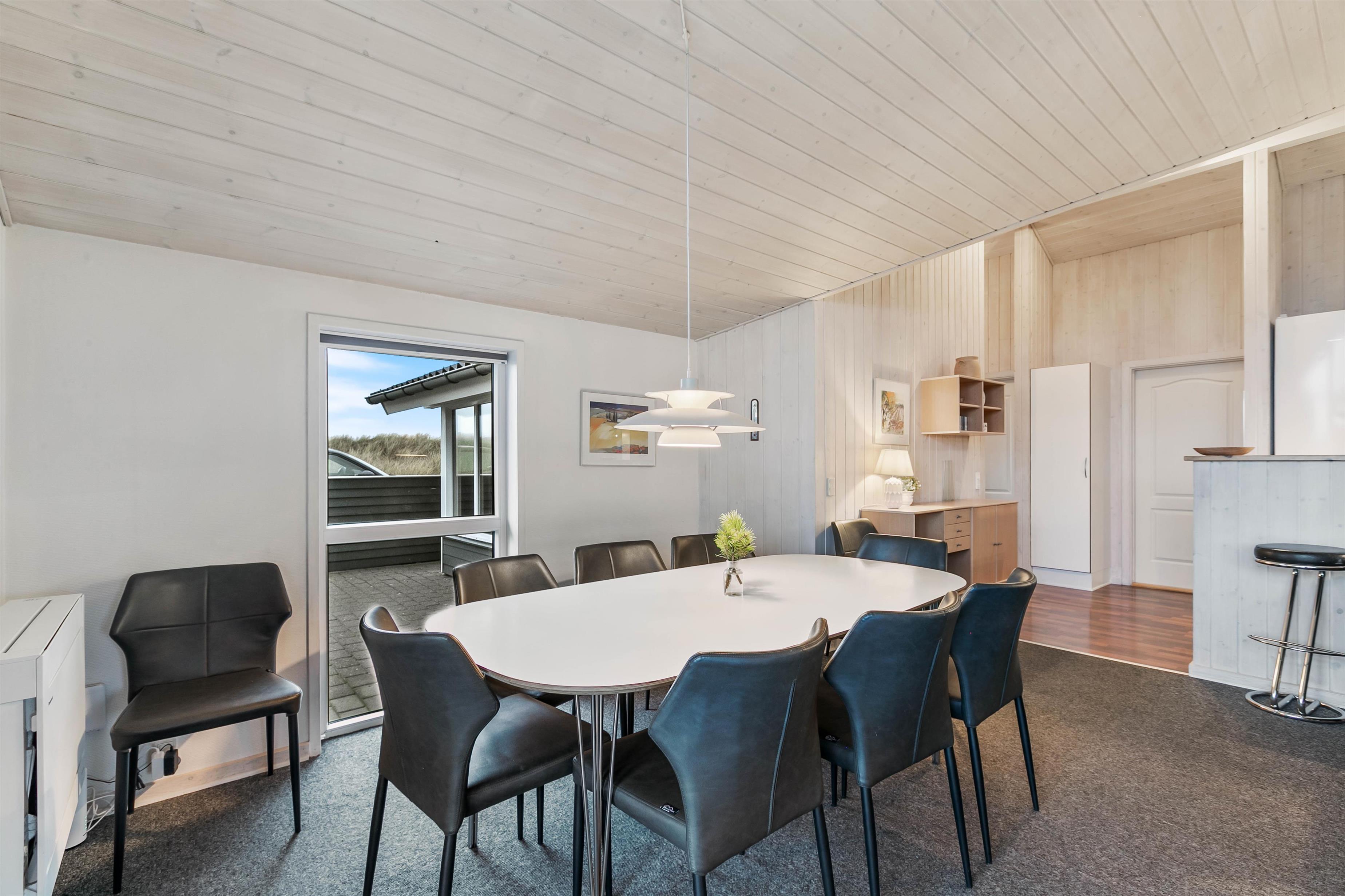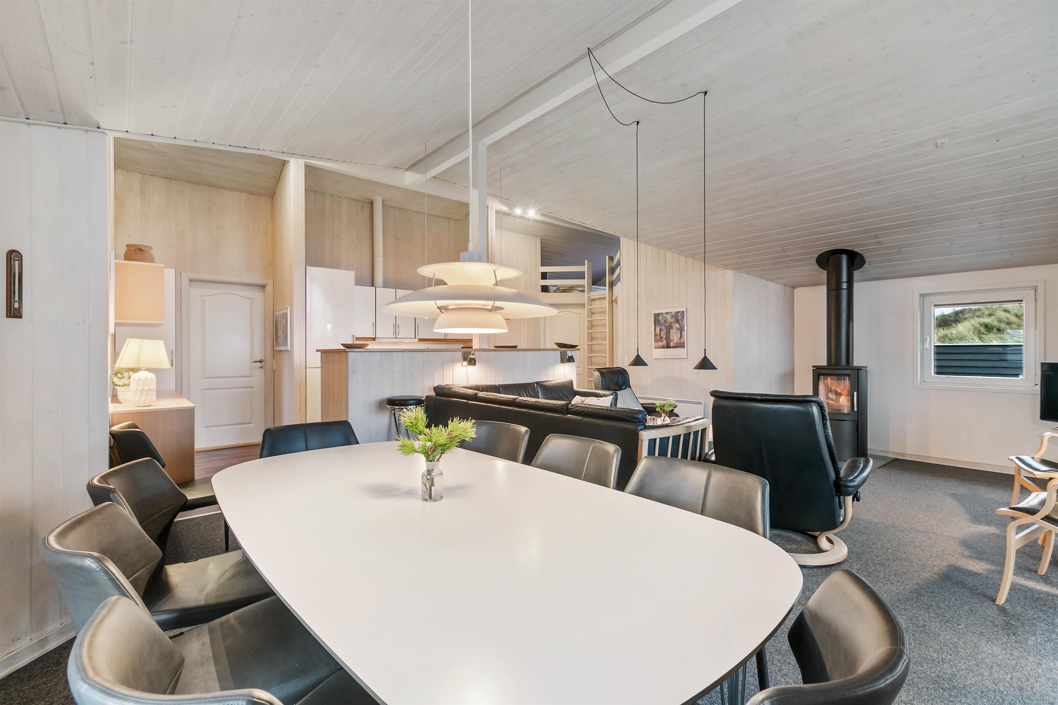 Her har I mulighed for at holde ferie i et feriehus tæt på stranden i Vestjylland. Sommerhuset er rummeligt og velindrettet, så det egner sig til den store familie på op til 10 personer. På det store badeværelse er der både sauna og et spabad til 6 personer. Derudover er der gode afskærmede og delvist overdækkede terrasser til hyggelige grillaftener.