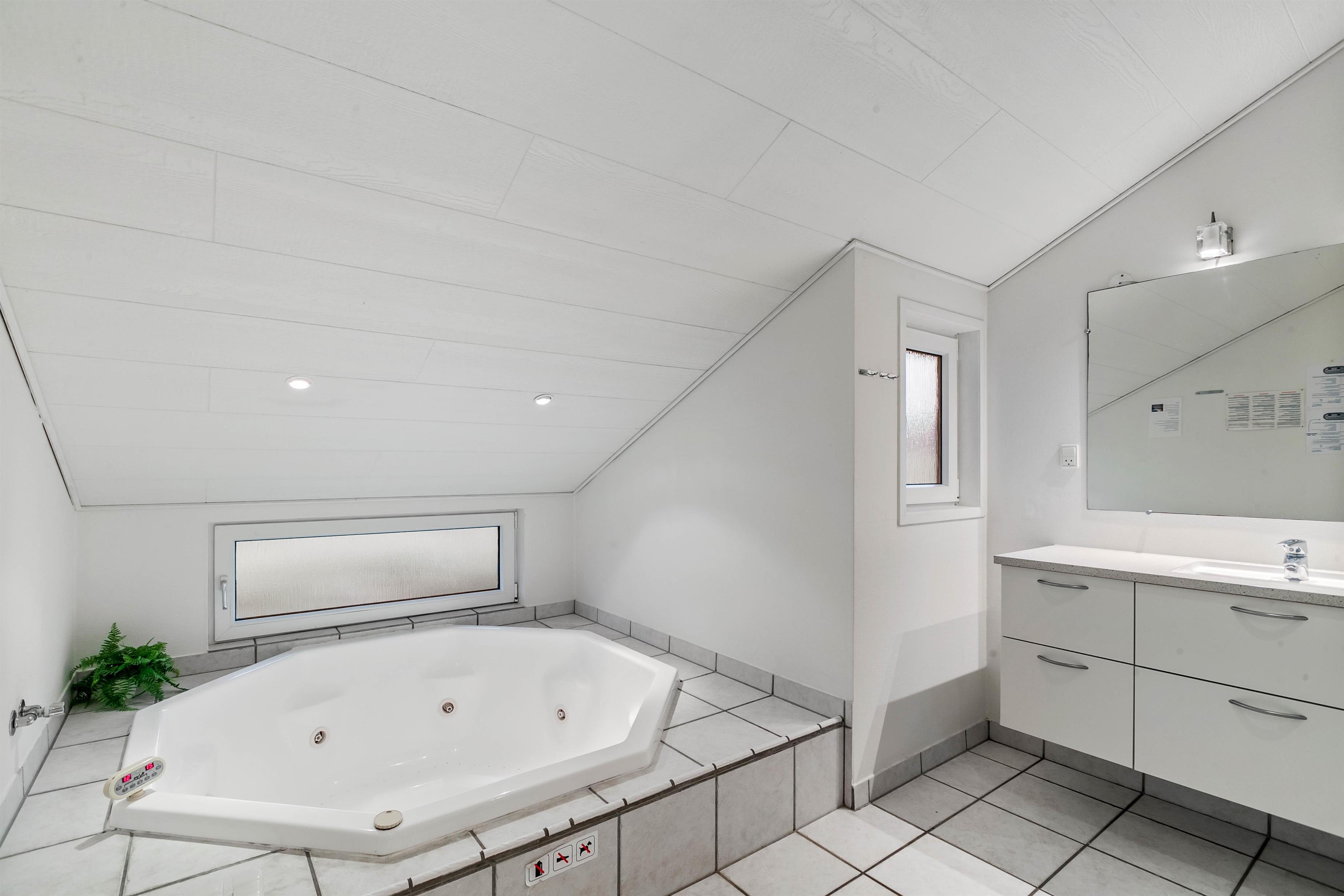 For optimal afslapning står det store 6 personers standvandsspa og den rummelige sauna til rådighed i wellness-afdelingen, som I finder på det ene badeværelse. Som et ekstra plus er der nemlig 2 badeværelser i sommerhuset, så der ikke opstår kø om morgenen. Der er gulvvarme på begge badeværelser, og I sommerhuset finder i desuden både vaskemaskine og tørretumbler.
