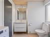 På sommerhusets badeværelse finder I indagngen til egen sauna, hvor I rigtig kan slappe af og nyde varmen efter en frisk gåtur ved vandet.