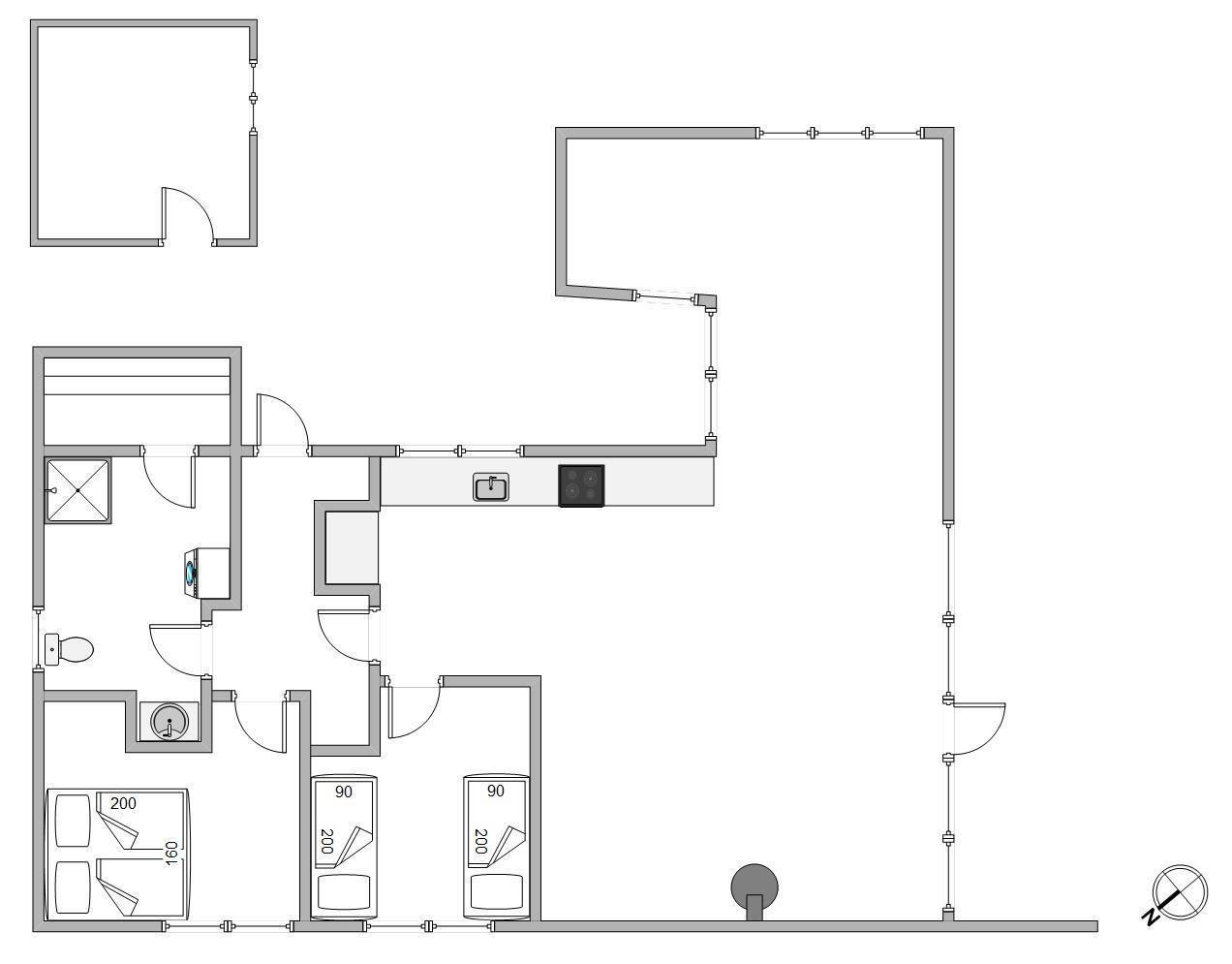 Sommerhuset har 2 soverum, hvoraf det ene værelse er med dobbeltseng og det næste med to enkeltsenge. I alt er der plads til 4 overnattende gæster i feriehuset. Et godt valg til dig, som gerne vil nyde det rolige sommerhusliv tæt på vandet. Der er en energibesparende varmepumpe, som hjælper med opvarmningen.
