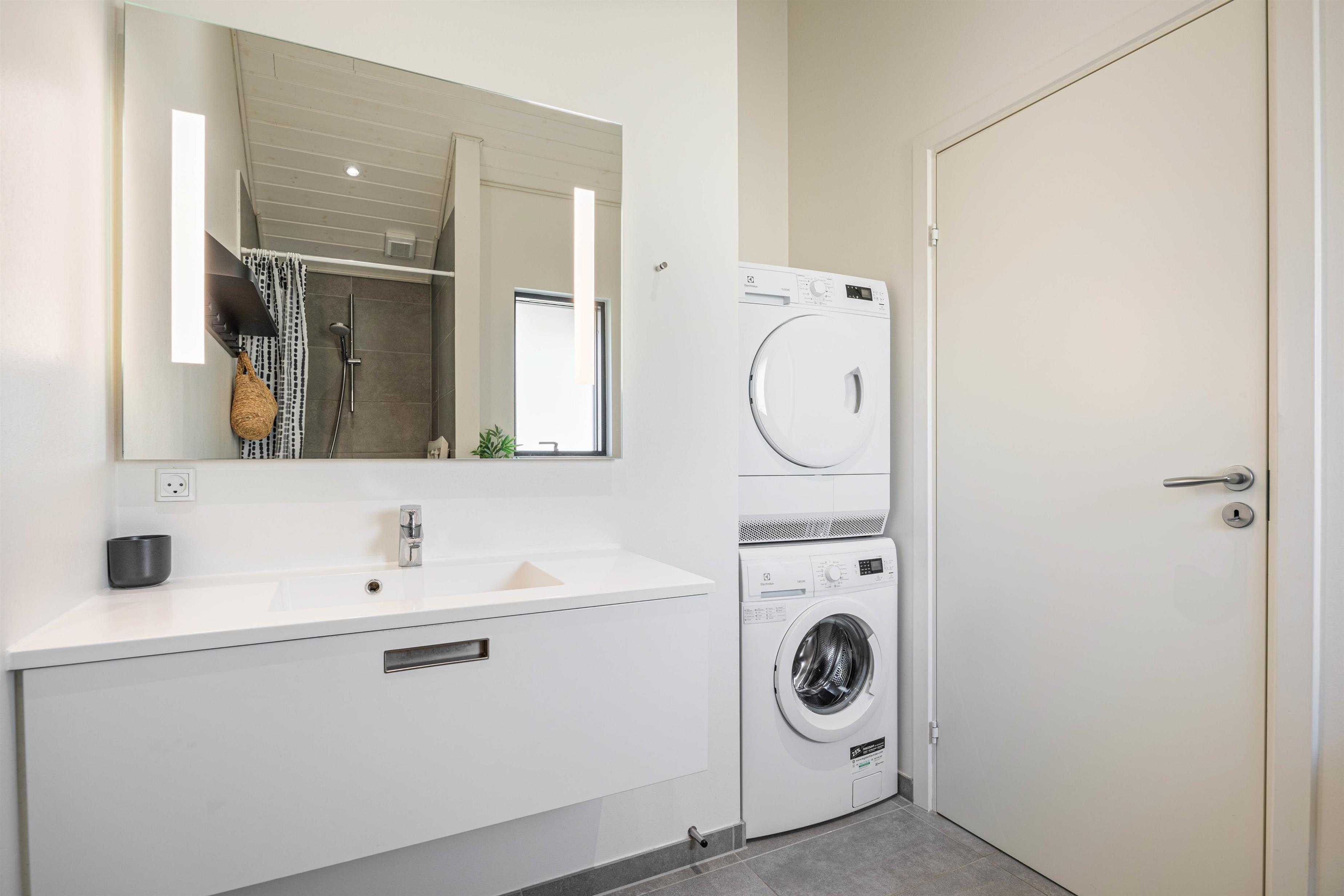 Her er tilmed tænkt på alt det praktiske, og huset er bl.a. udstyret med både opvaskemaskine, vaskemaskine, tørretumbler. Og sidst, men ikke mindst, får I også 2 badeværelser med gulvvarme, så I slipper for de lange toiletkøer om morgenen.