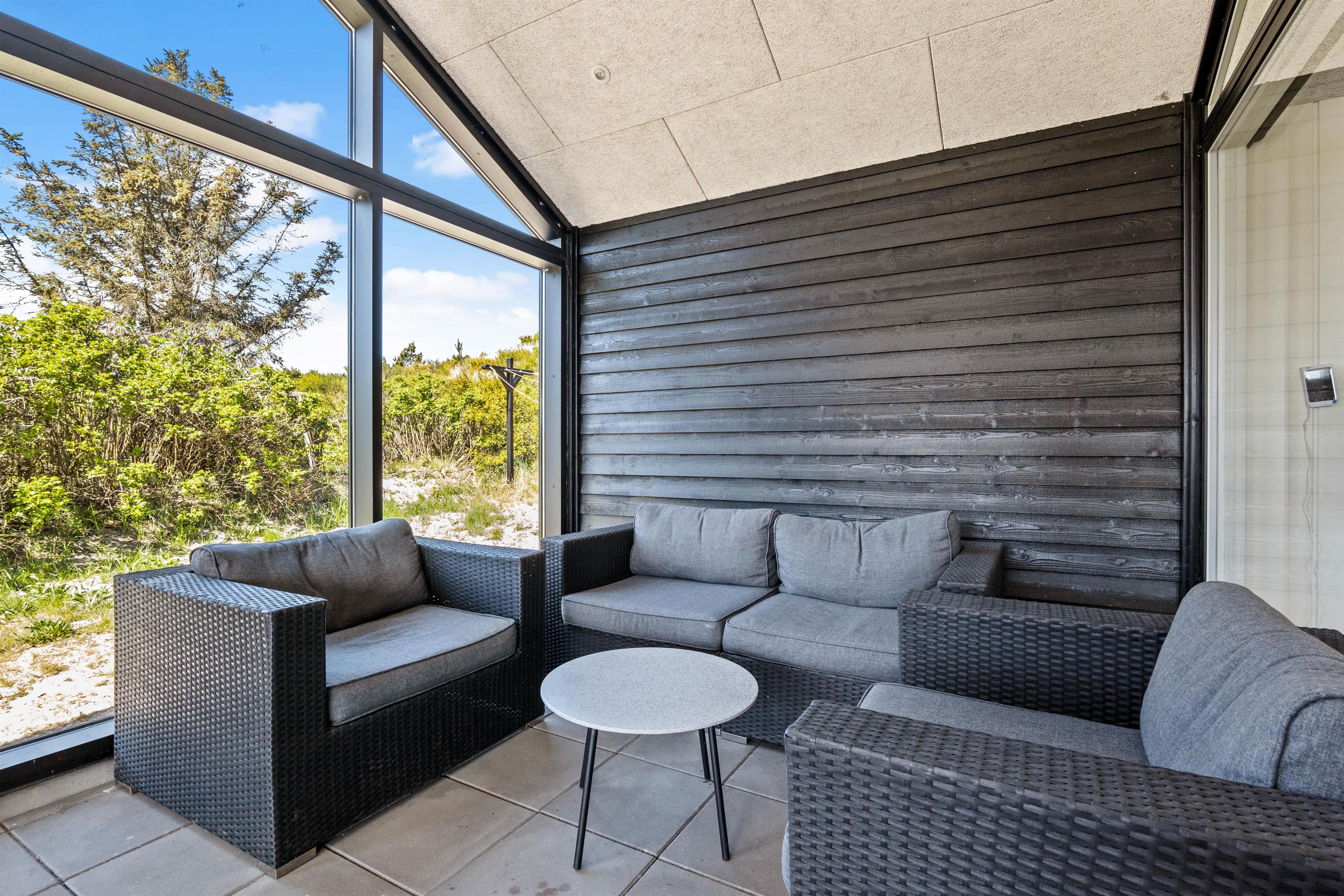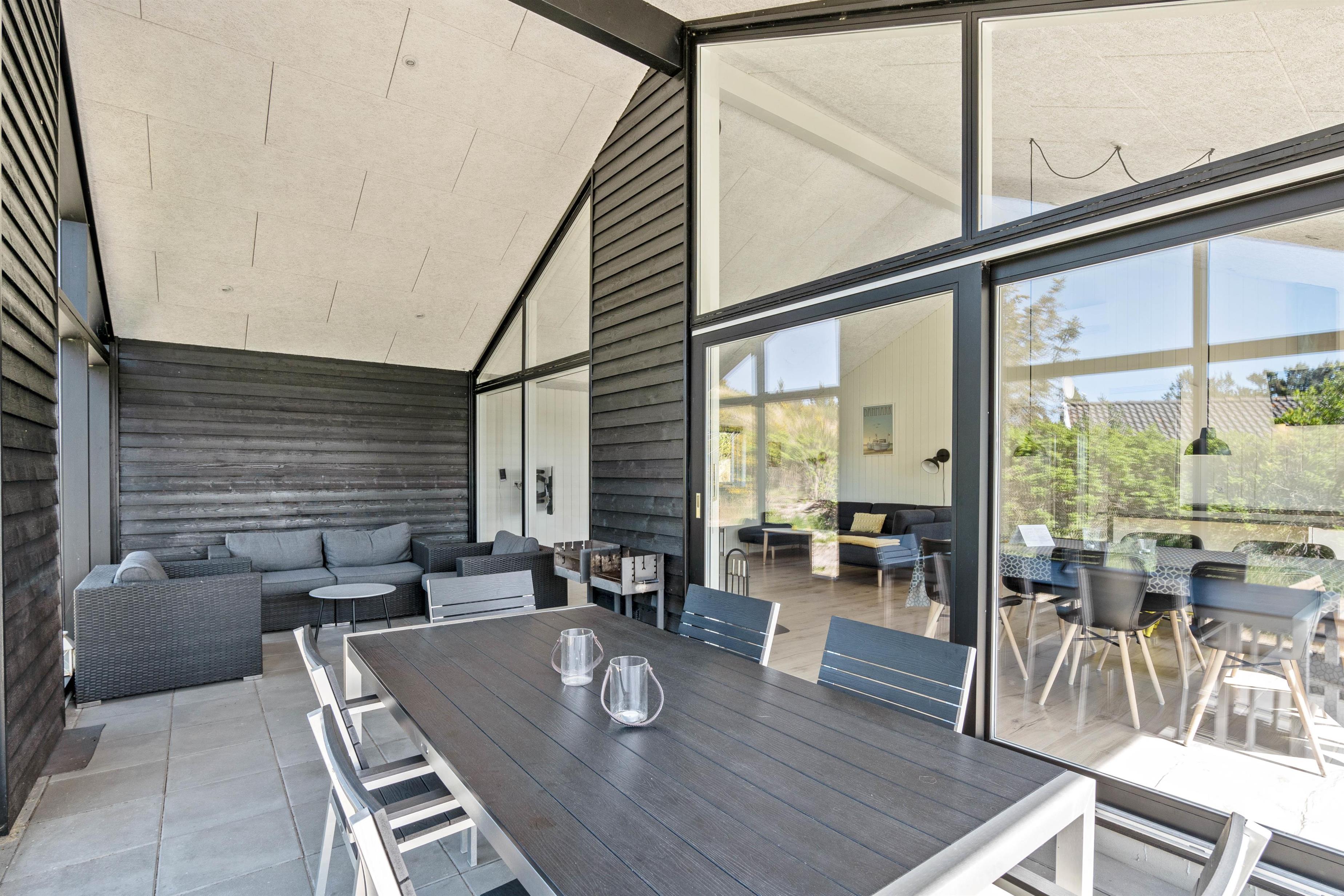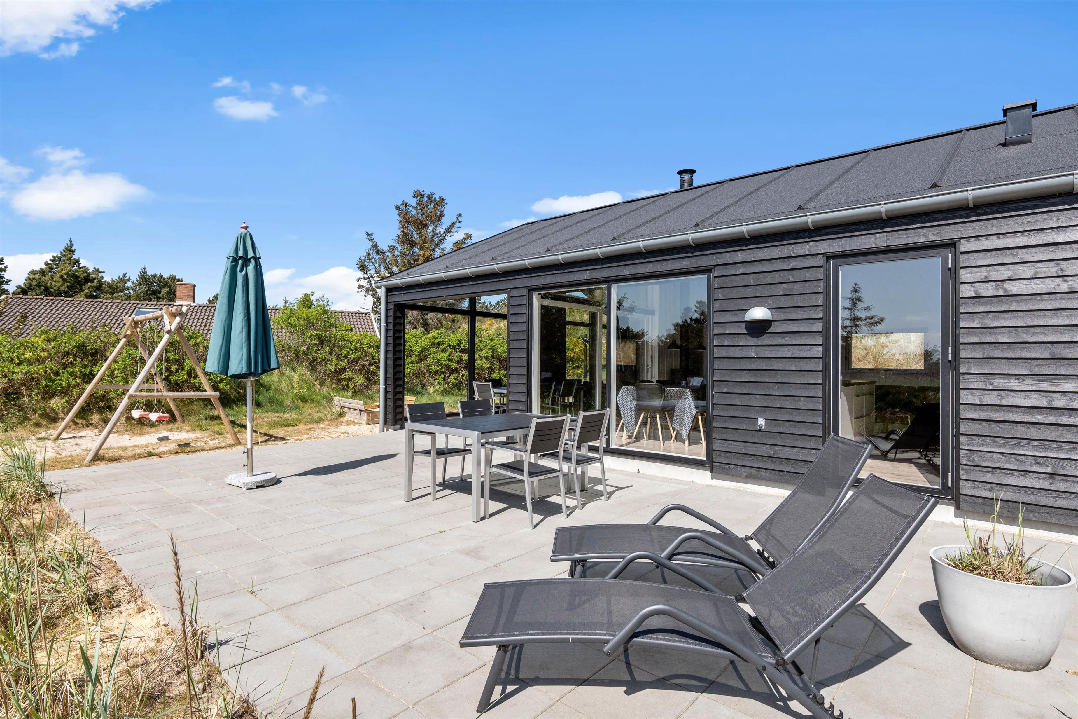 De skønne terrasser rundt om feriehuset på Bjerregårdsvej 126 indbyder til masser af udeliv. Den overdækkede terrasse forlænger udesæsonen og gør, at I også i knapt så godt vejr kan nyde den friske luft og naturen over en kop kaffe.
