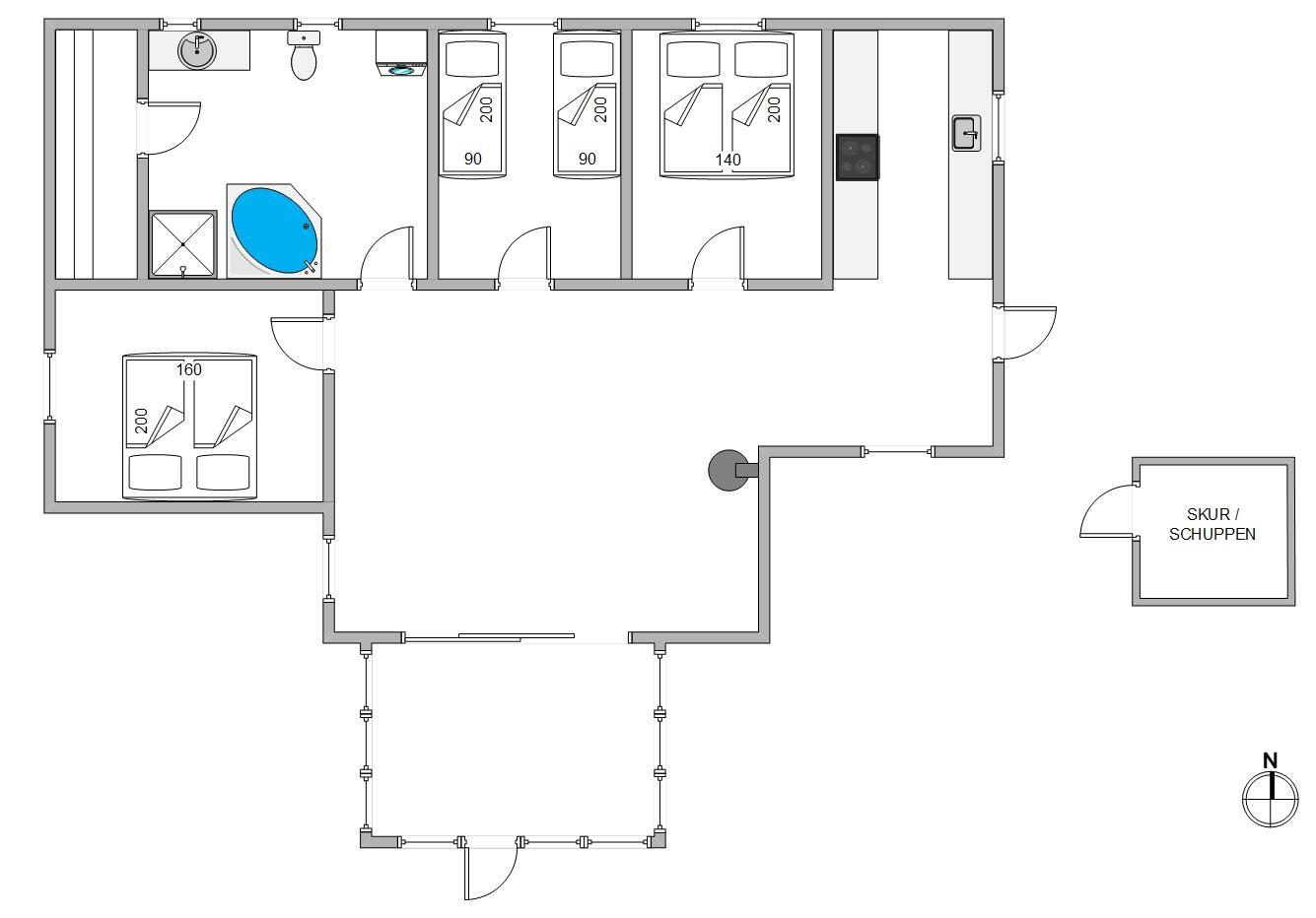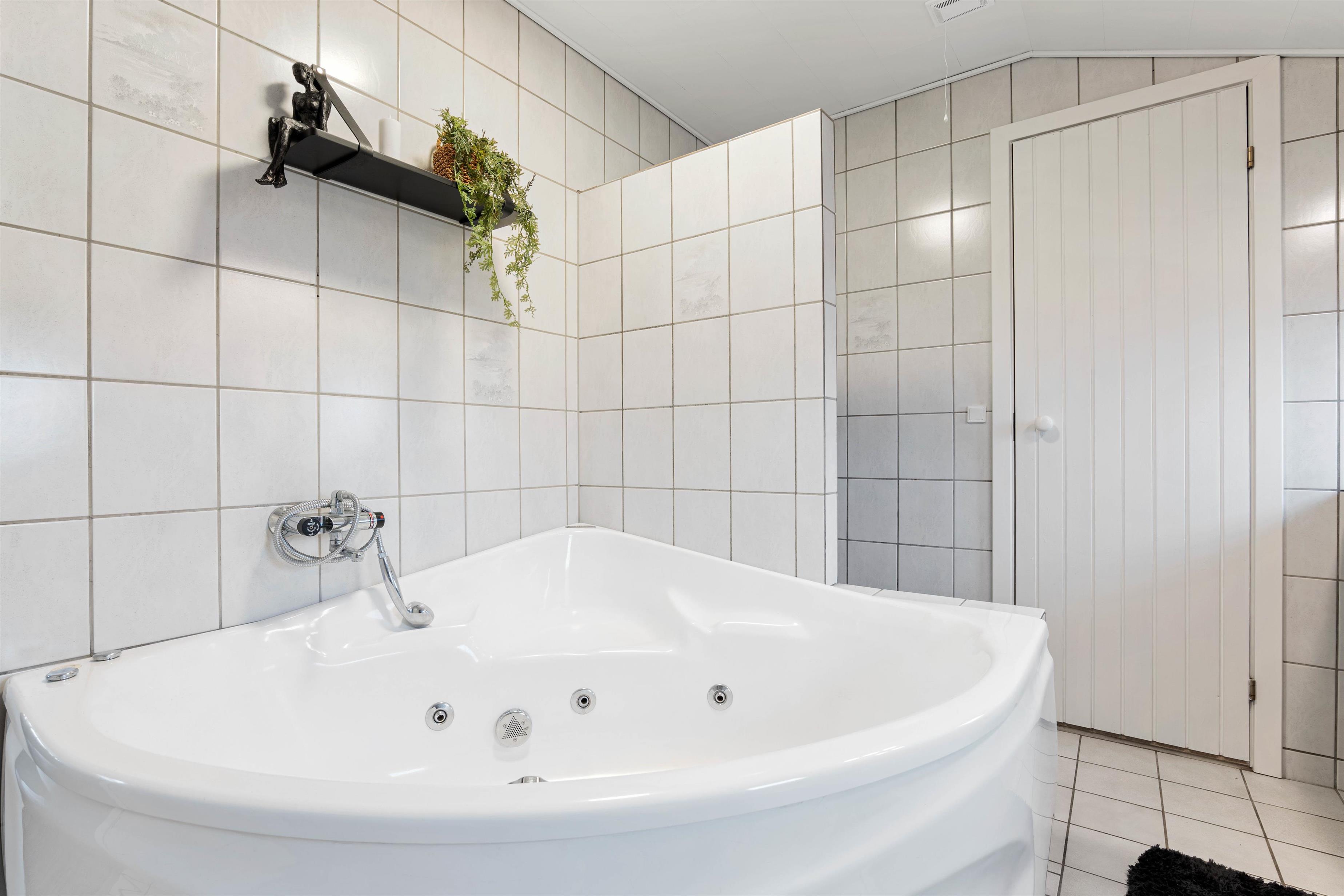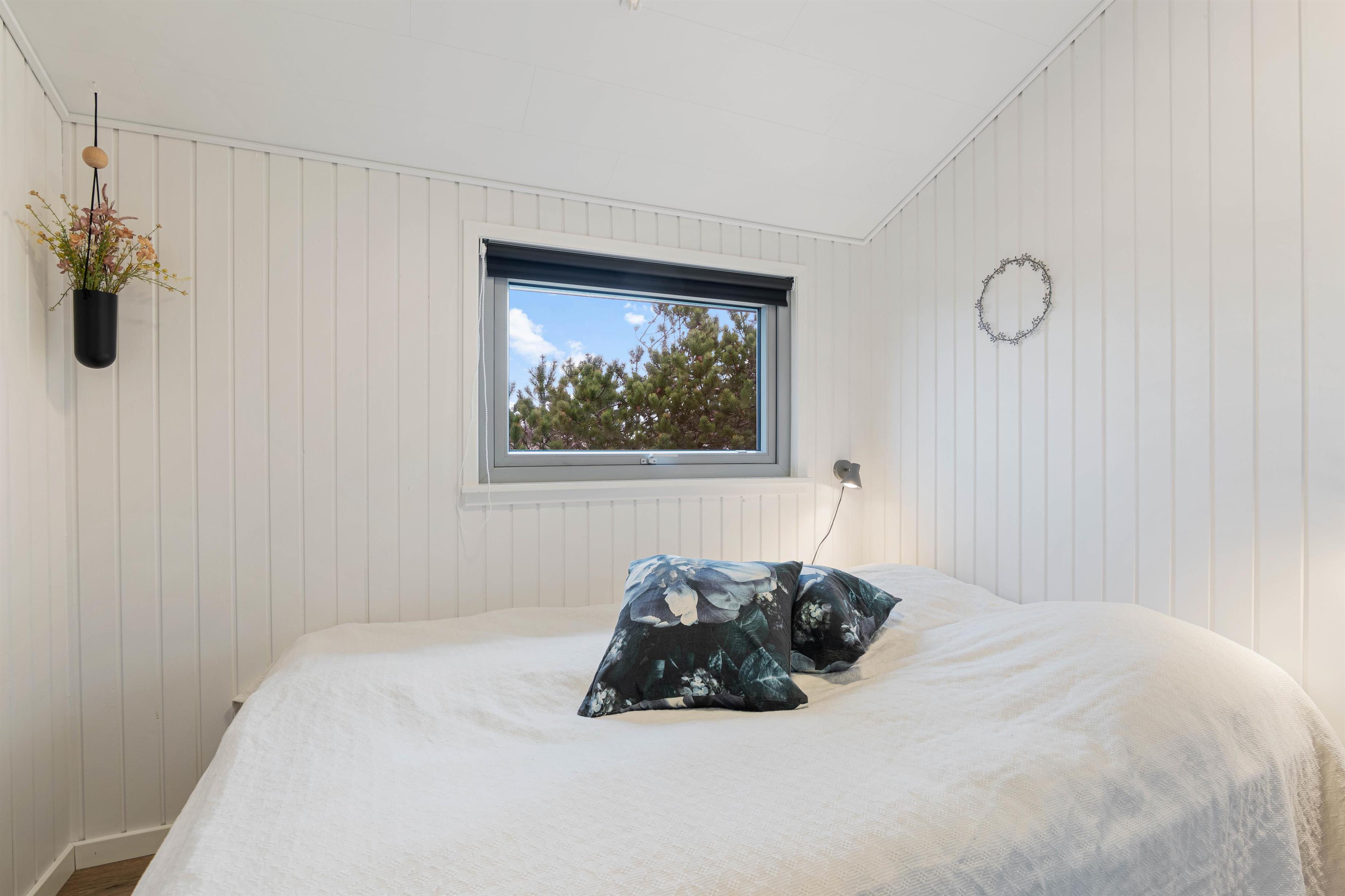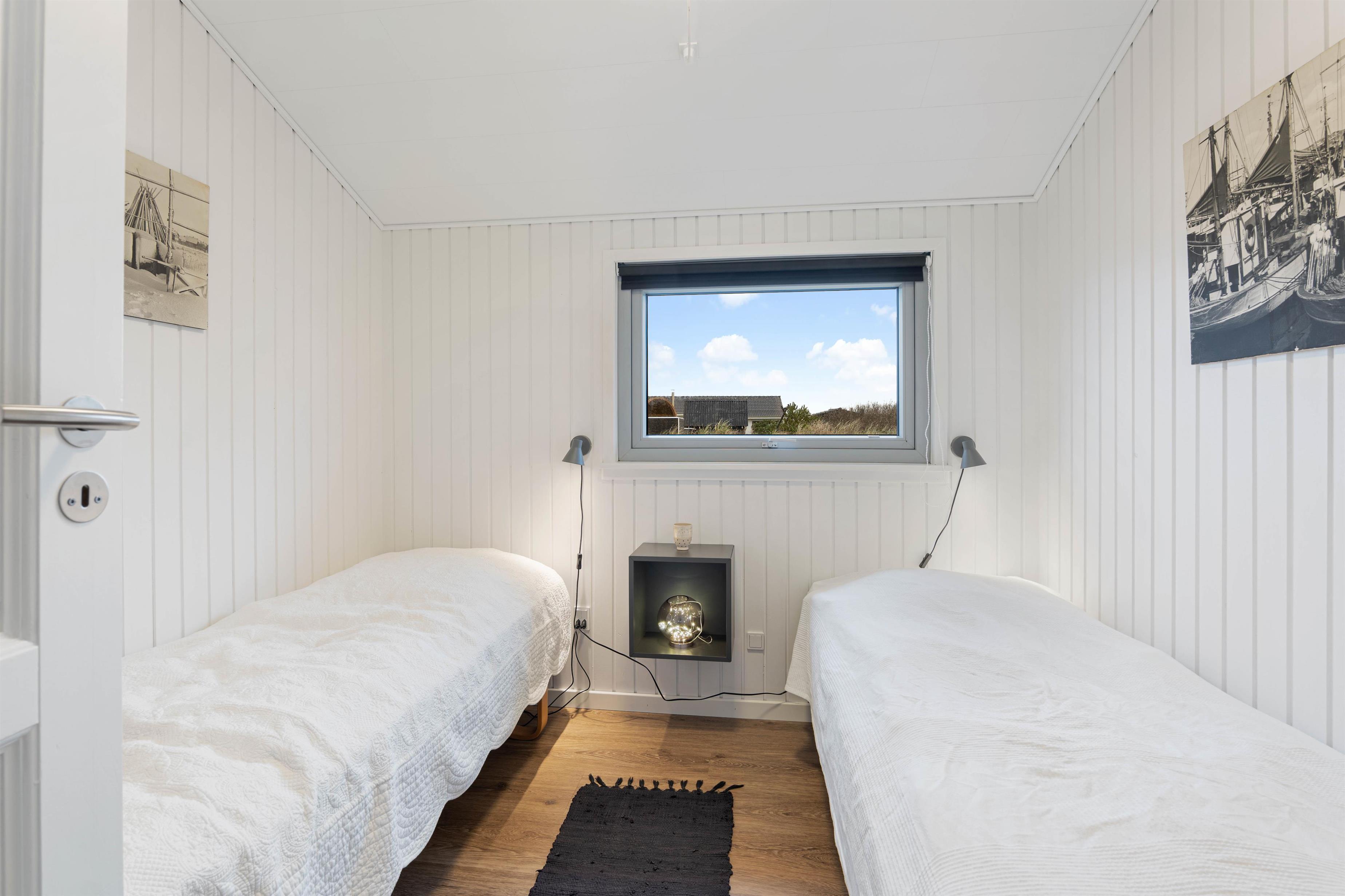 Det store badeværelse med spa og sauna har gulvvarme, så her er altid behageligt at opholde sig. Der er også vaskemaskine og energibesparende varmepumpe i feriehuset. I de tre soveværelser – 2 med dobbeltseng og 1 med 2 enkeltsenge – kan du slappe af og blive udhvilet i den friske vesterhavsluft.