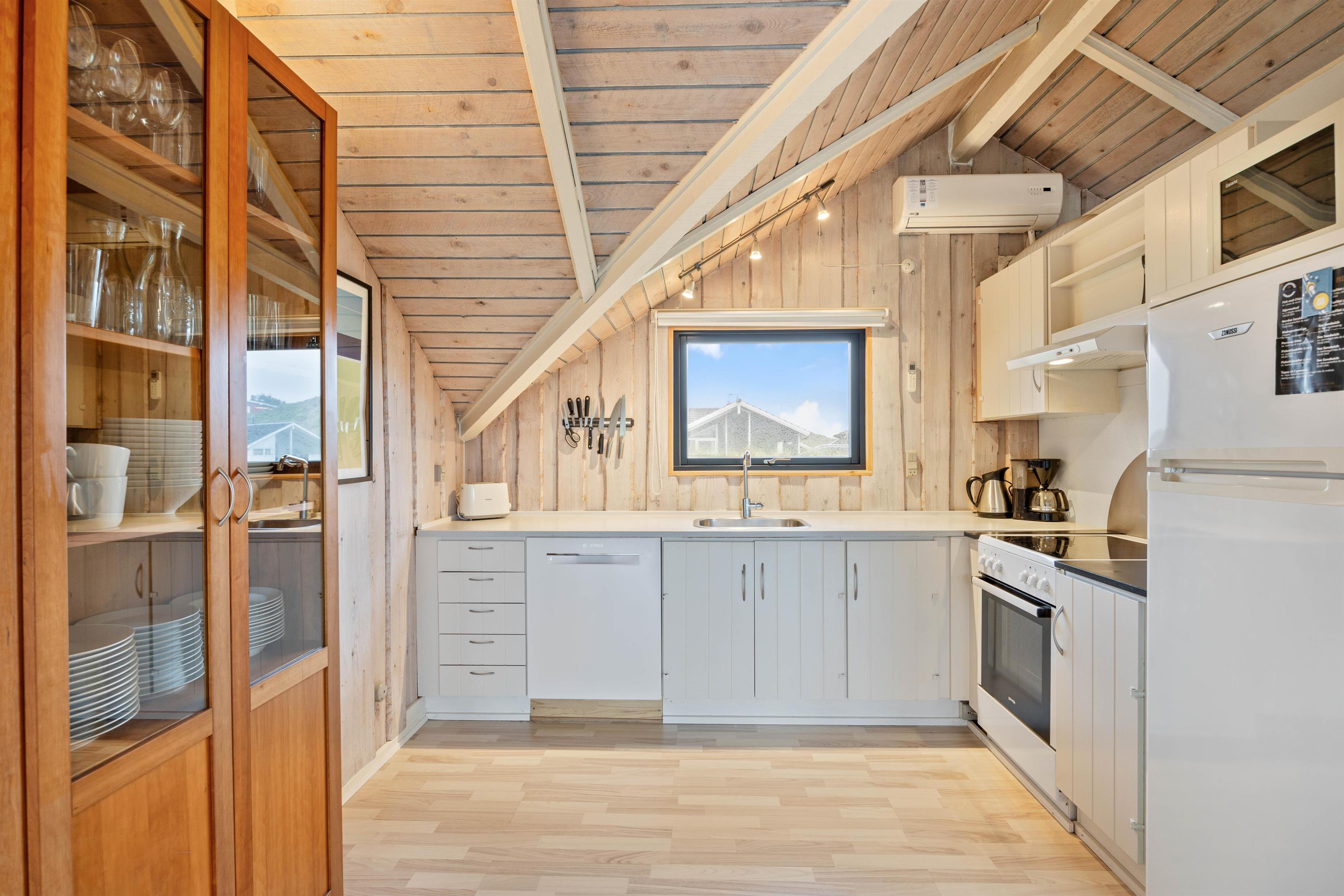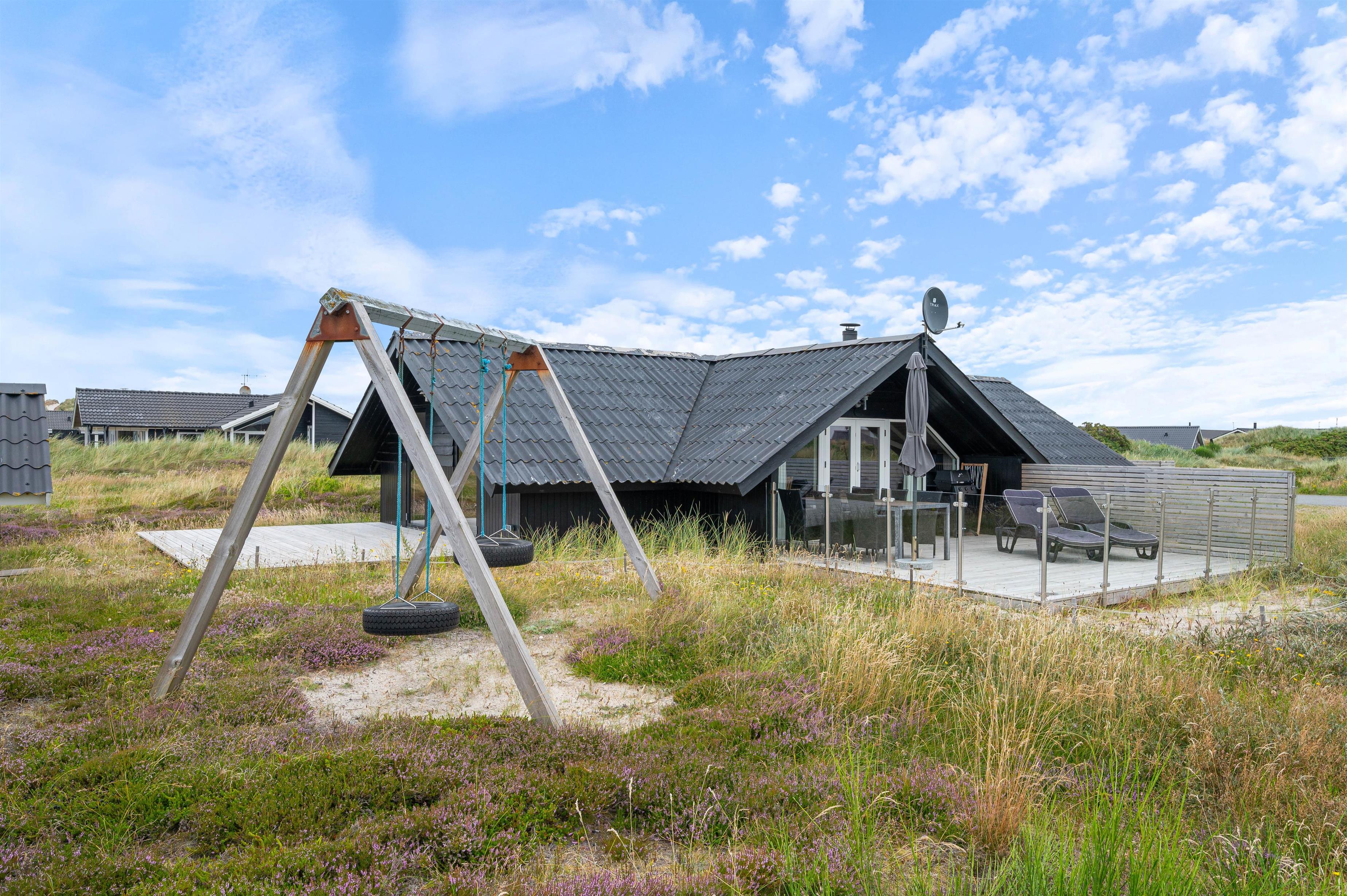 Ferie med hund? Det har I mulighed for her i et dejligt feriehus, som er lyst og venligt indrettet med brændeovn. Sommerhuset er beliggende på en naturgrund i det naturskønne Vestjylland. Her er store og velafskærmede, delvist overdækkede terrasser med god mulighed for læ, hvor småbørn og hund kan tumle sig. En af terrasserne er endda lukket, så de kan gå helt frit rundt, uden I skal bekymre jer om, at de skulle gå på opdagelse i området på egen hånd.