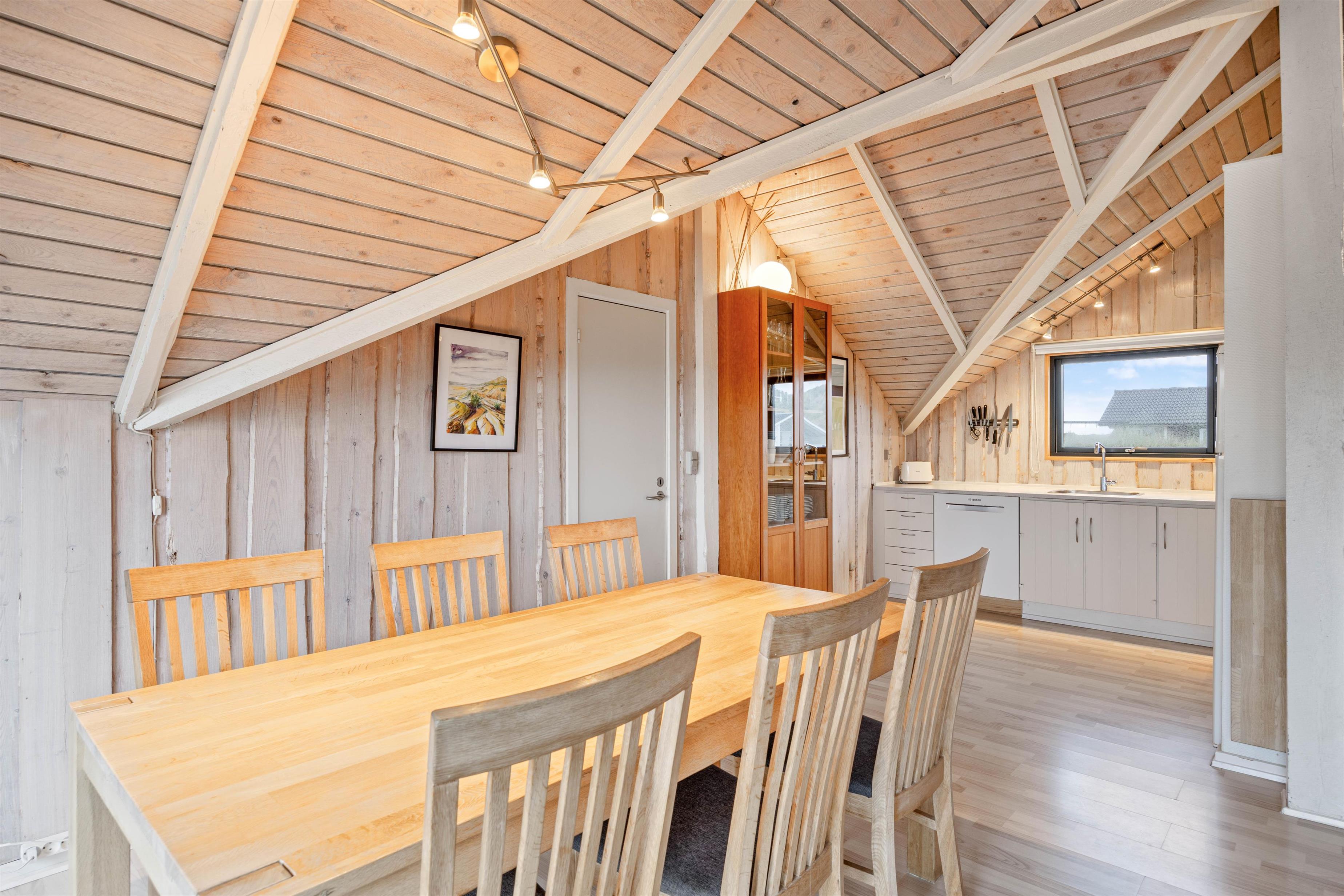 På Bjerregårdsvej 438 finder I dette rummelige feriehus til 5 personer med lys og venlig indretning samt et flot badeværelse, der er renoveret i 2024. Sommerhuset har en stor opholds- og spiseafdeling med gedigen møblering, unikke bjælker på væggen og et pragtfuldt lysindfald. Her kan I hygge med god mad eller brætspil, mens pejsen knitrer i baggrunden og spreder varme.