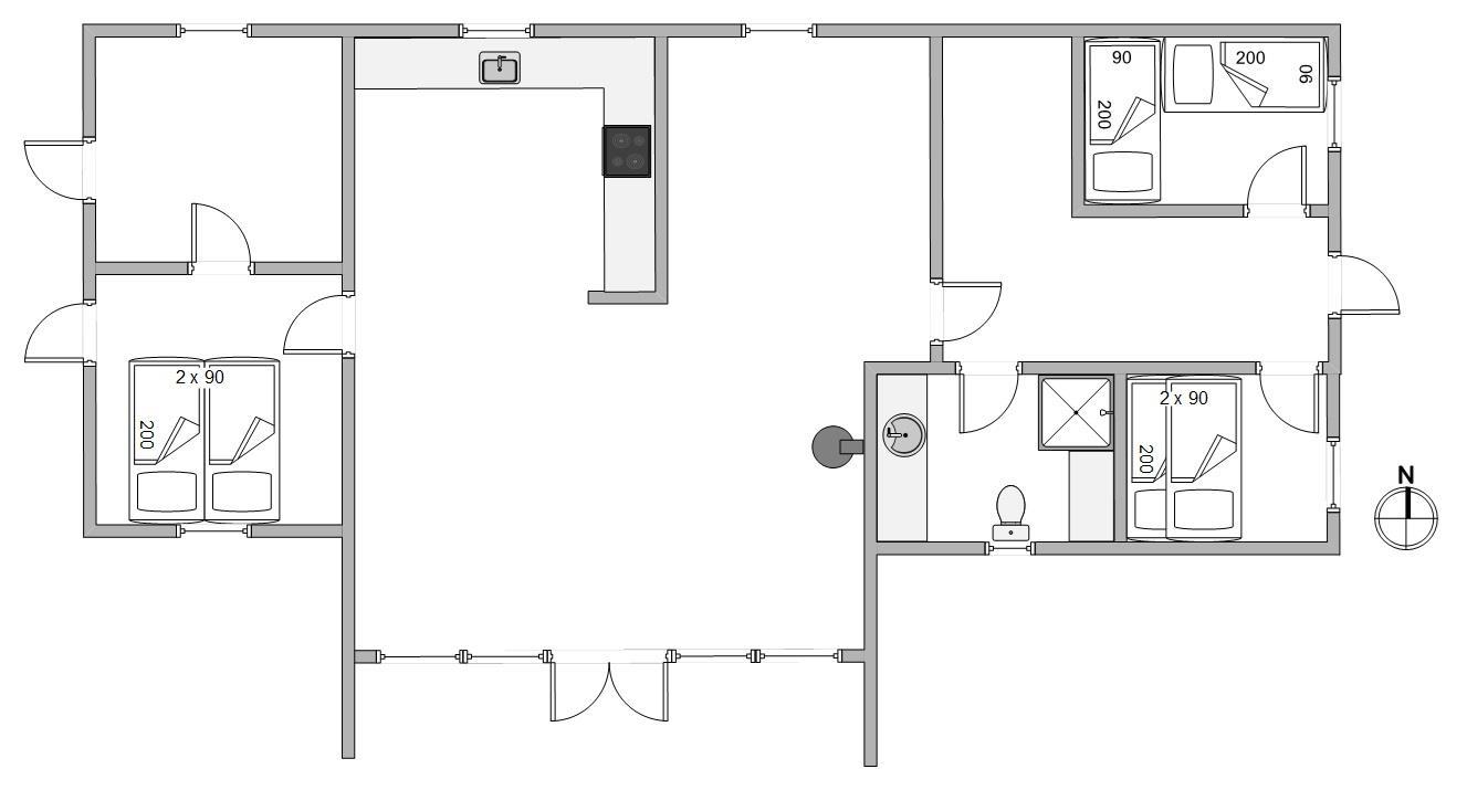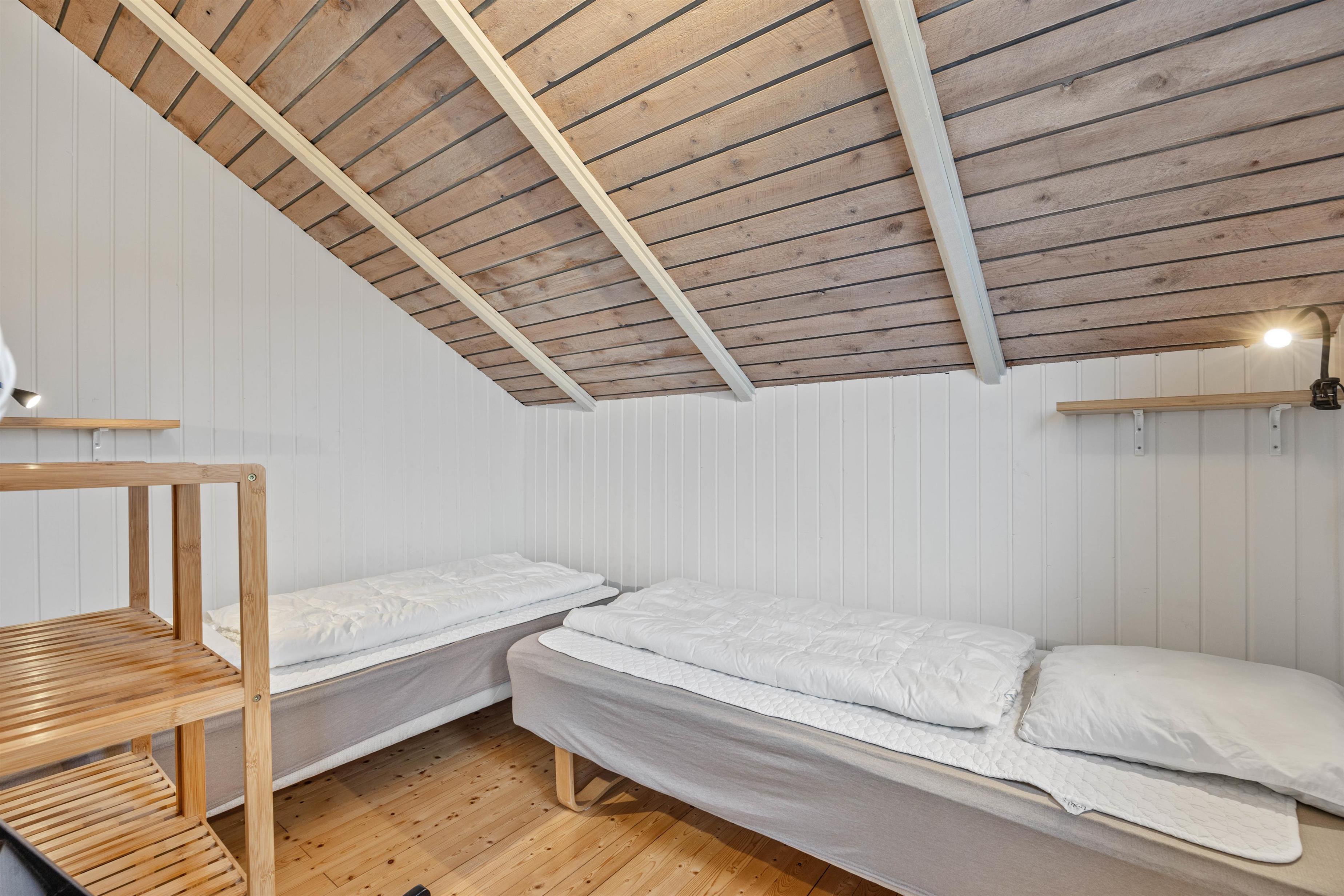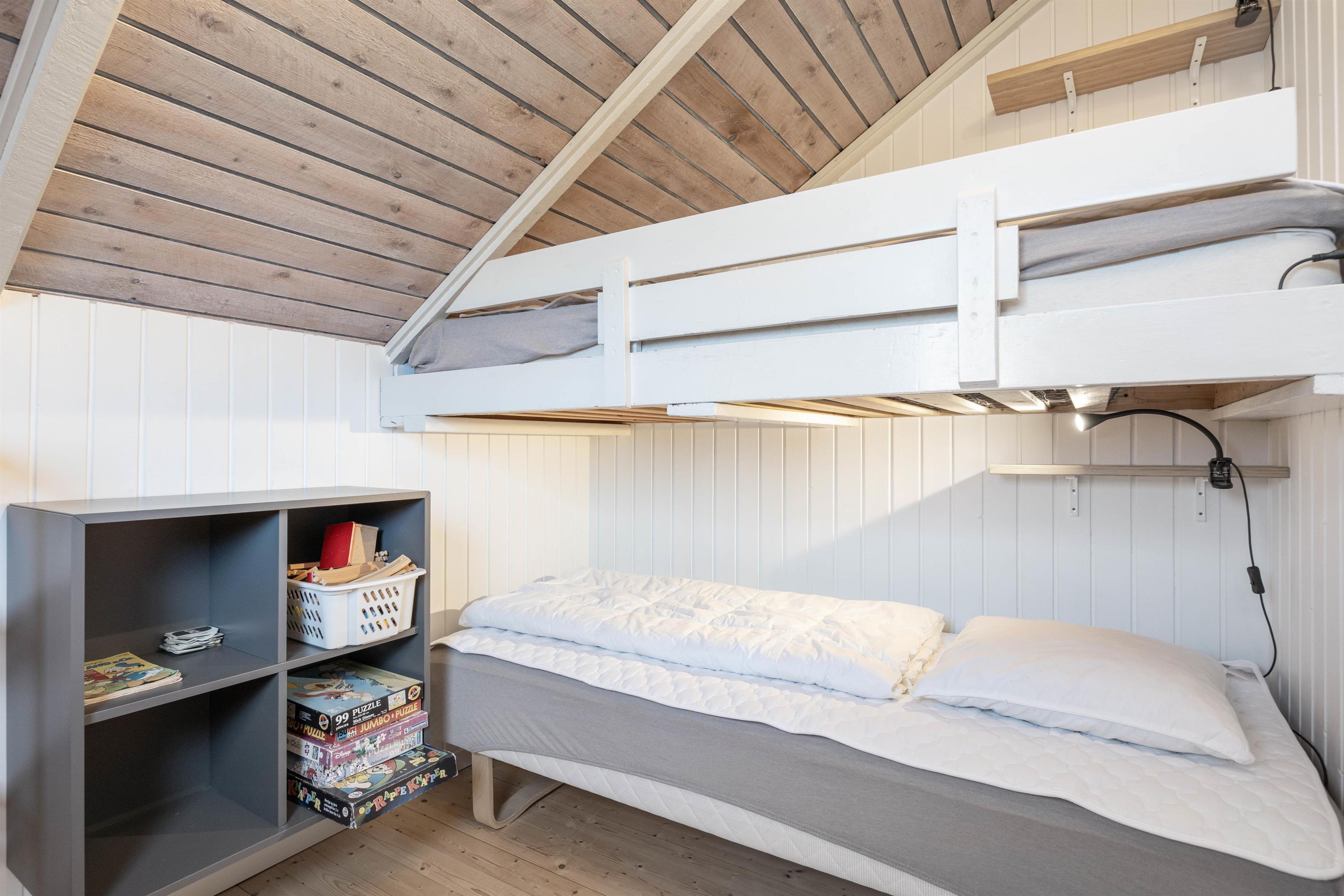 Feriehuset er ideelt til børnefamilien med de 3 gode soveværelser – 1 med dobbeltseng, 1 med enkeltsenge og 1 med en køjeseng, hvor den øverste køje er 150 cm lang - et fantastisk børneværelse, som de vil glæde sig til at bruge.