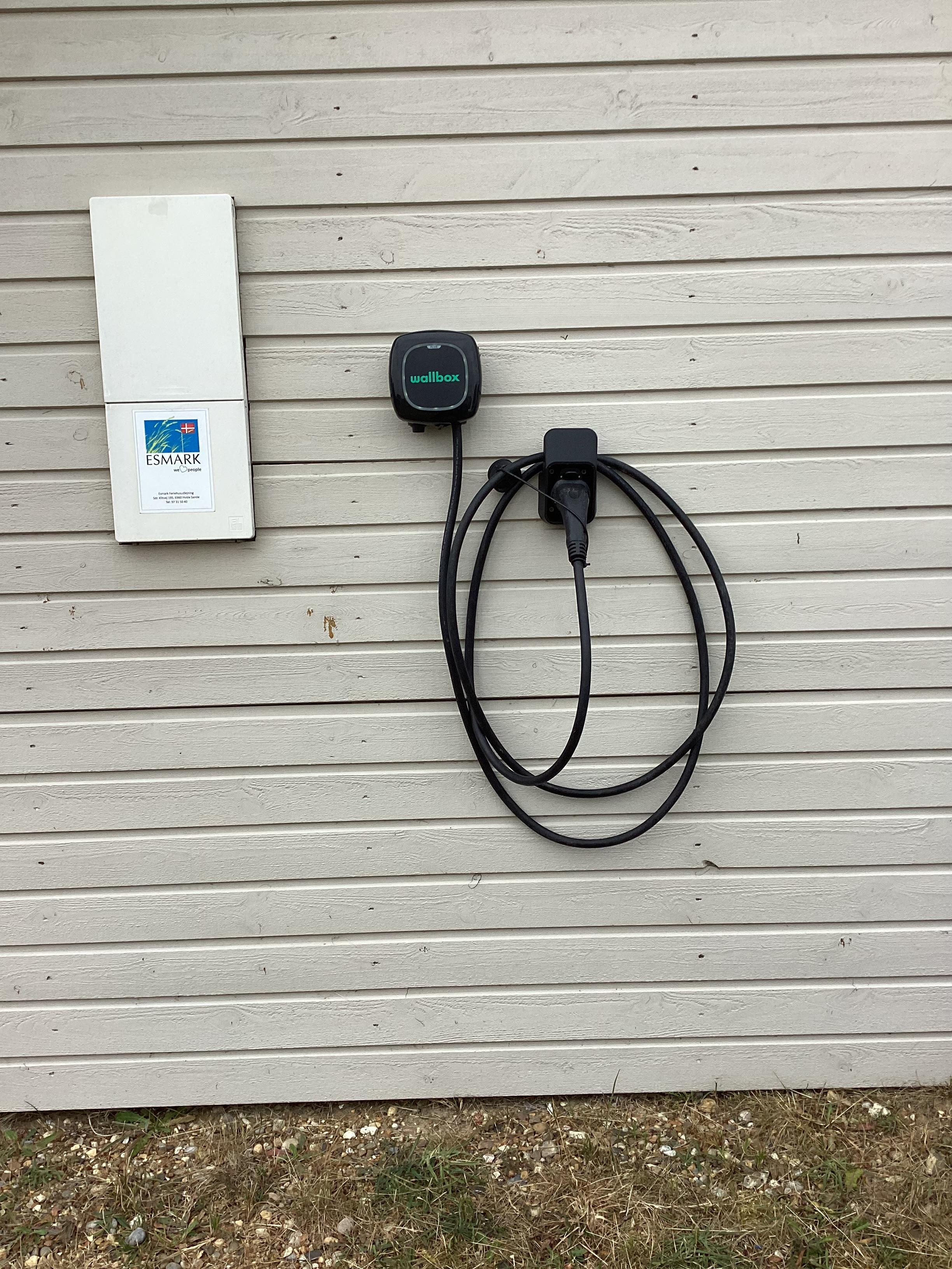 Ved sommerhuset er en ladestander til el-bil - medbring eget kabel.