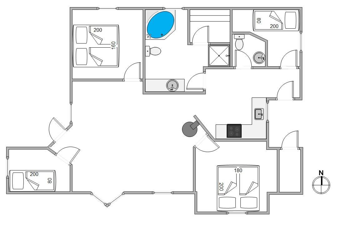 Det ekstra gæstetoilet gør, at I ikke behøver at stå i kø til tandbørstningen. De hyggelige soveværelser er opdelt i 2 værelser med dobbeltsenge og 2 værelser med 1 enkeltseng i hver. Her kan du slappe af og blive udhvilet til næste feriedag.