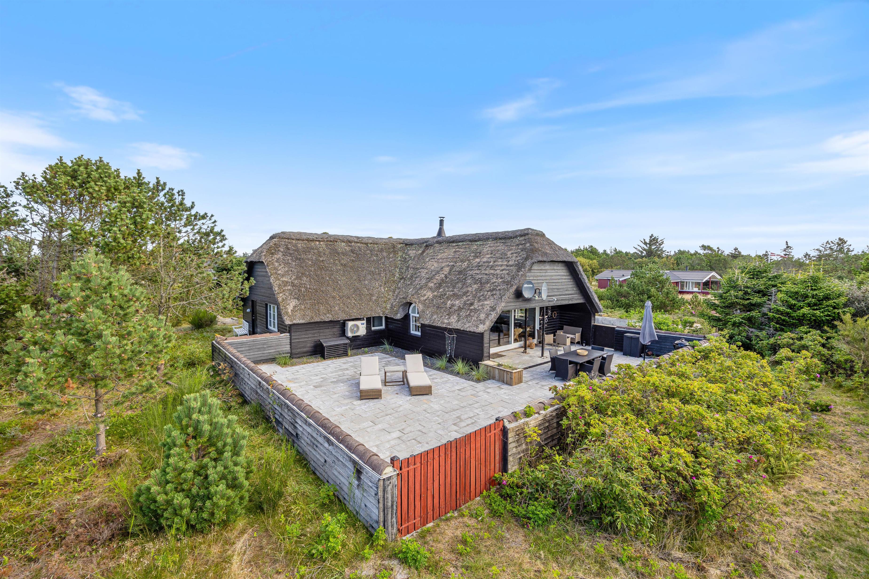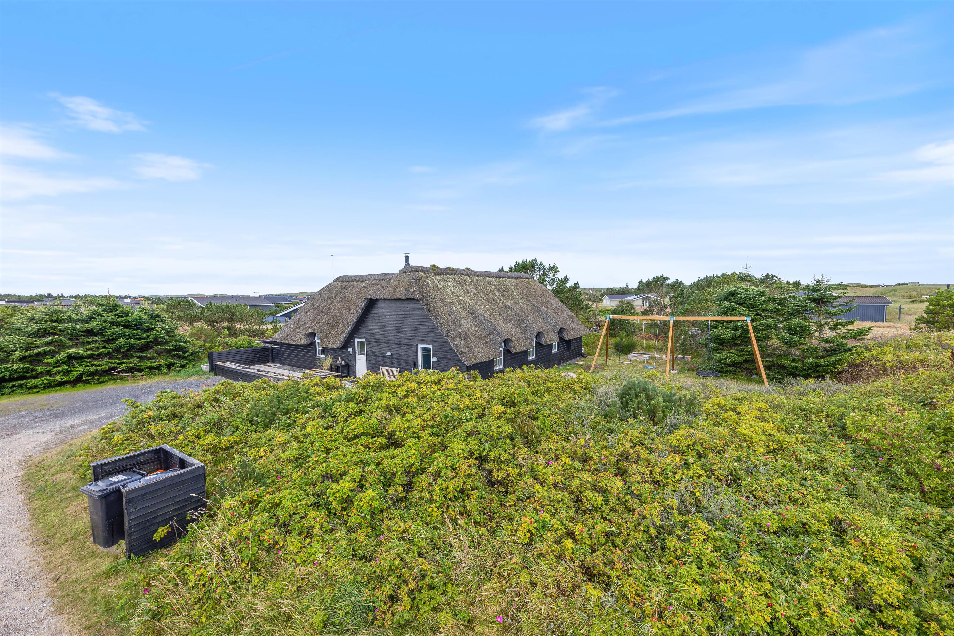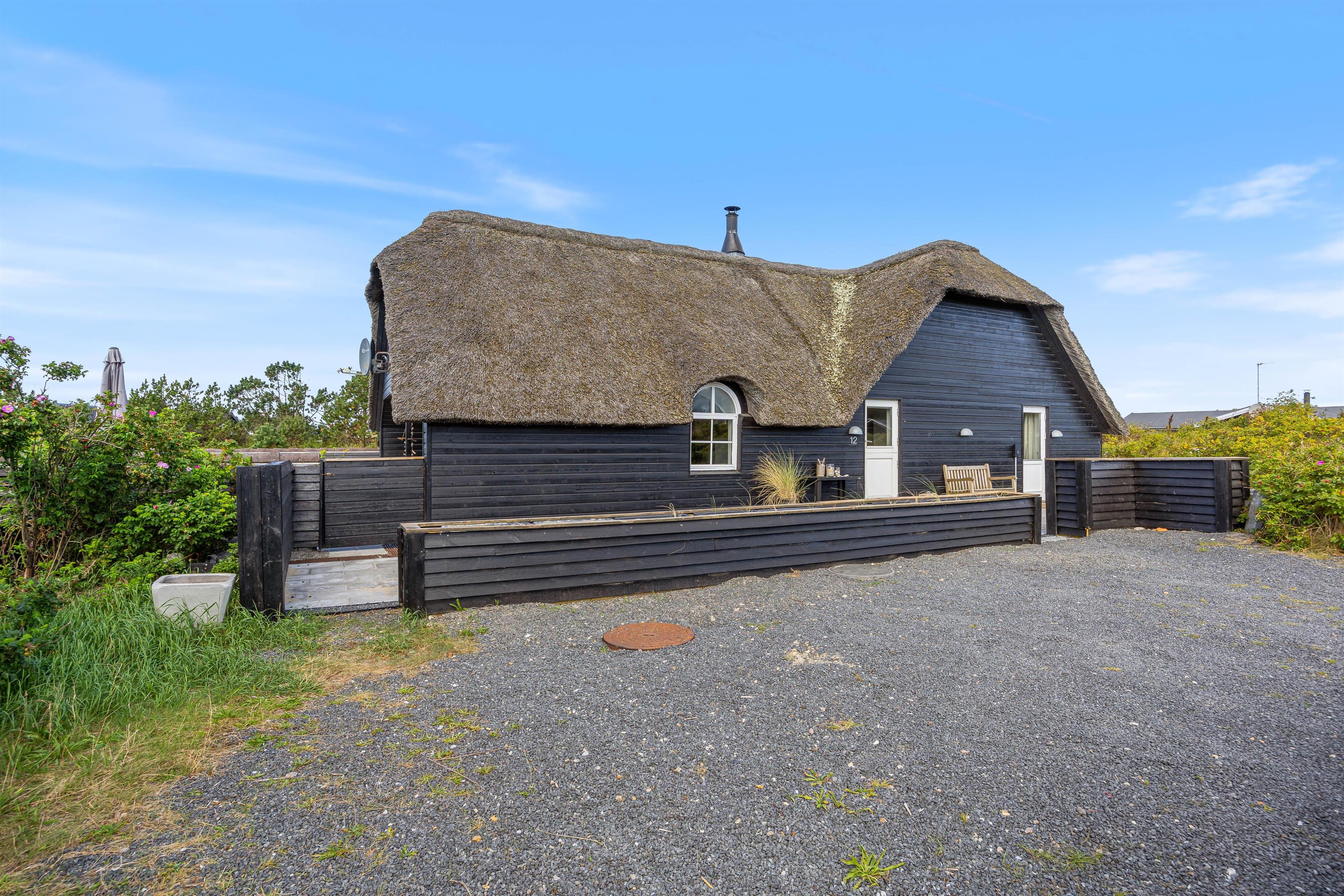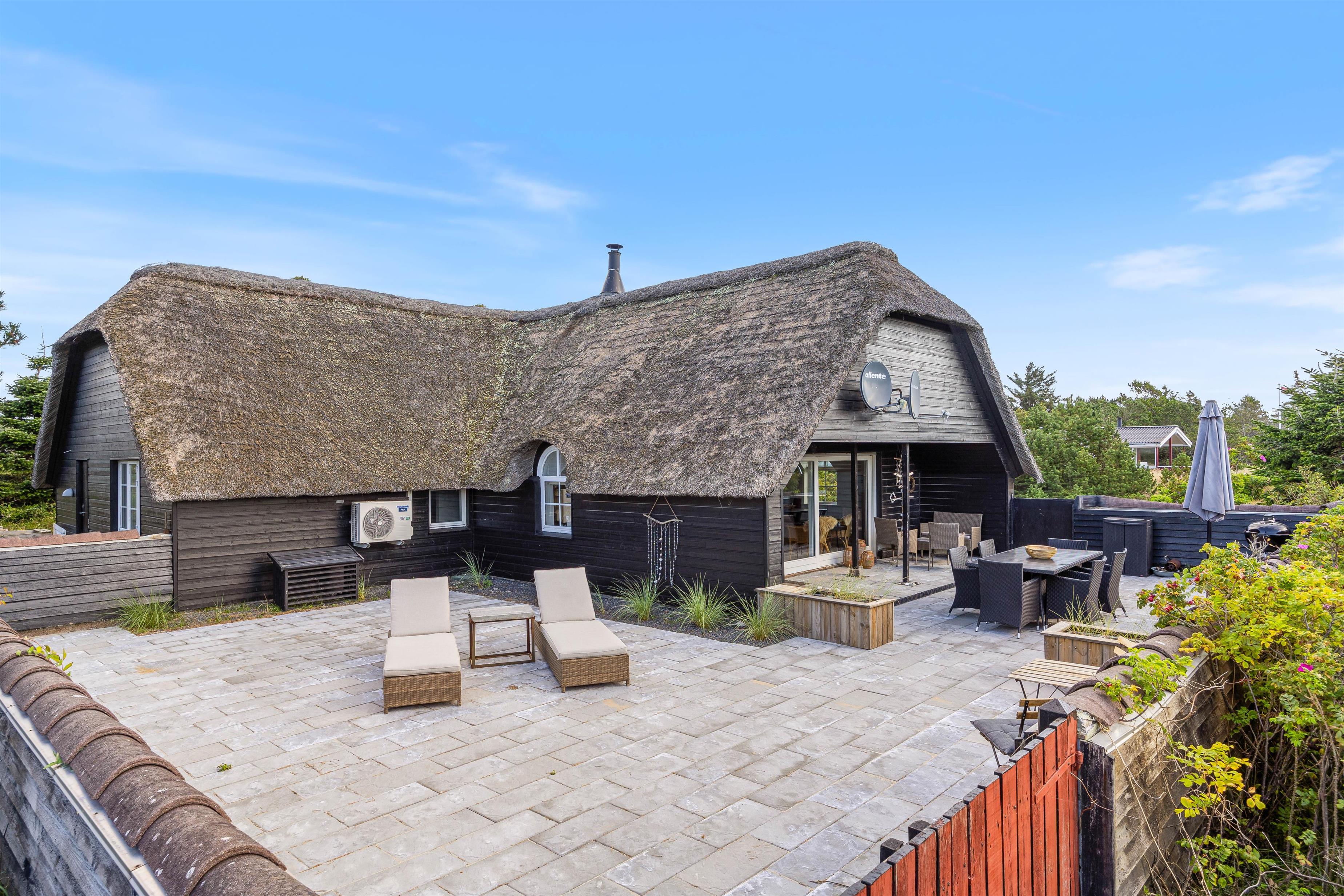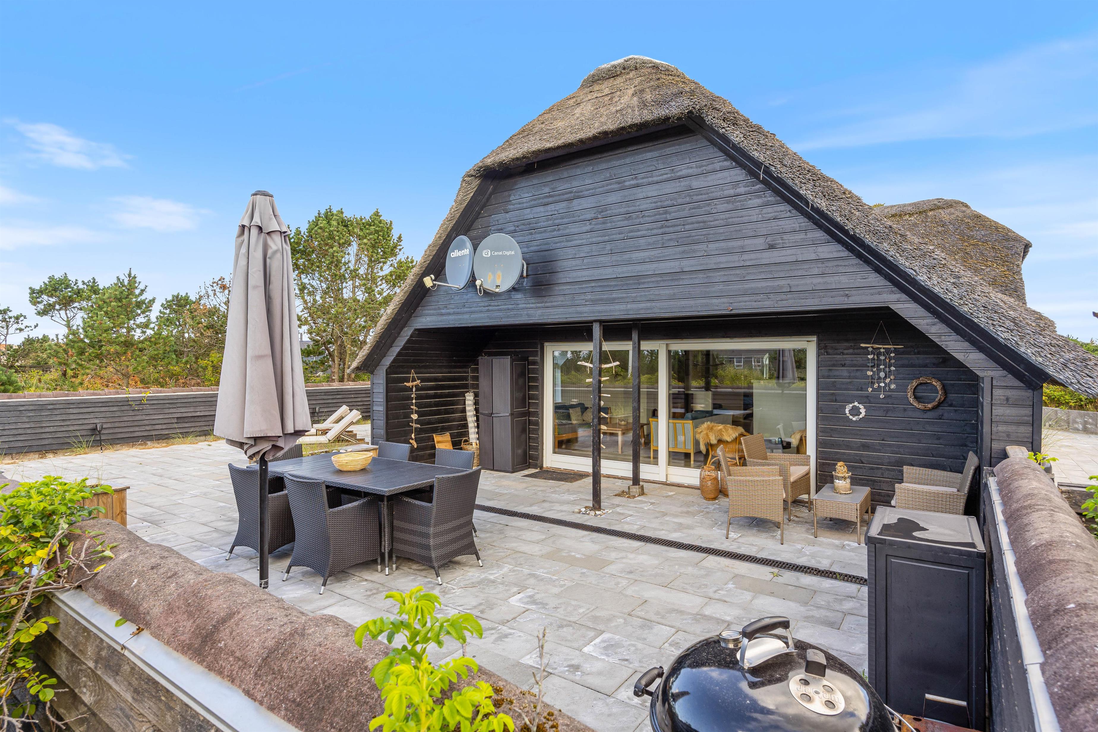 Sommerhuset har en skøn og lukket terrasse, som er placeret mod syd og mod vest. Mod syd er den endvidere delvist overdækket, hvilket er helt ideel til grillaftener. Både børnene og familiens hund vil nyde den lukkede terrasse, især fordi den er så dejlig stor. Der er desuden en sandkasse på naturgrunden udenfor terrassen, hvor børnene kan øve sig på at konstruere sandslotte, inden turen går ned til Vesterhavet, som ligger kun 750 meter fra sommerhuset.