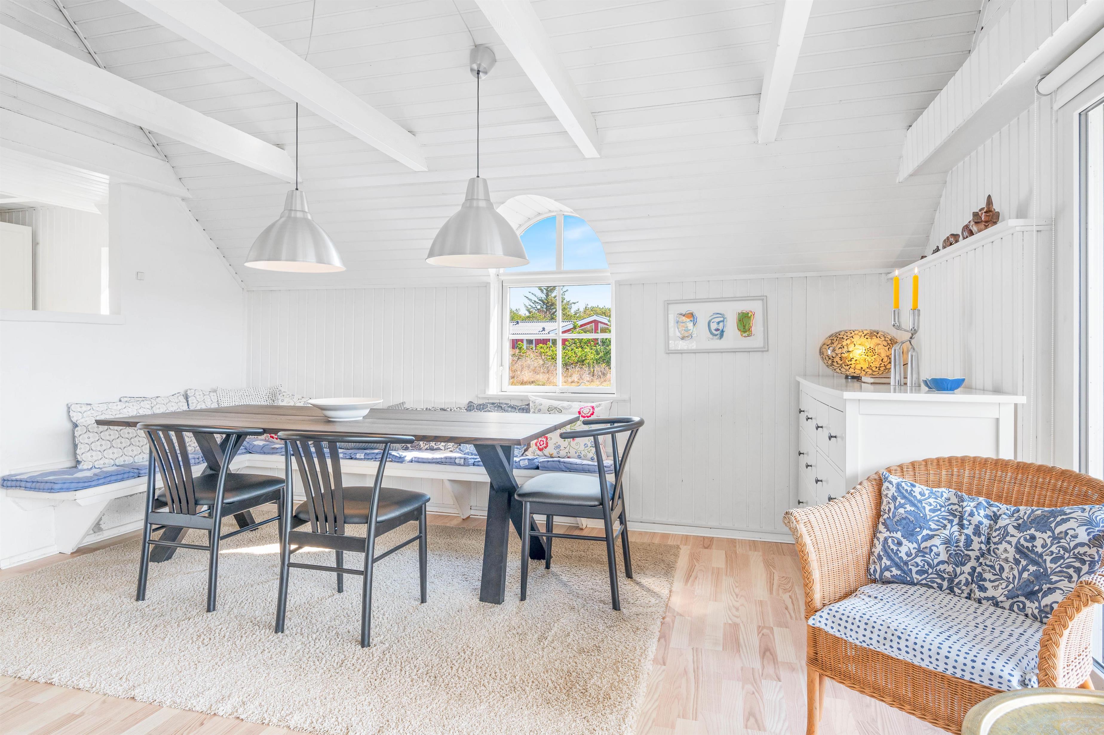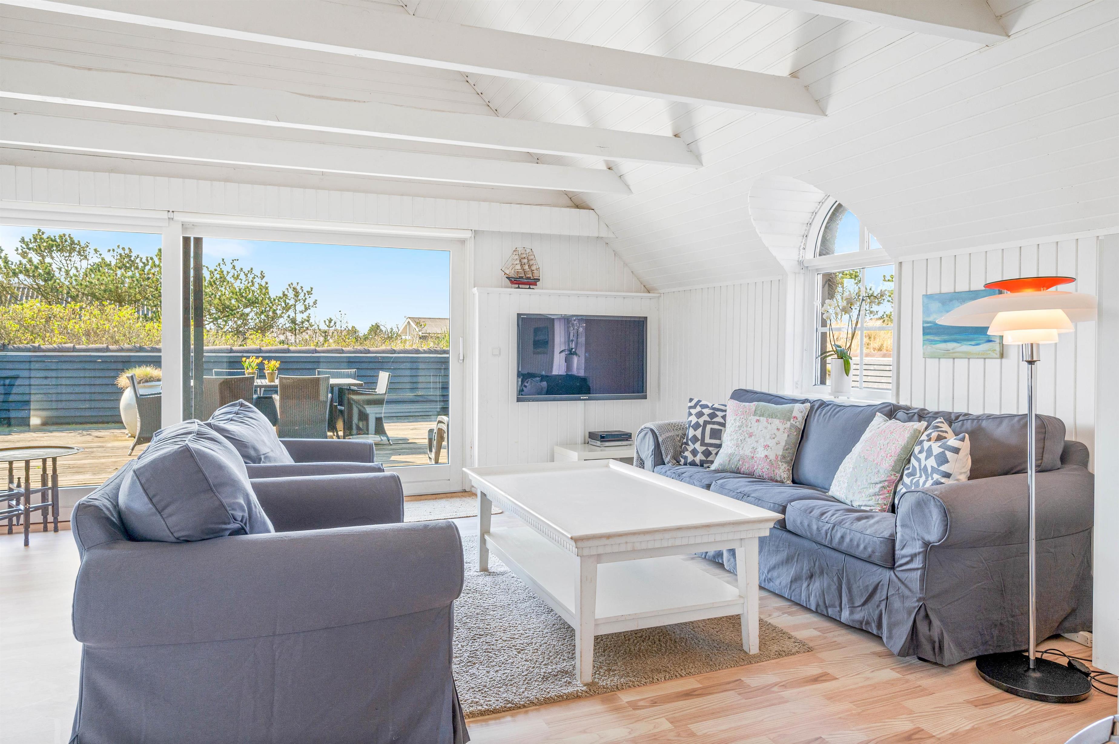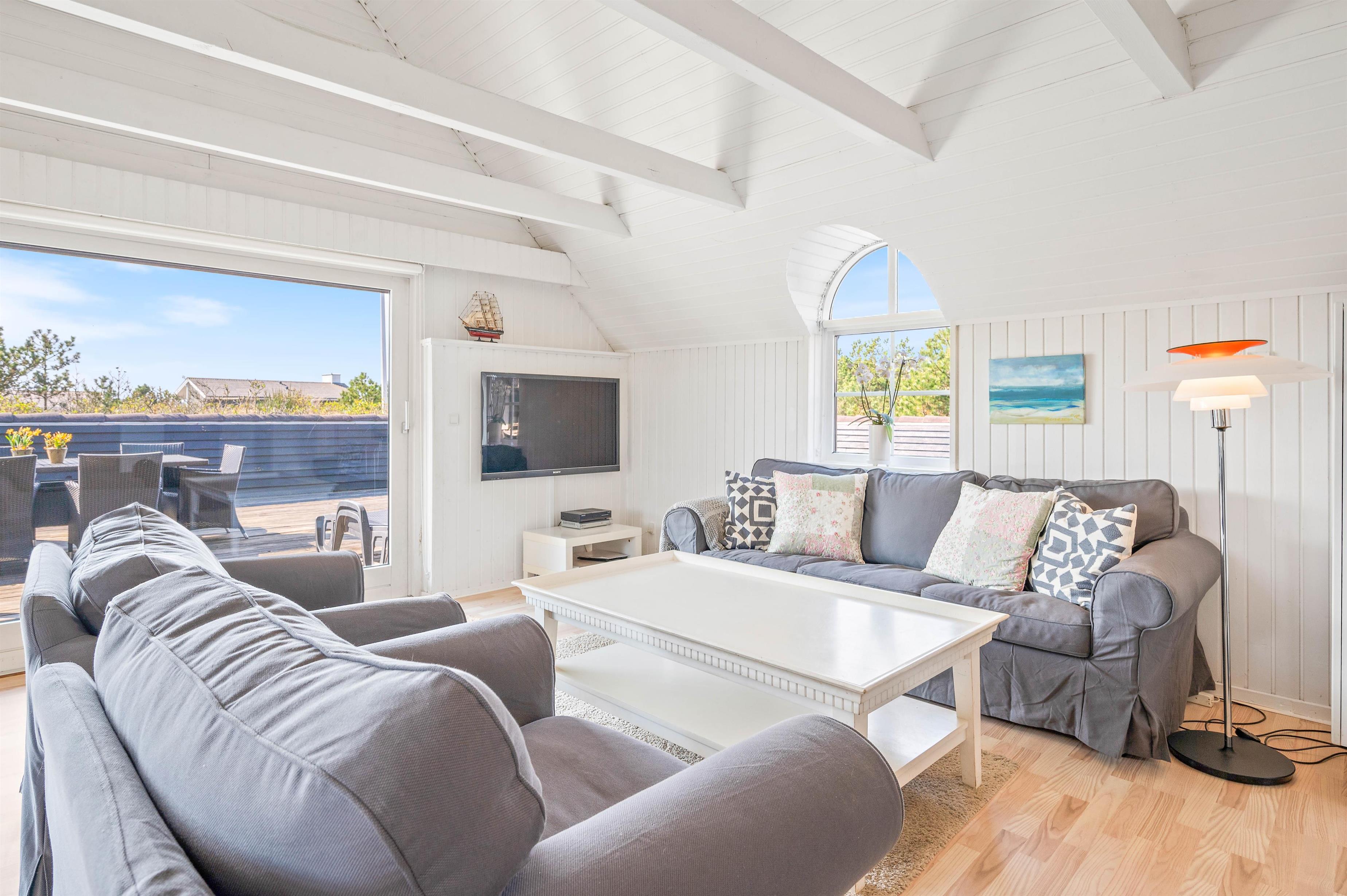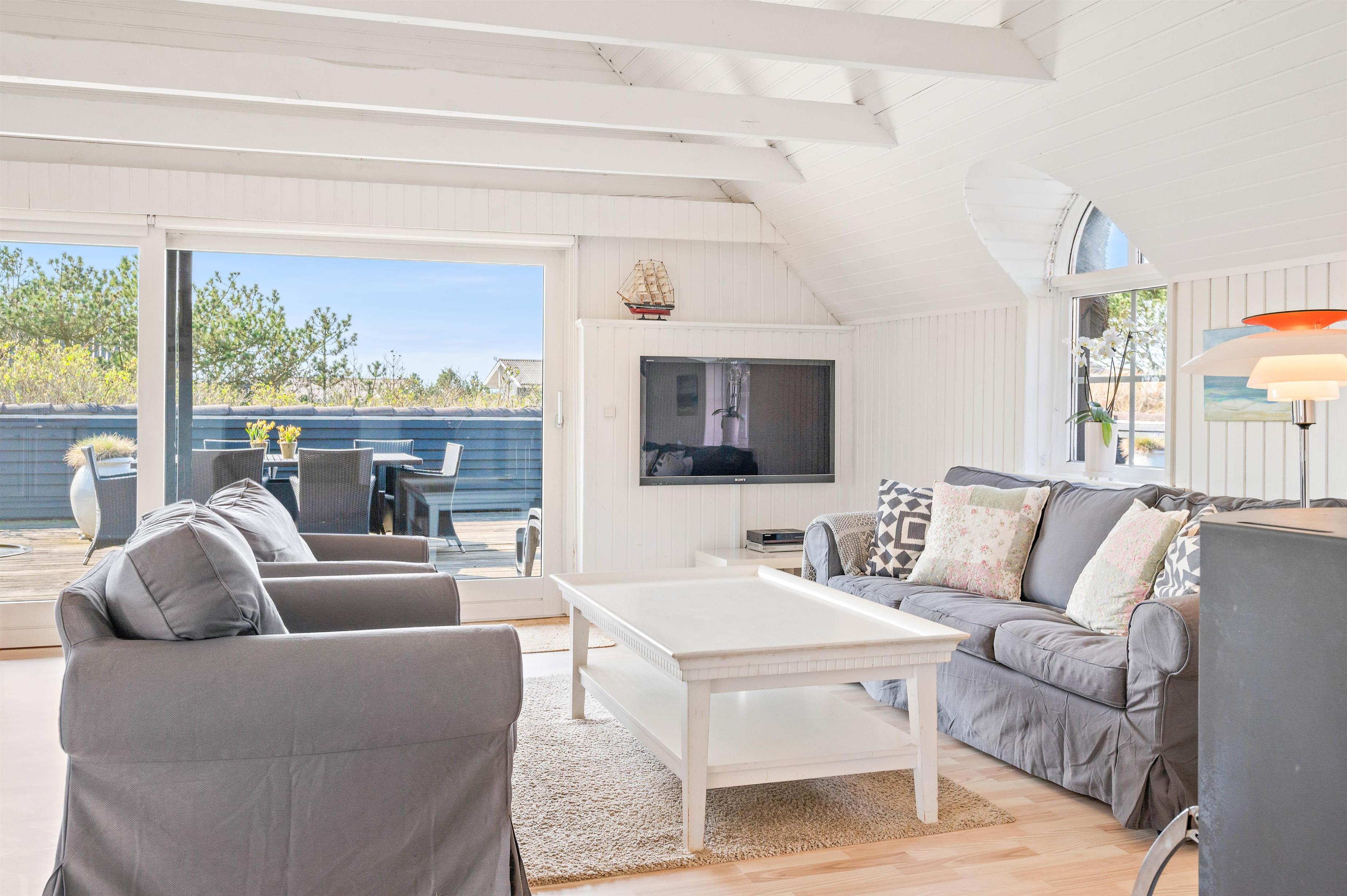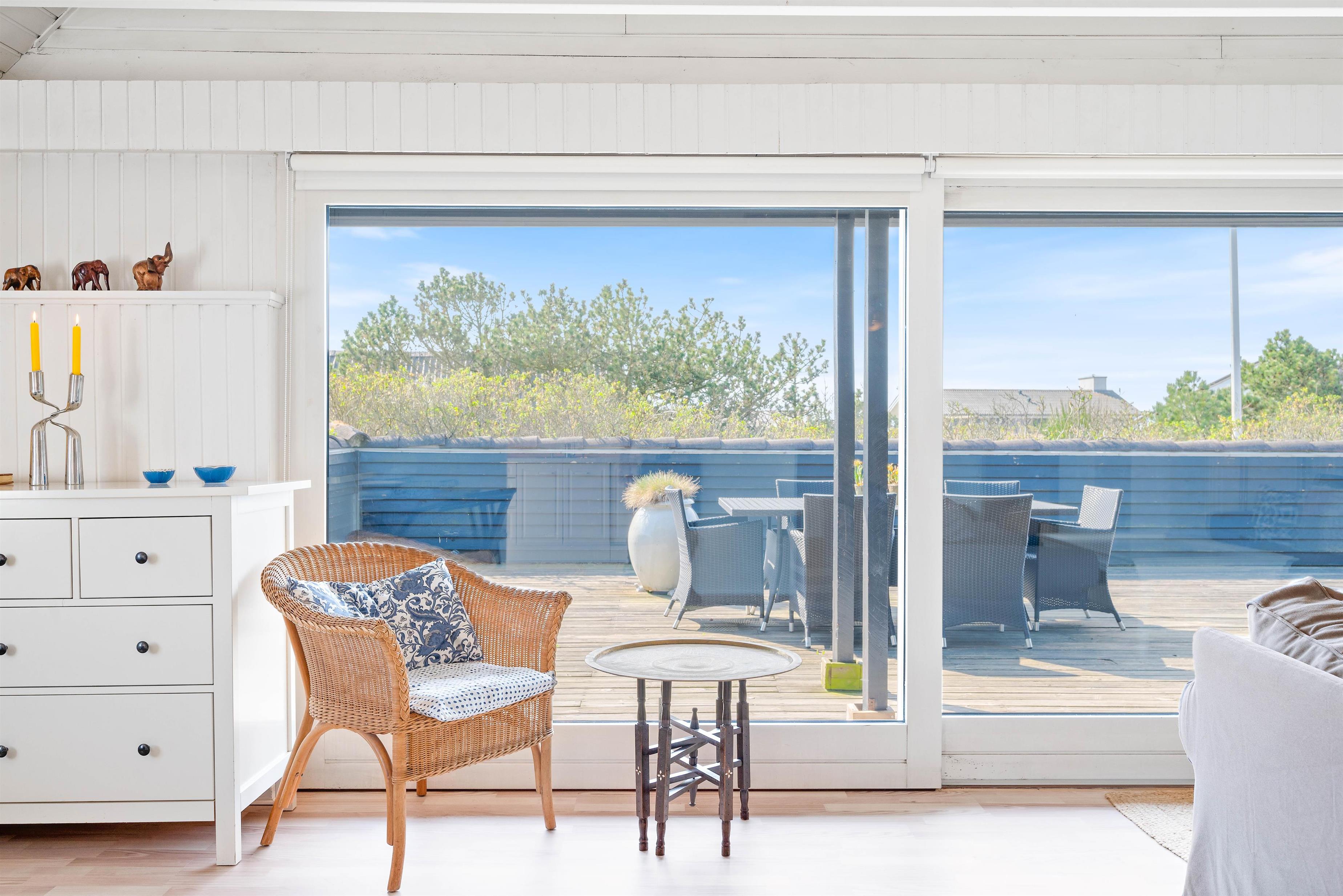 Sommerhuset har en skøn og lukket terrasse, som er placeret mod syd og mod vest. Mod syd er den endvidere delvist overdækket, hvilket er helt ideel til grillaftener. Både børnene og familiens hund vil nyde den lukkede terrasse, især fordi den er så dejlig stor. Der er desuden en sandkasse på naturgrunden udenfor terrassen, hvor børnene kan øve sig på at konstruere sandslotte, inden turen går ned til Vesterhavet, som ligger kun 750 meter fra sommerhuset.