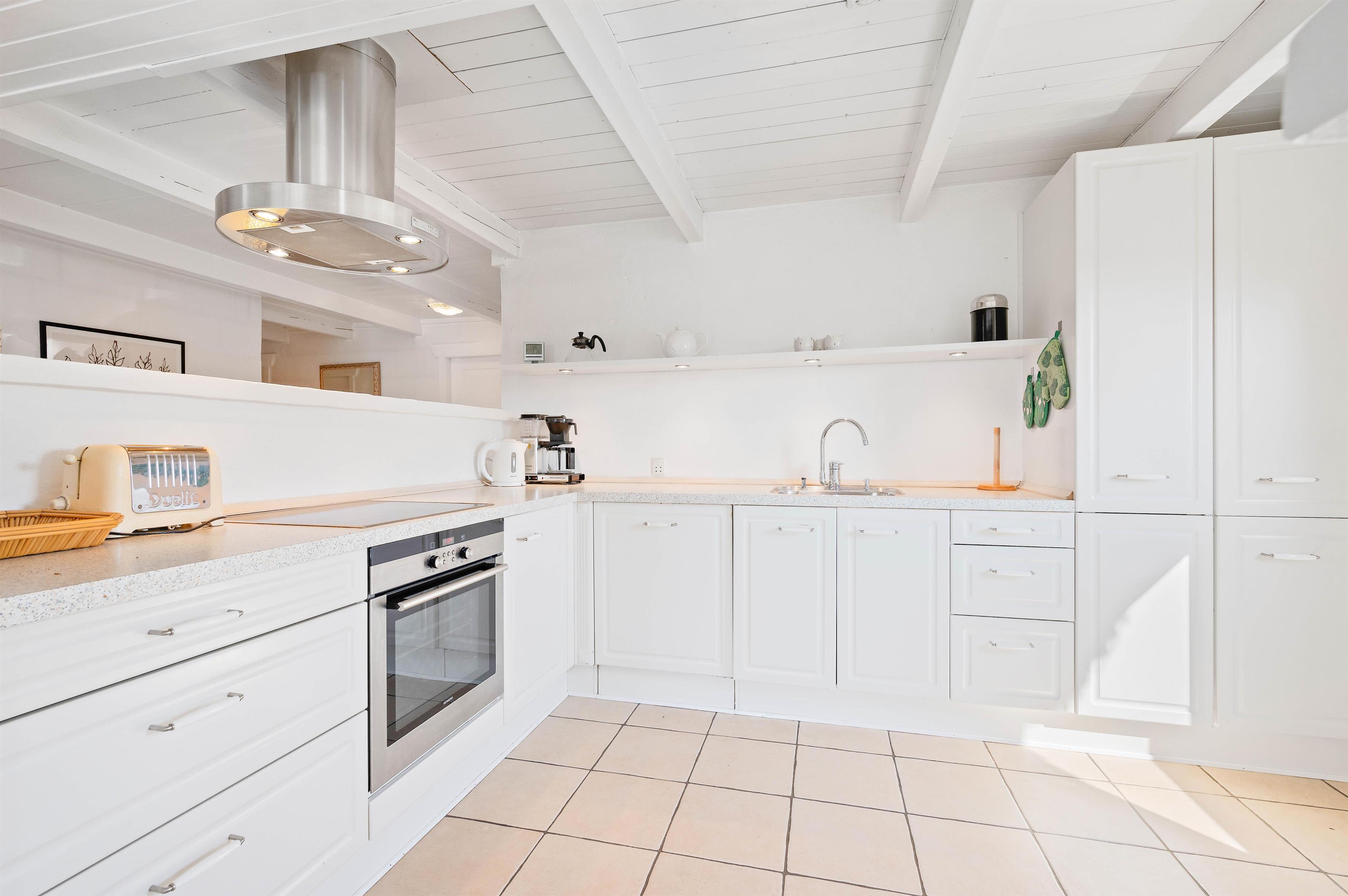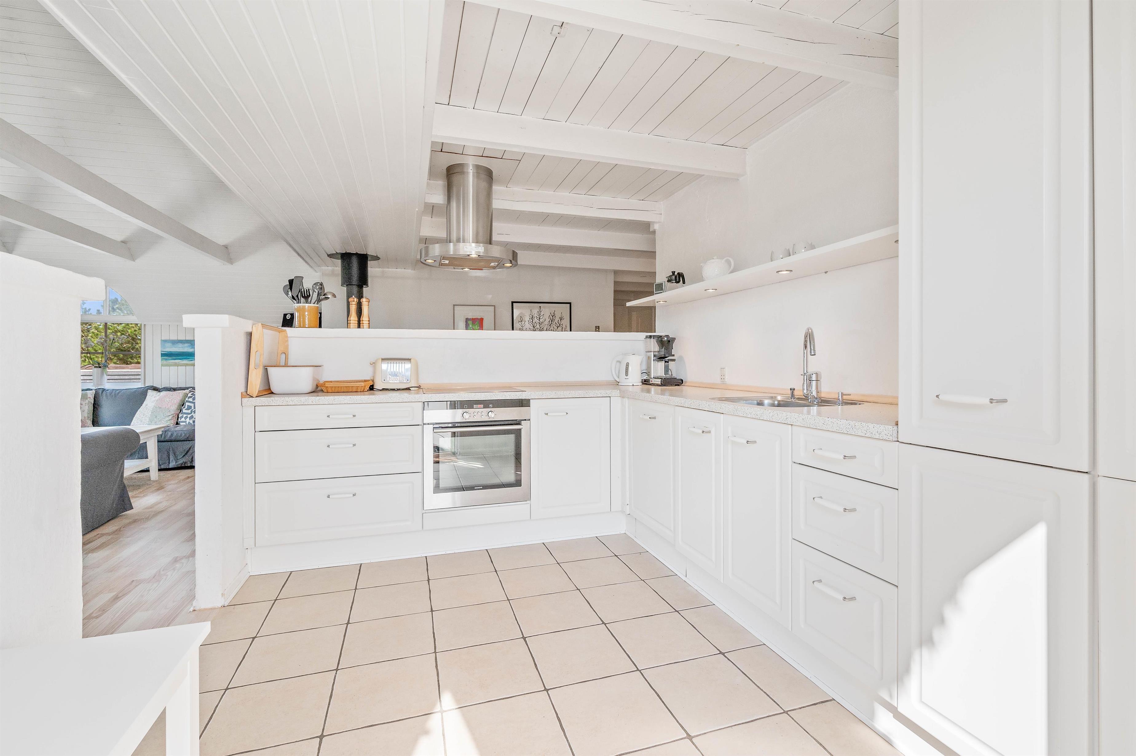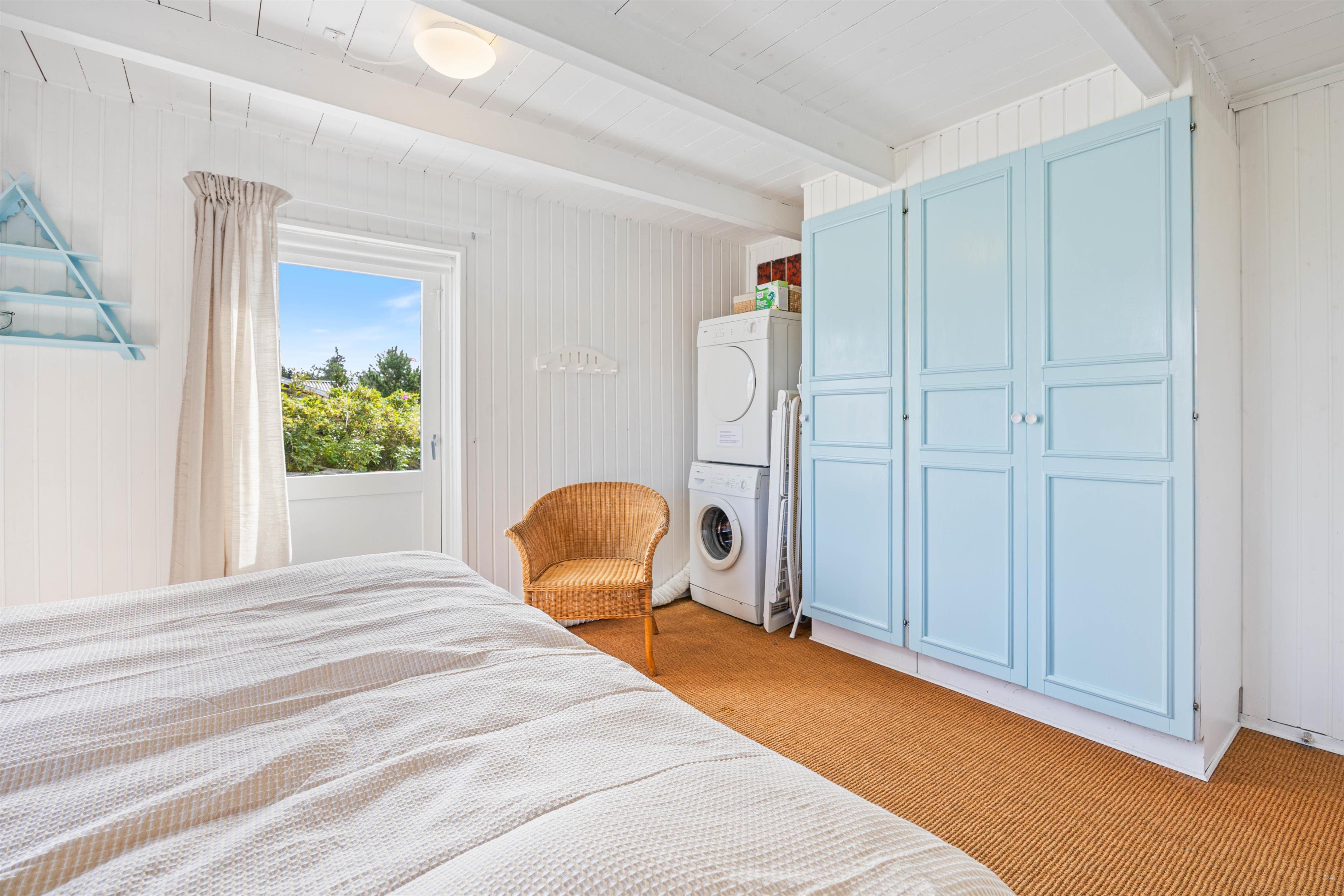 I køkkenet er der f.eks. en fryser på 60 liter og en opvaskemaskine. Sommerhuset byder desuden på vaskemaskine og en tørretumbler, så I kan spare lidt plads i kufferten, og den energibesparende varmepumpe sørger for en behagelig varme samt en mindre forbrugsregning ved afrejse – med andre ord; flere lommepenge til alt det sjove i ferien. Varmepumpen kan på varme dage også bruges som aircondition.